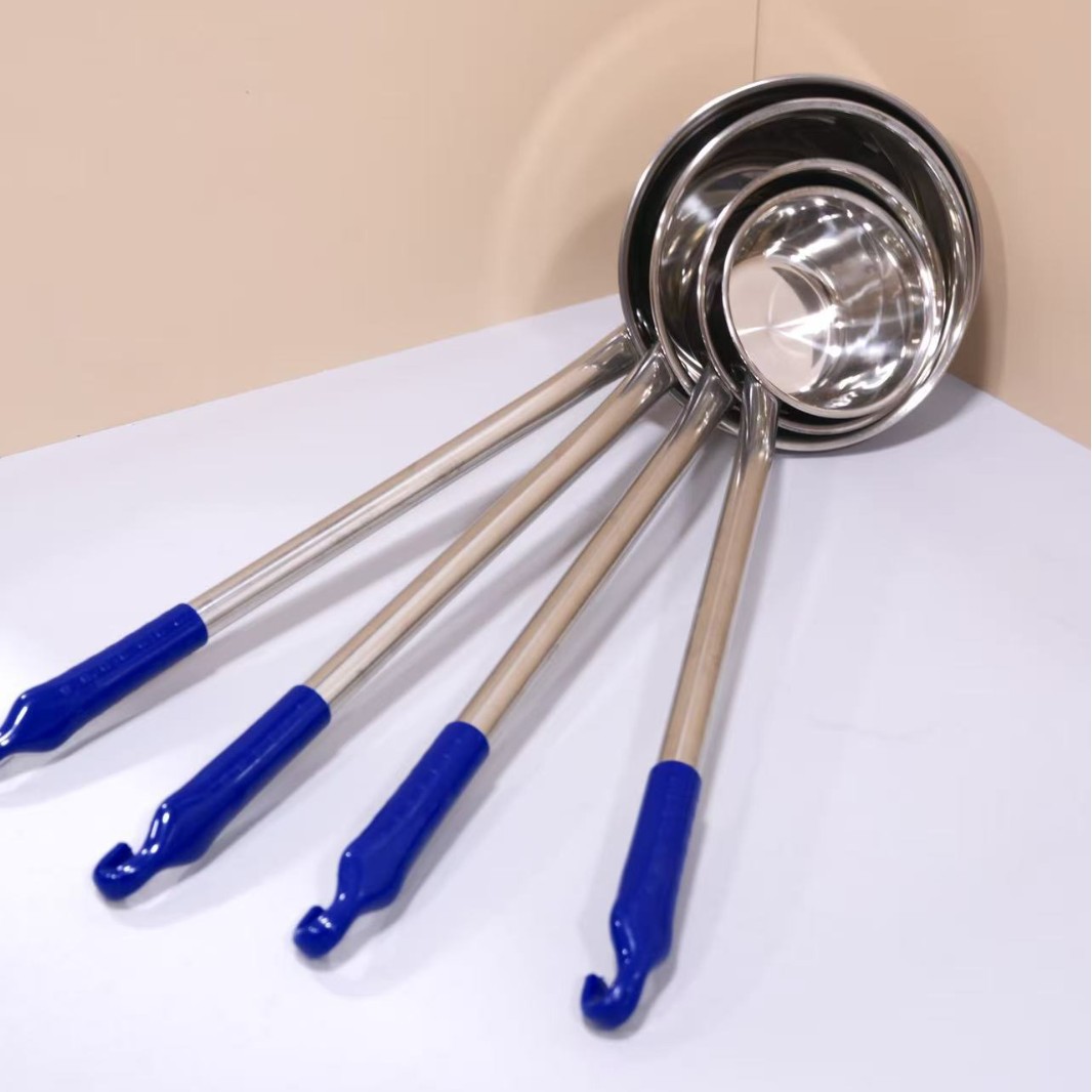 스테인레스 스틸 한국식 물숟가락 주방 물숟가락 후크가 있는 대형 국자 죽숟가락 상업용 가정용 긴 손잡이 물숟가락