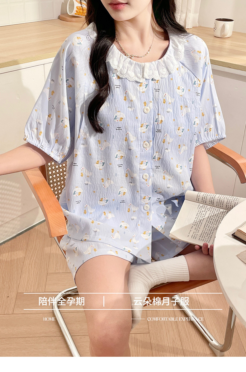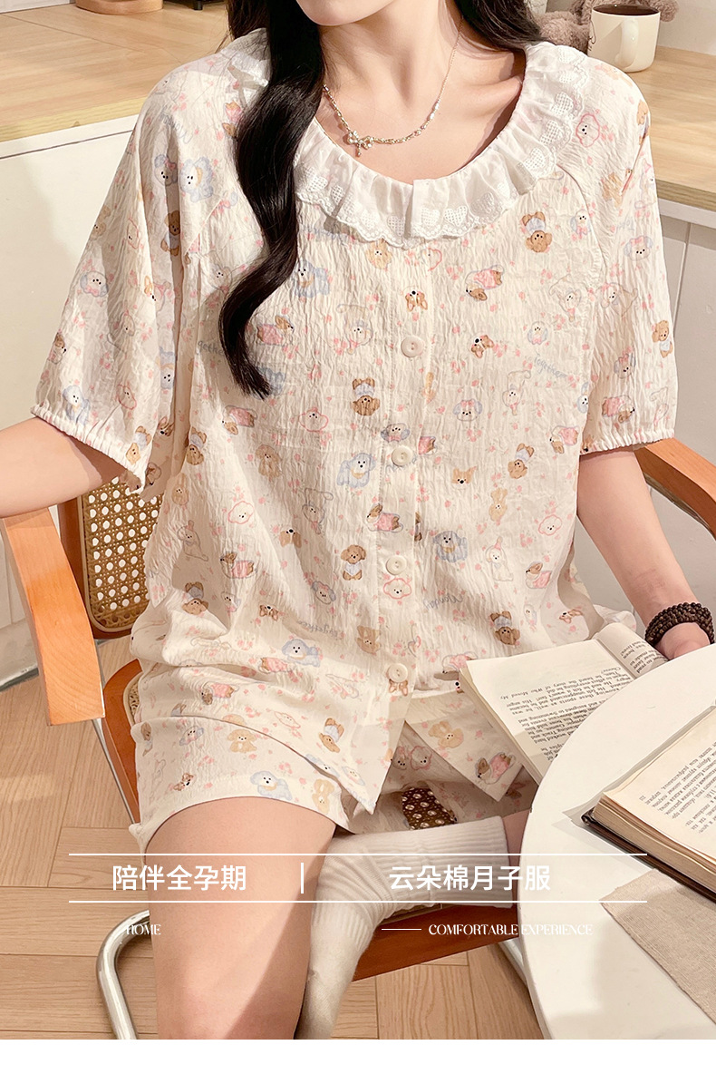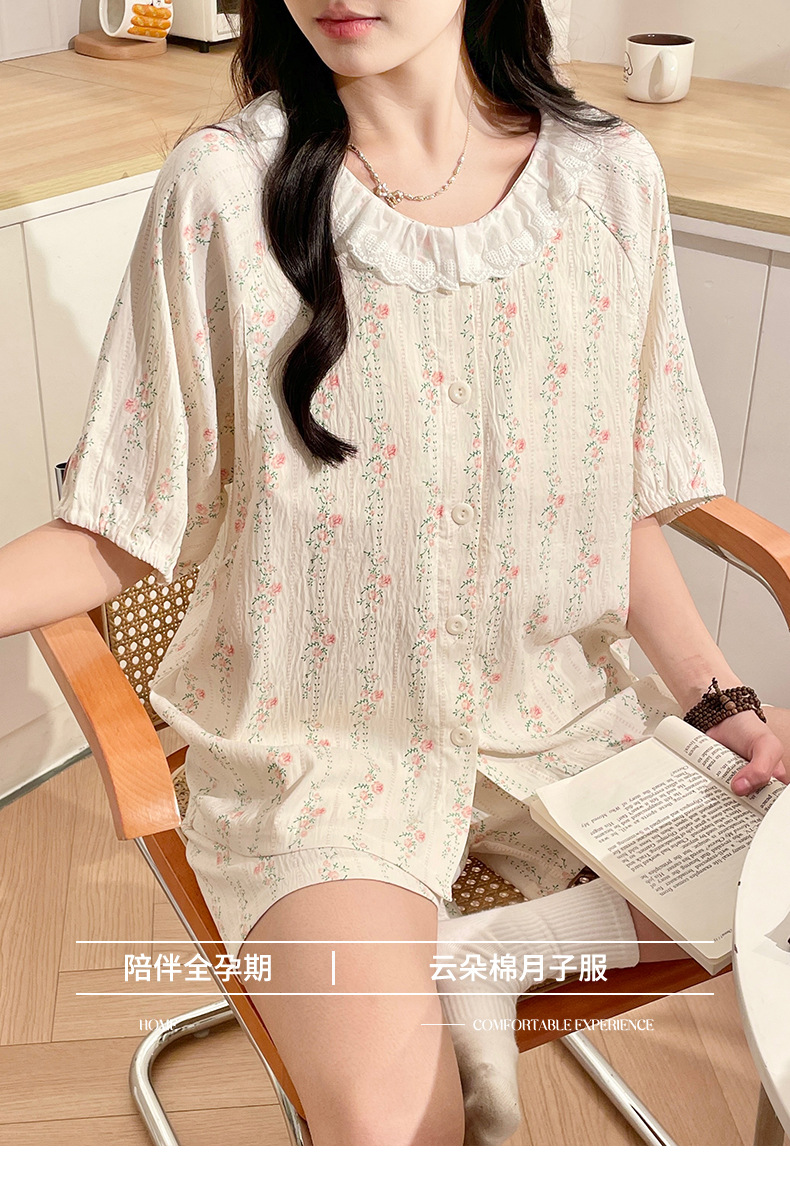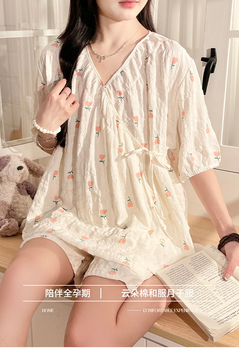 2025新款云朵棉月子服带胸垫孕妇睡衣免穿文胸孕期产后哺乳套装夏