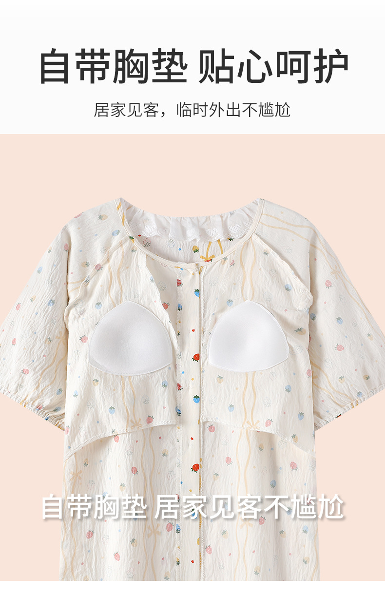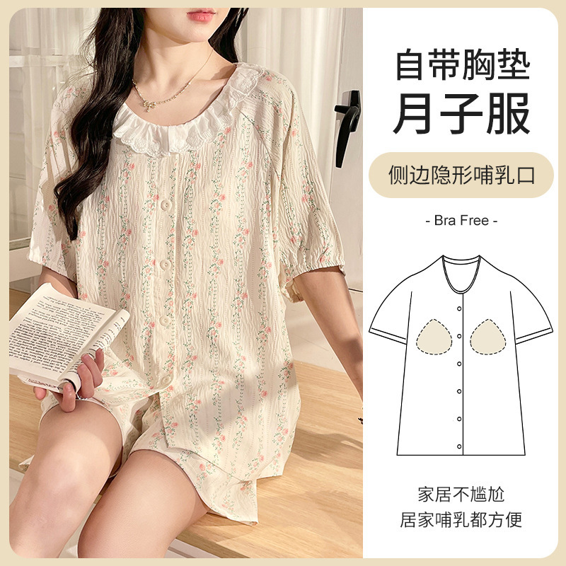 2025년 신형 클라우드 코튼 산후복, 가슴 패드가 있는 임산부 잠옷, 브라 프리, 임신, 산후, 수유복, 여름