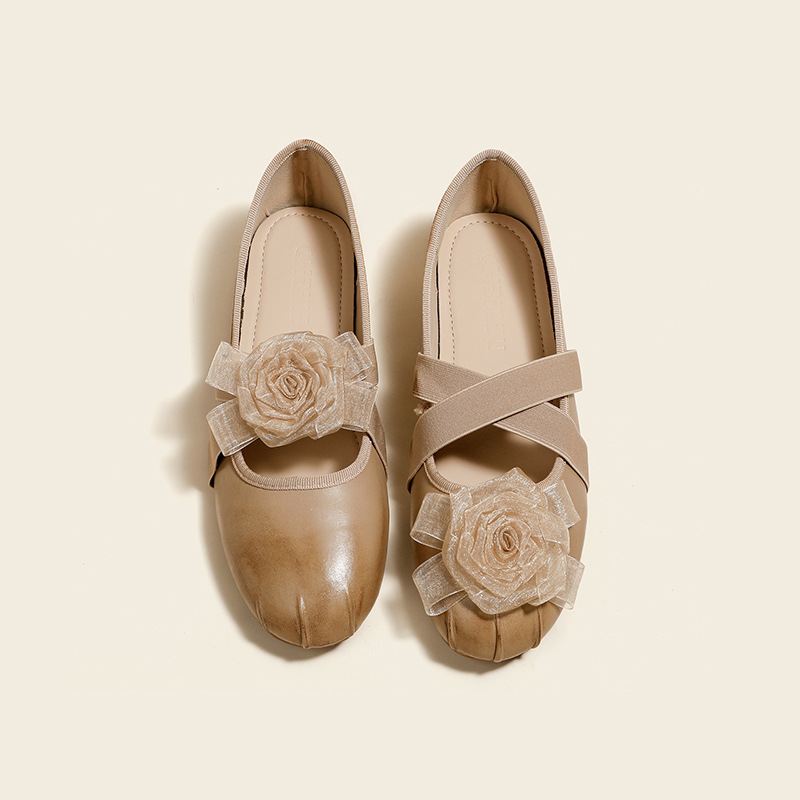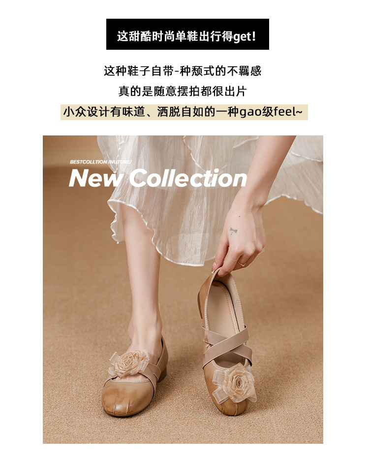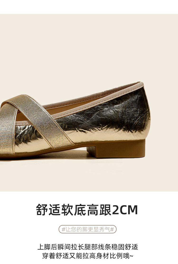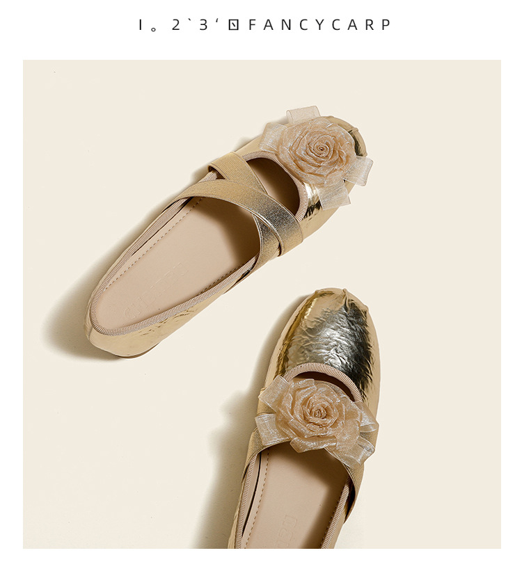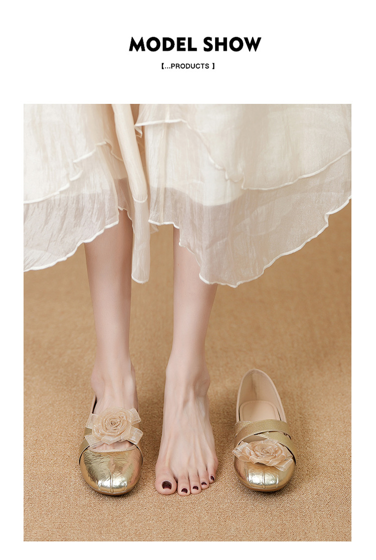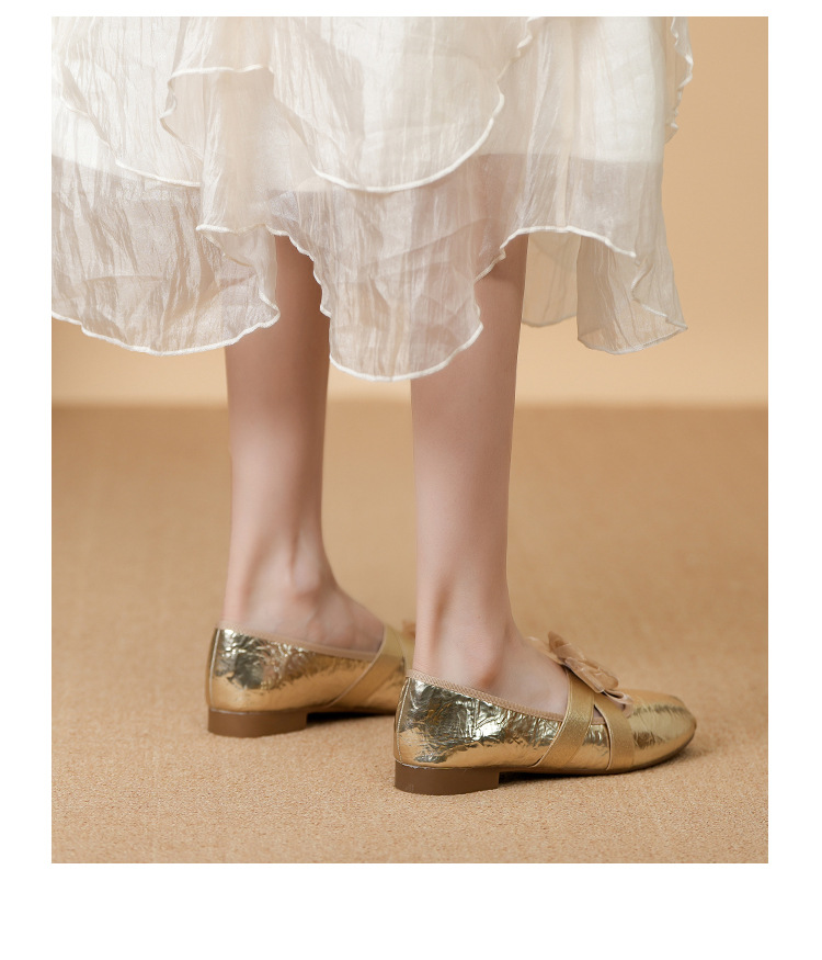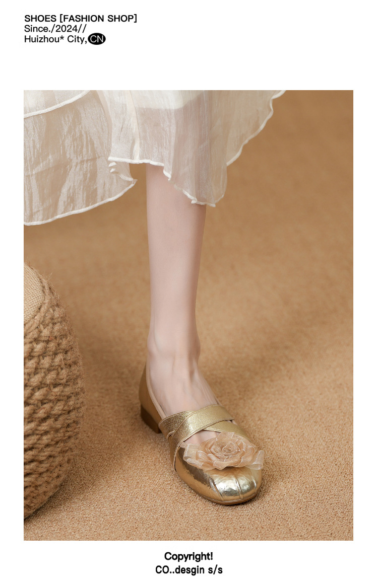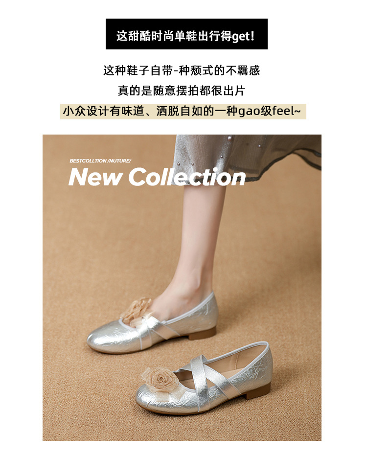 새로운 사계절 여성 신발 양가죽 금색과 실버 크로스 스트랩 동백 꽃 얕은 입 평평한 메리 제인 신발 크기 3340