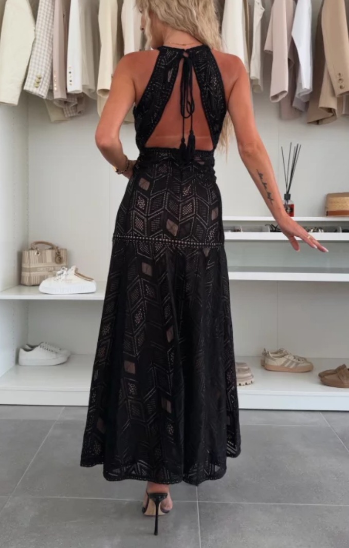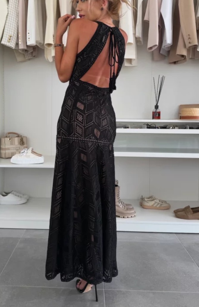2025 국경 간 여성 여름 아마존 패션 섹시한 롱 스커트 홀터넥 백리스 레이스 드레스 해변 비치 스커트