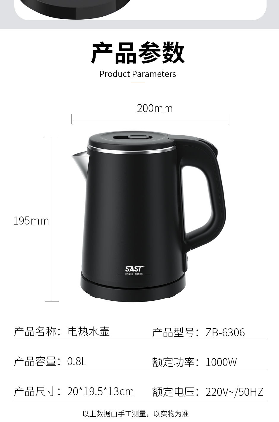 SAST0.8L 주전자 소용량 1리터 호텔 전용 전기 주전자 공장 직접 판매 소형 가전 제품