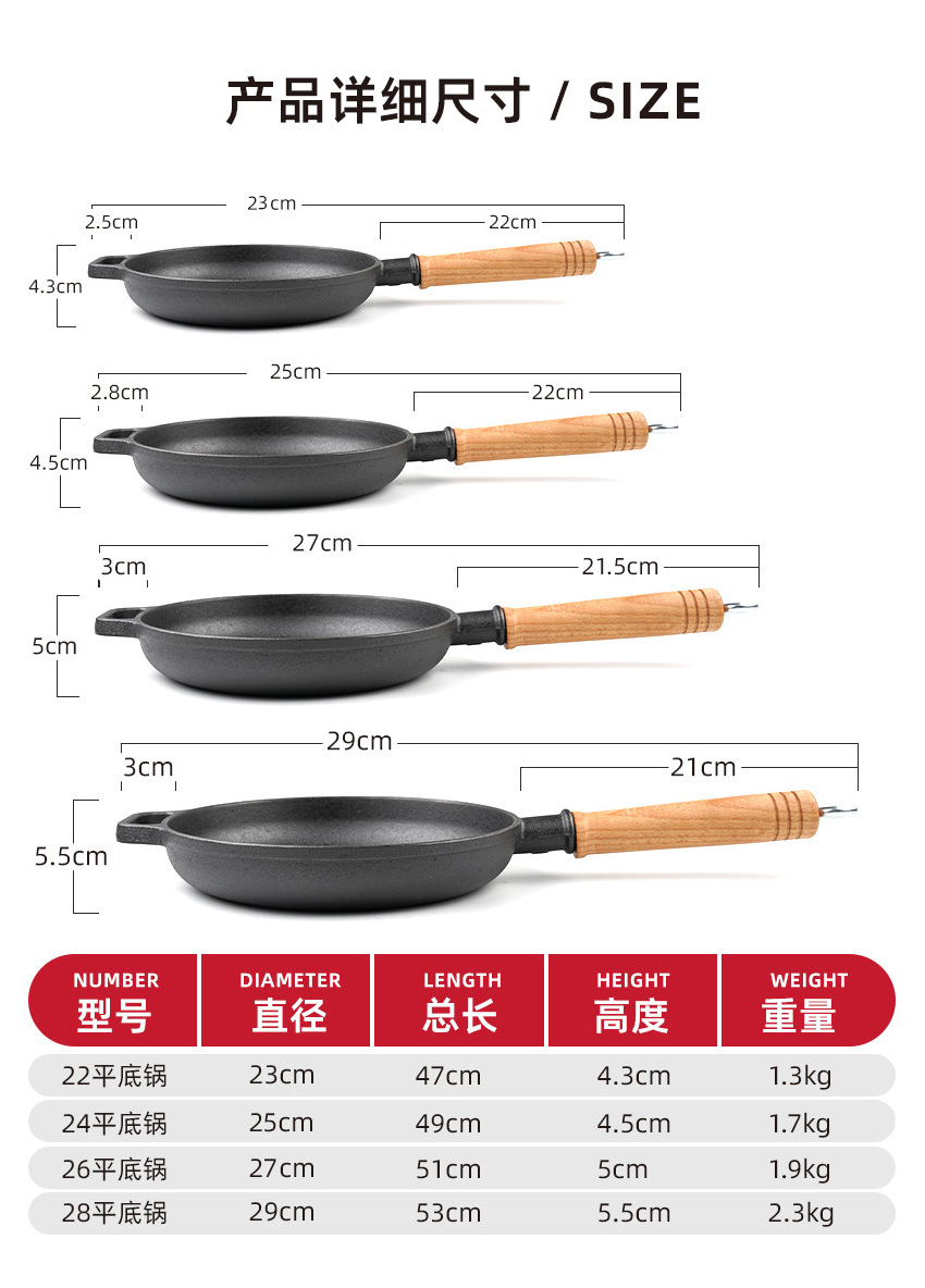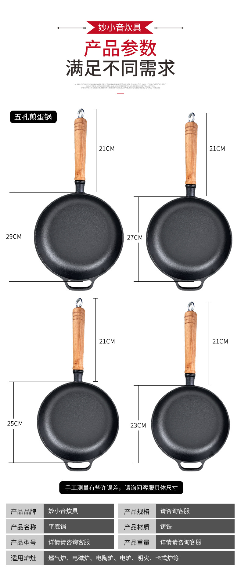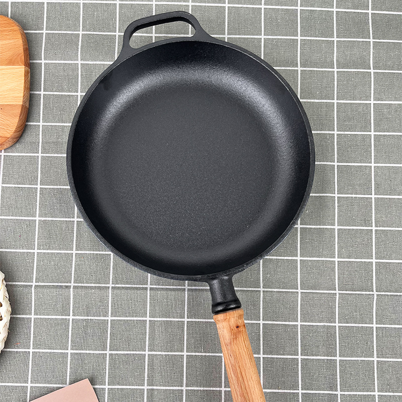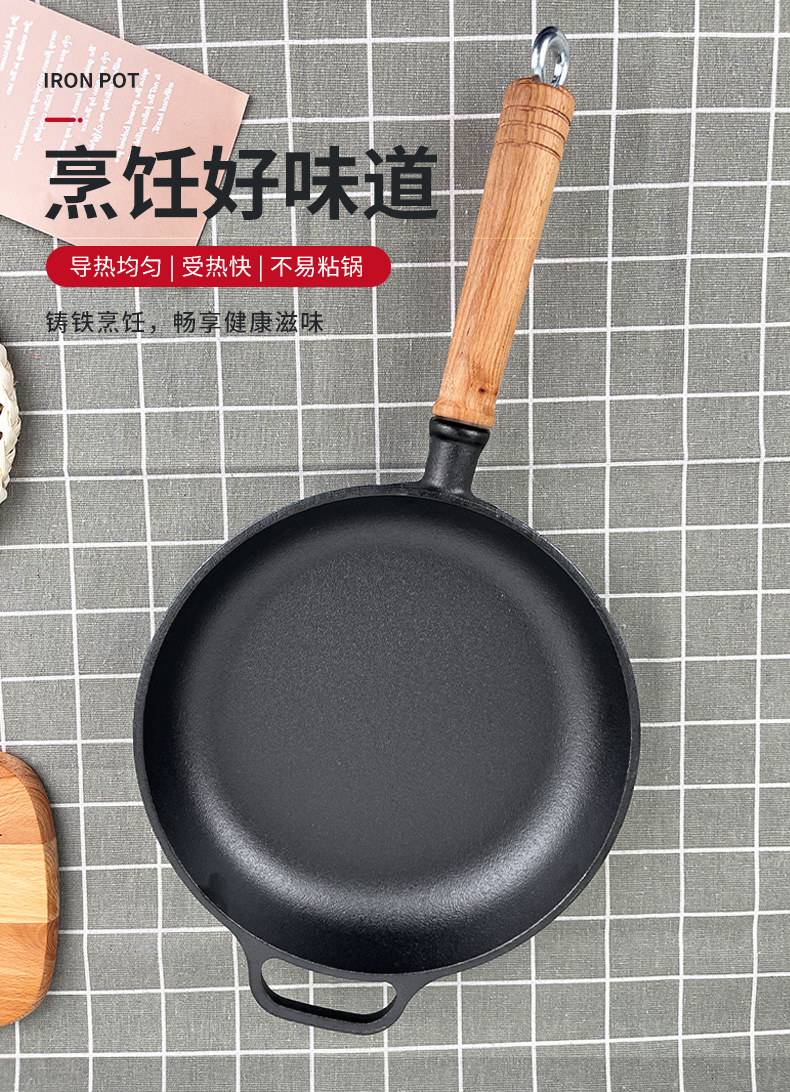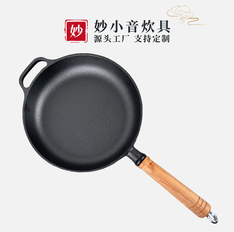 주철 팬 비 스틱 프라이팬 생 철 프라이팬 아침 식사 팬 튀긴 계란 팬 스테이크 팬 가구 나무 손잡이가 달린 핸드 헬드 팬팬