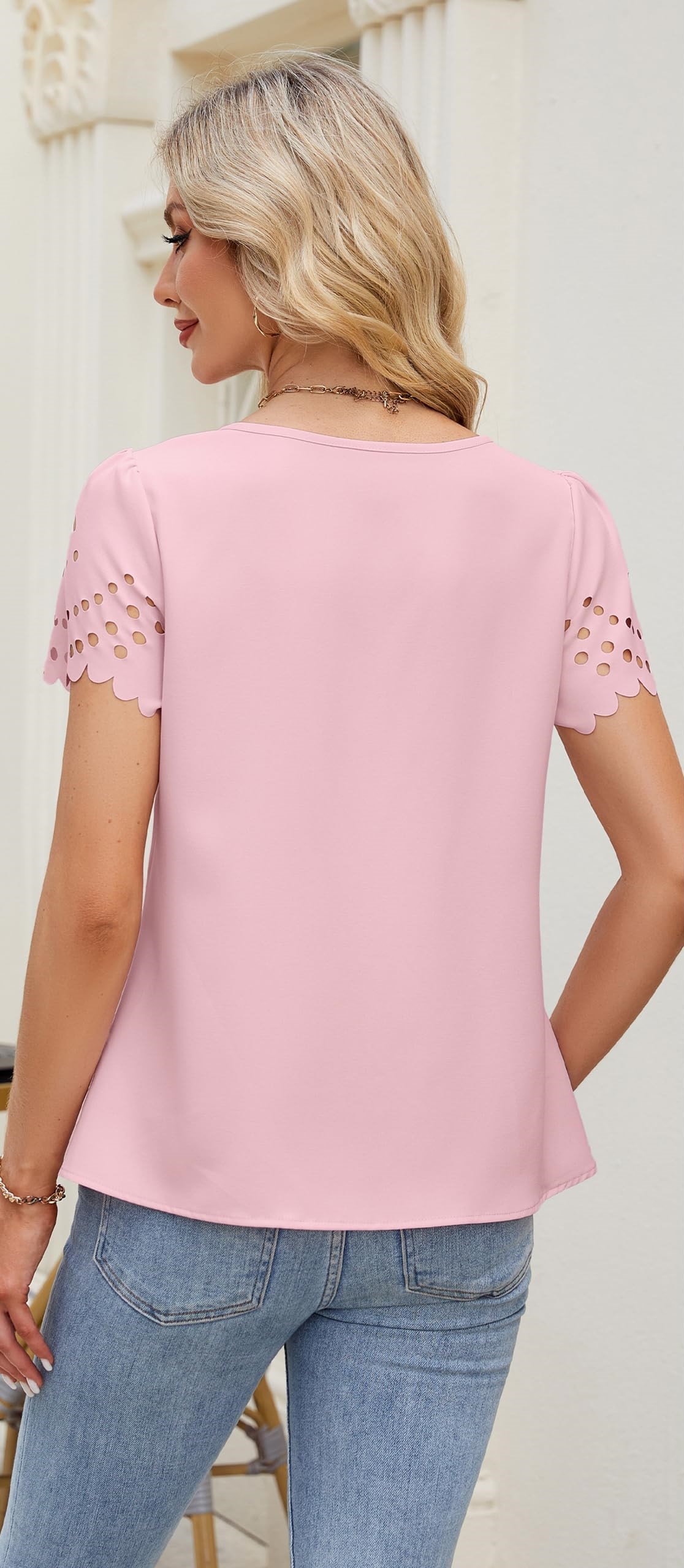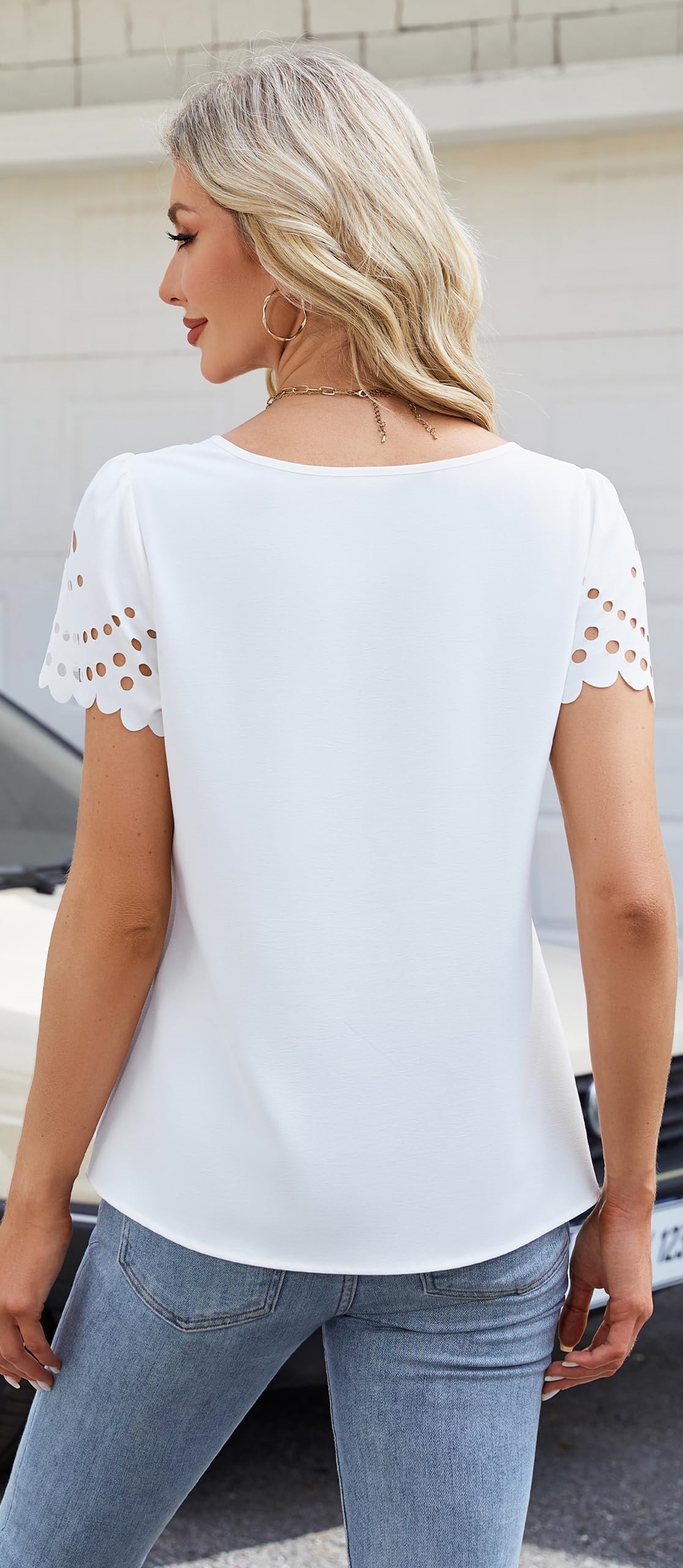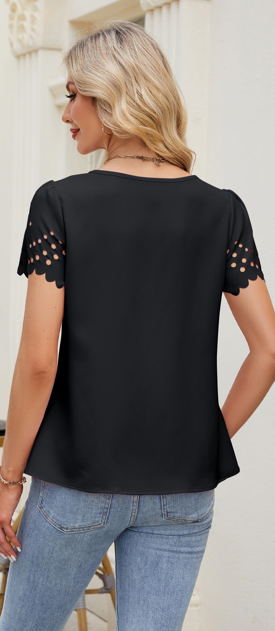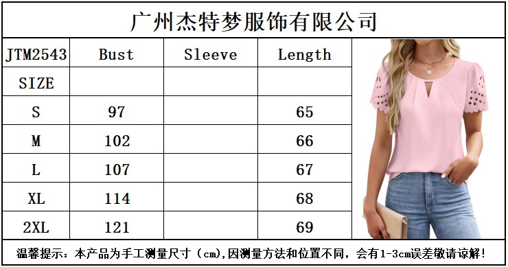 2025 유럽과 미국 국경 여성 의류 아마존 여름 새로운 패션 V 넥 중공 레이스 짧은 소매 쉬폰 셔츠
