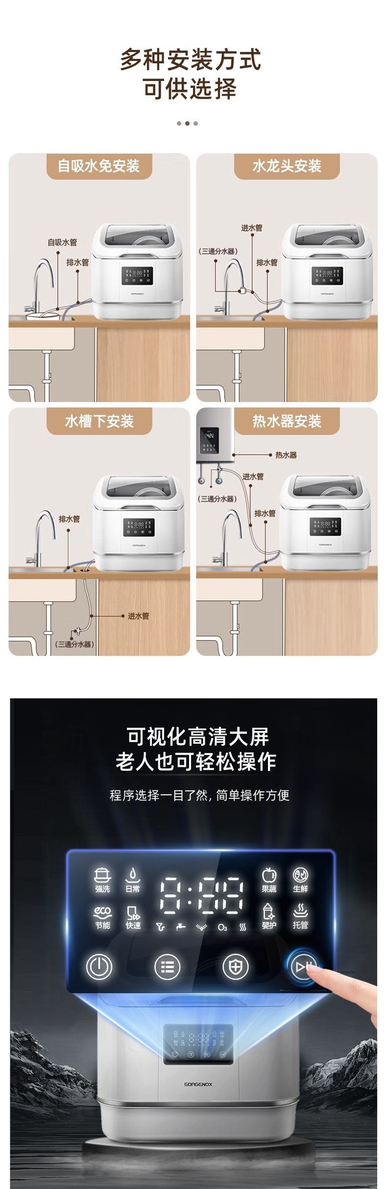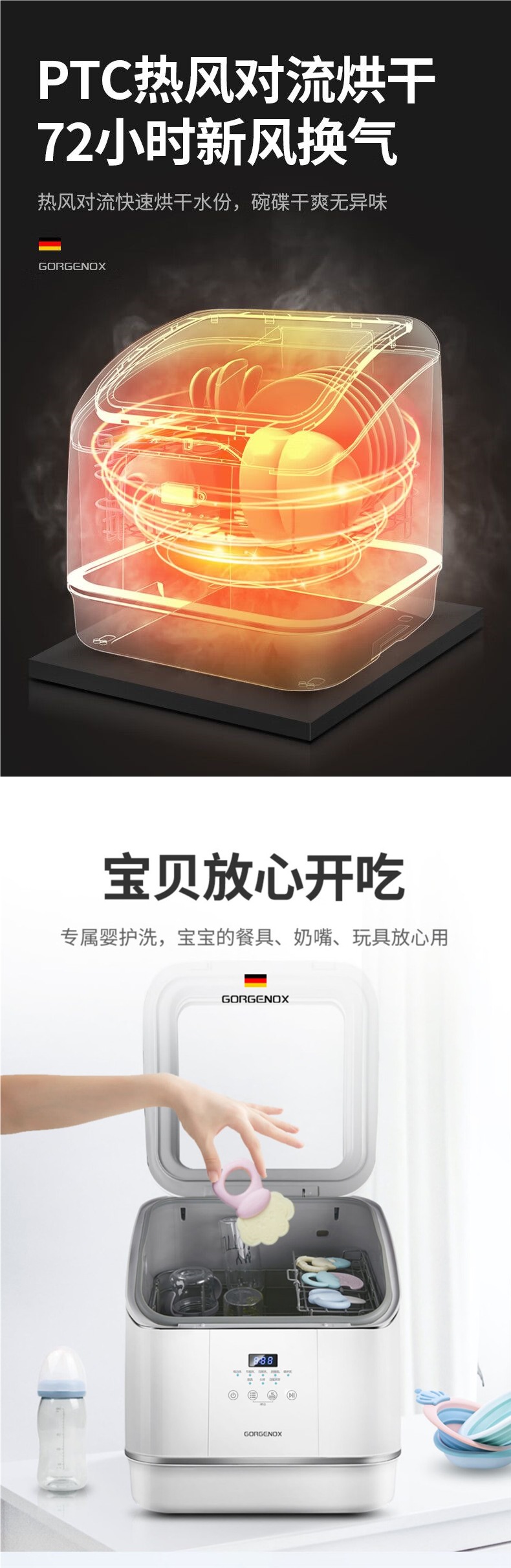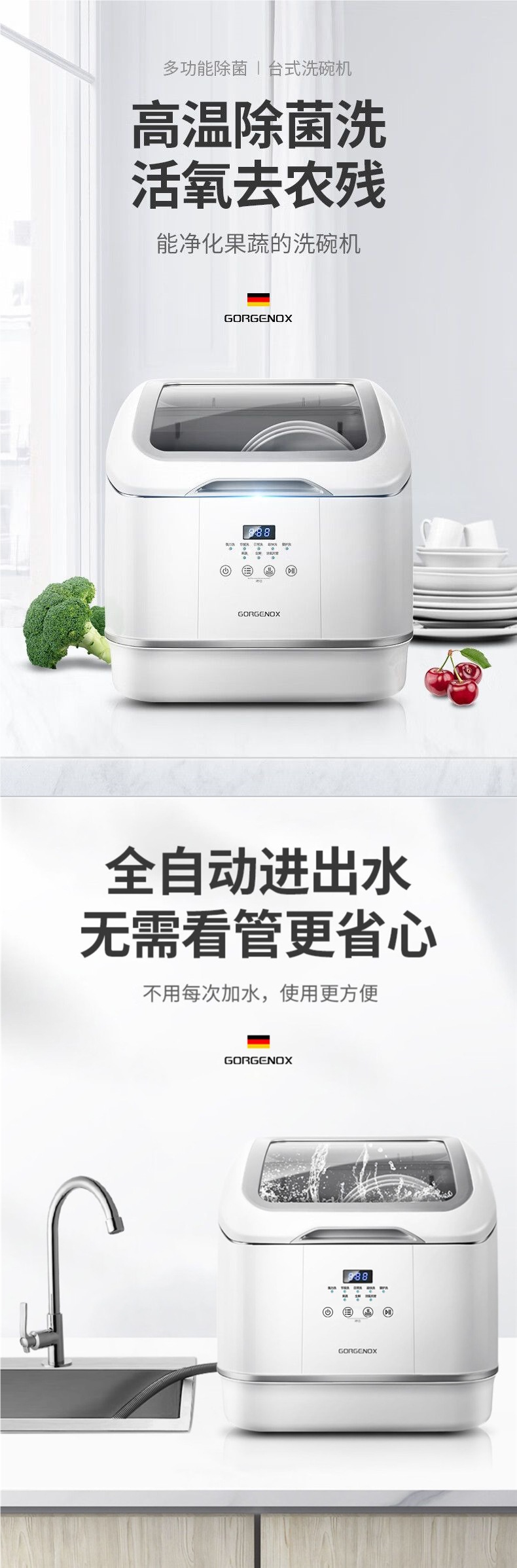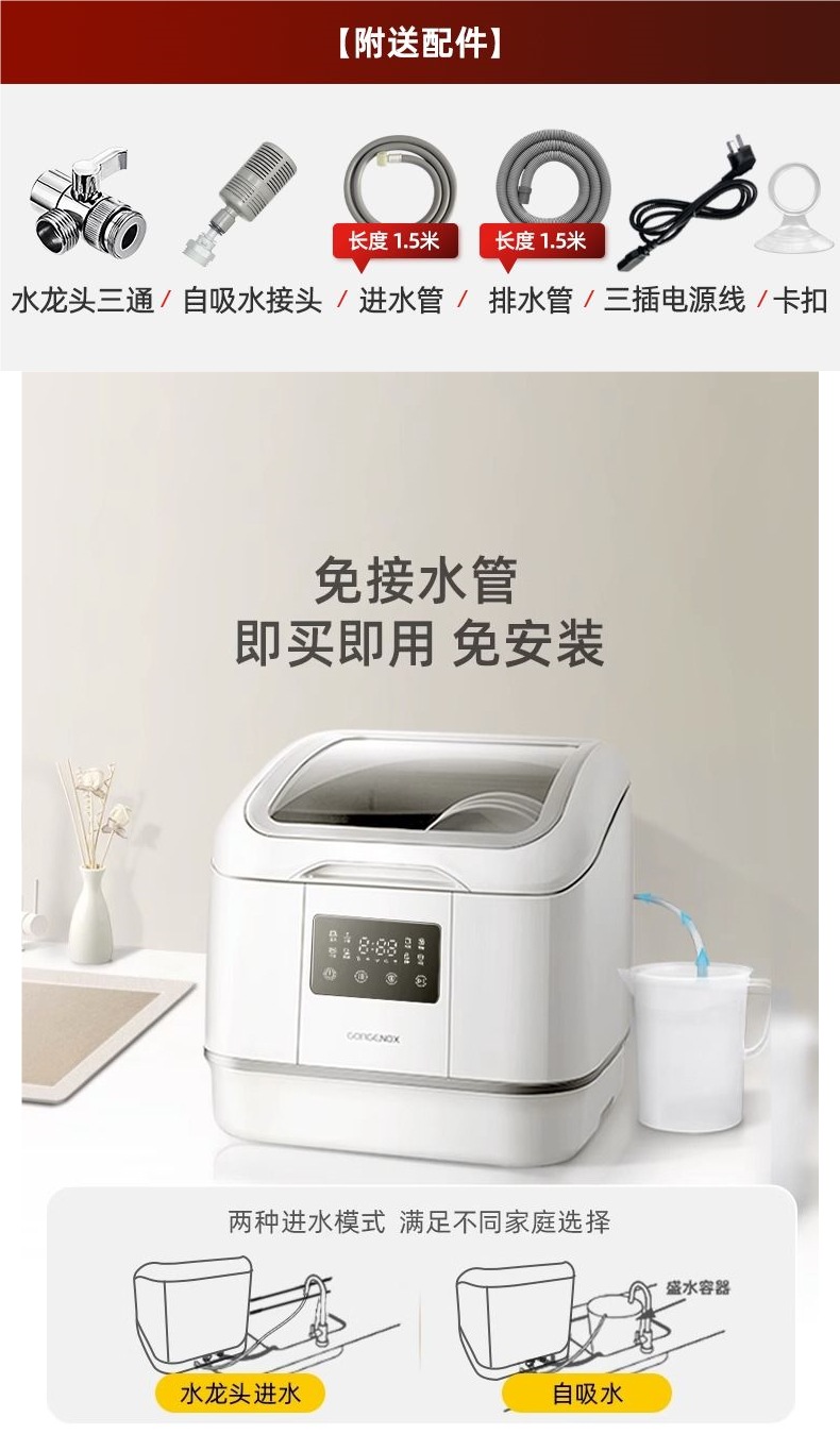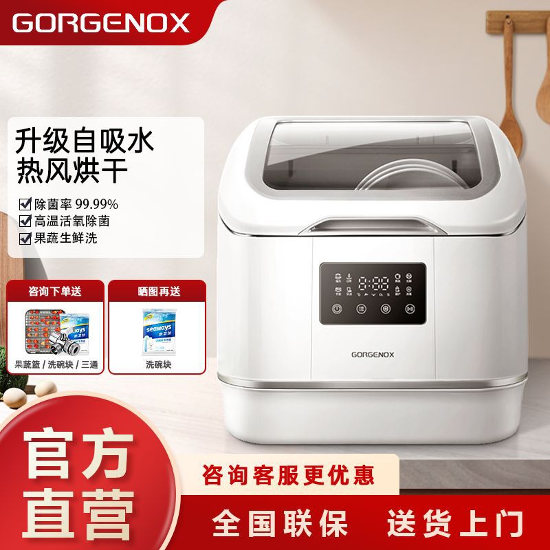 gorgenox 식기 세척기 설치가 필요 없는 데스크탑 가정용 소형 완전 자동 열풍 건조