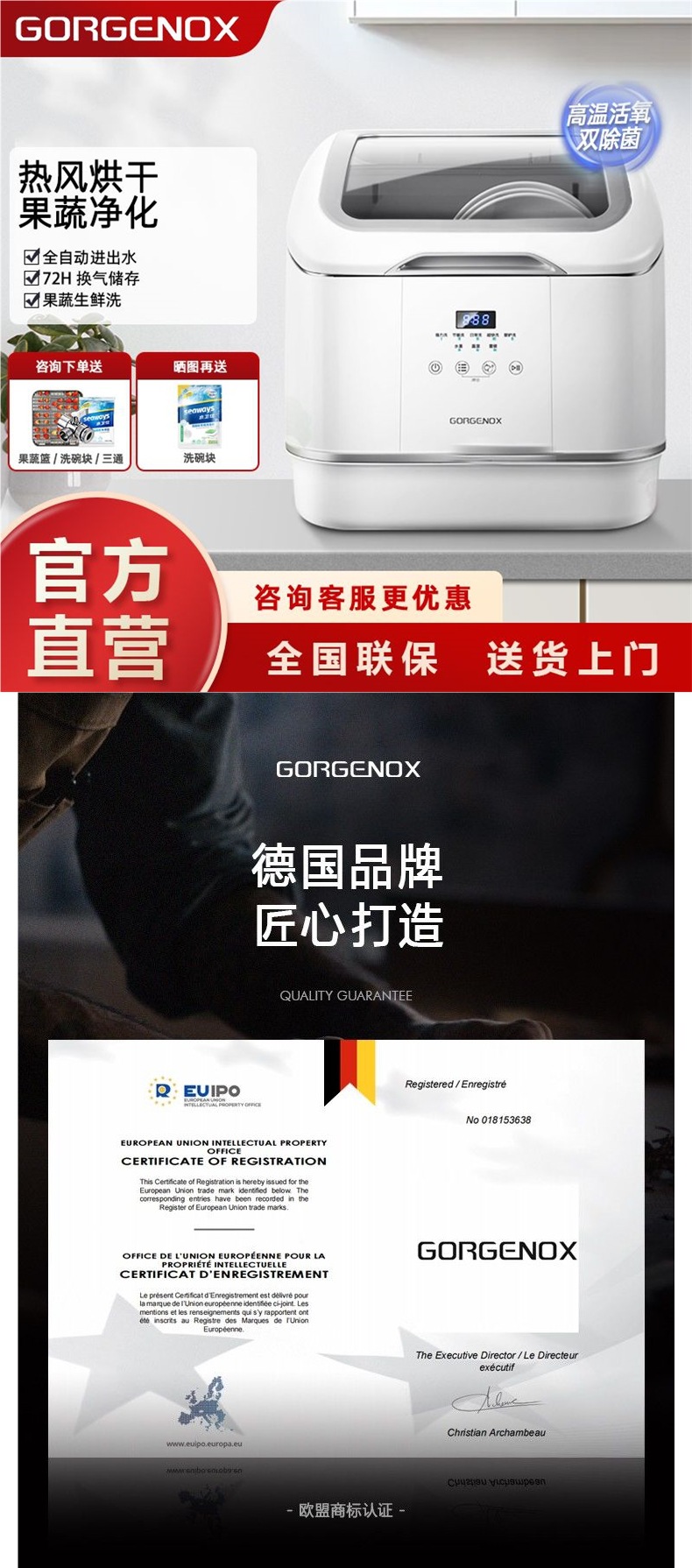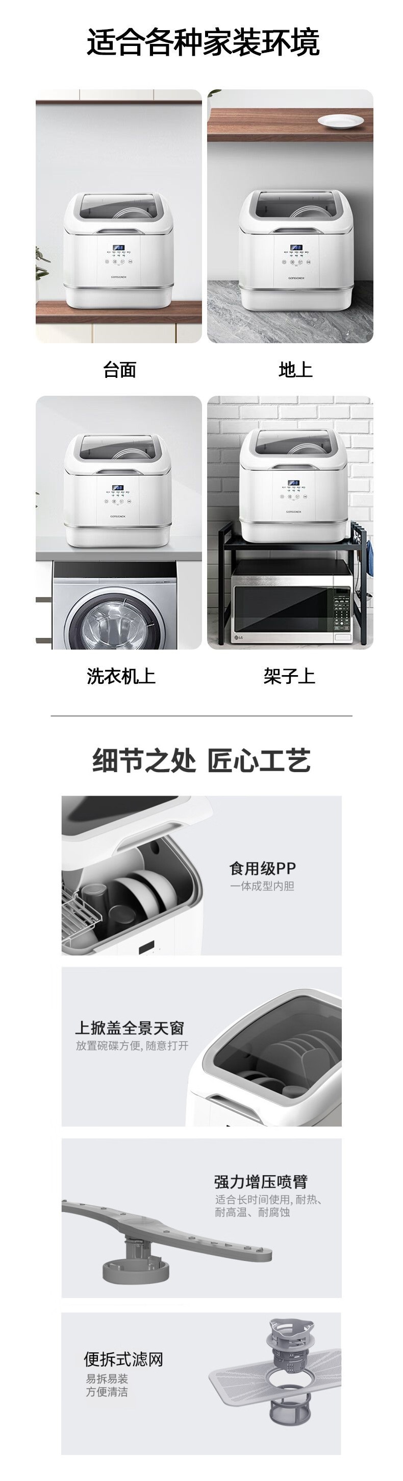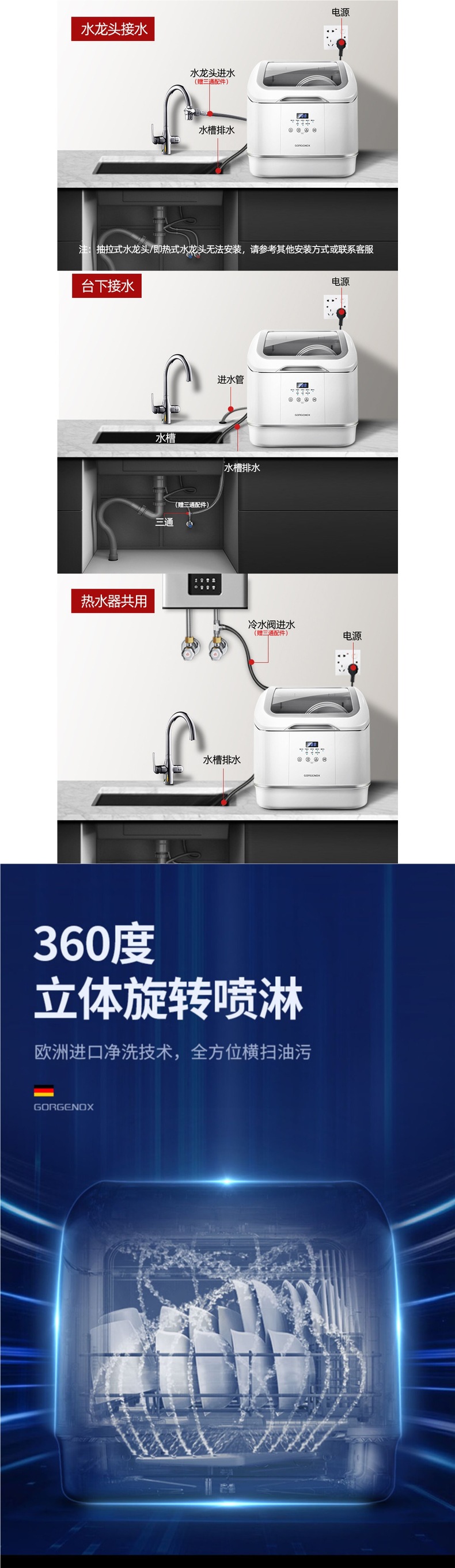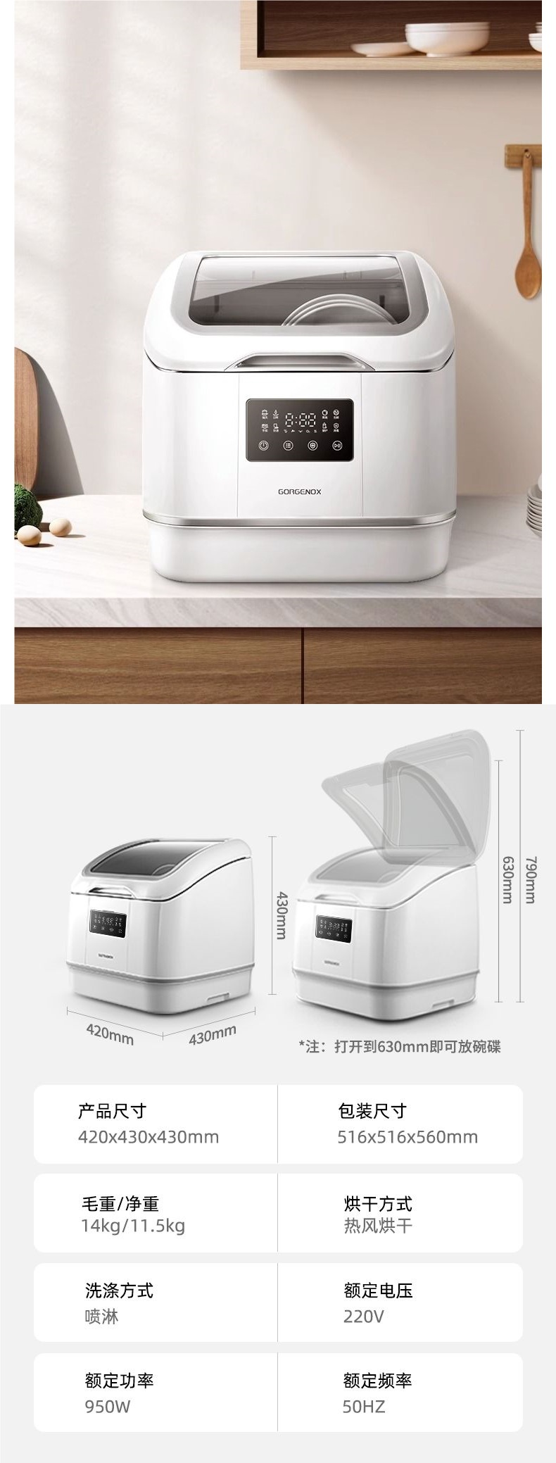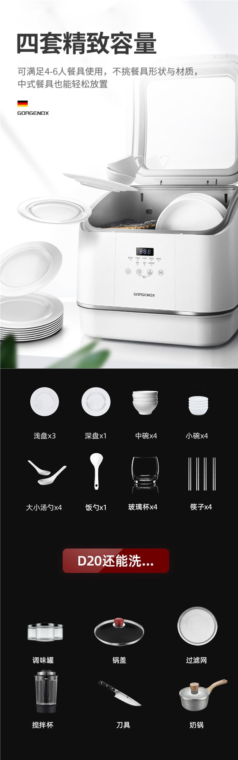 gorgenox 식기 세척기 설치가 필요 없는 데스크탑 가정용 소형 완전 자동 열풍 건조