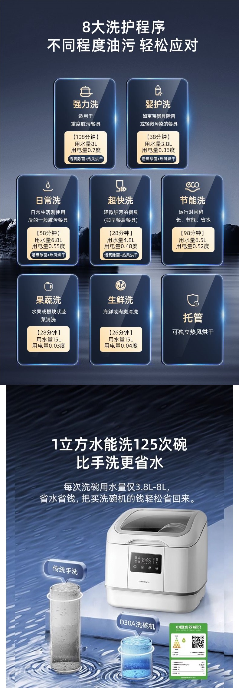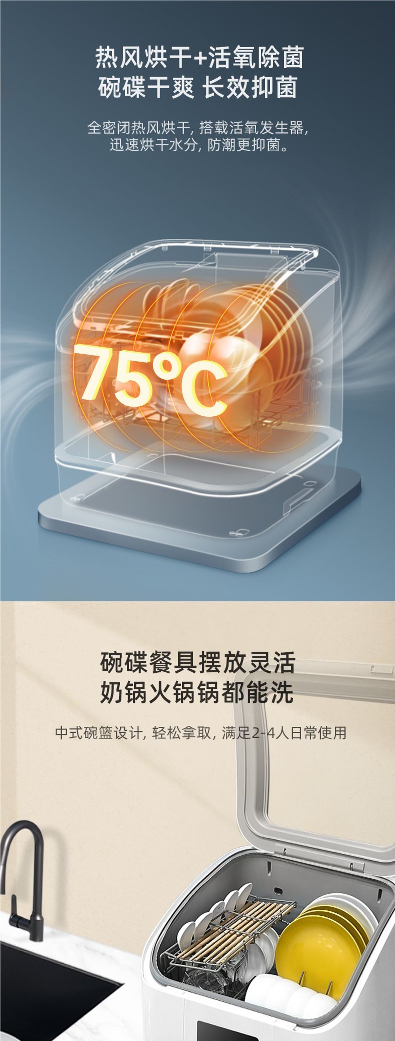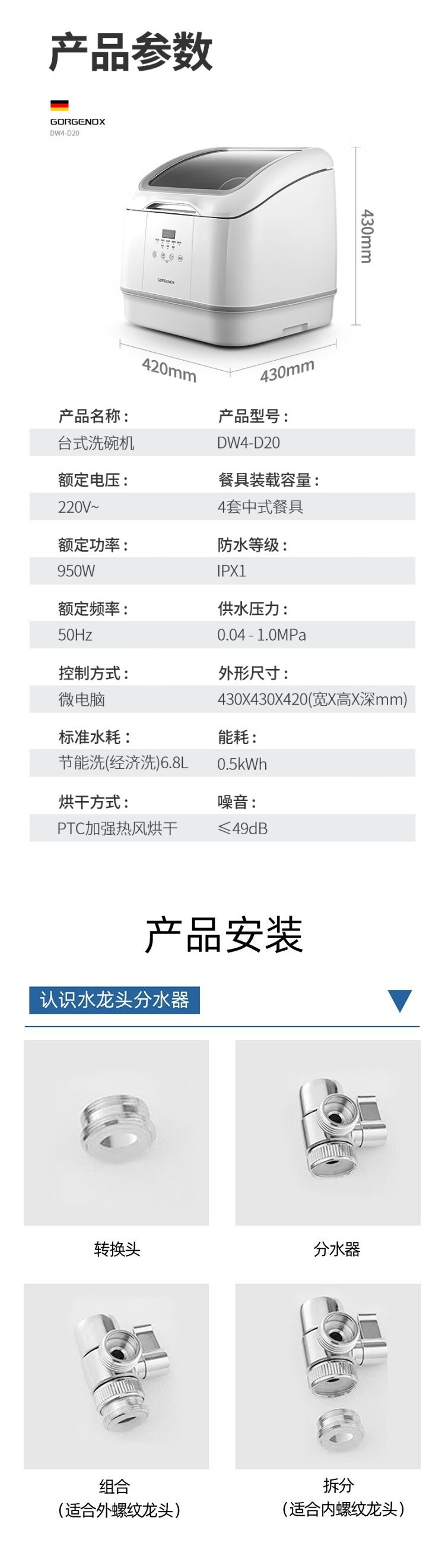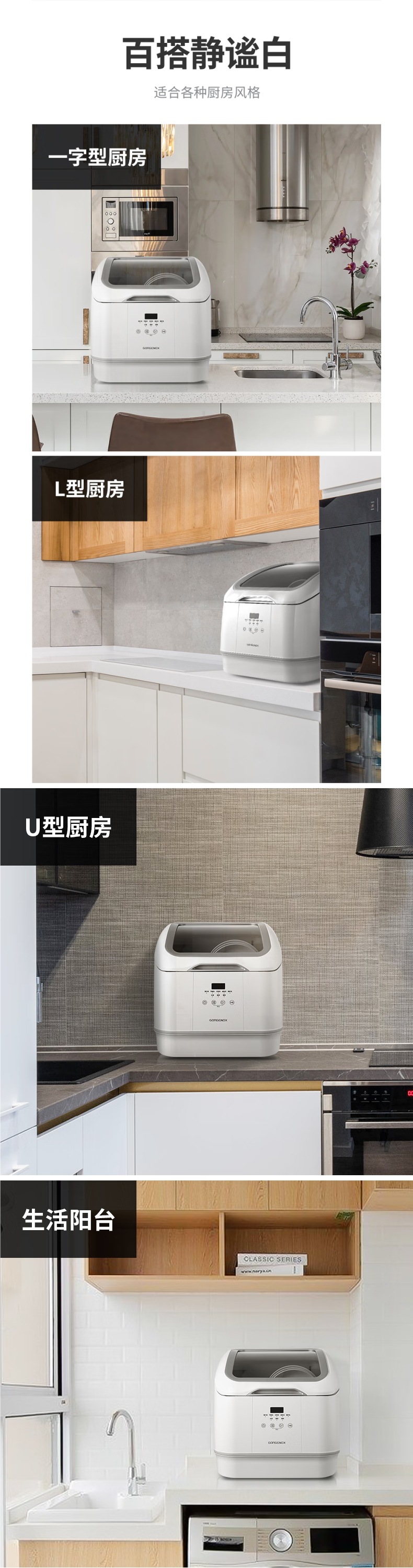 gorgenox 식기 세척기 설치가 필요 없는 데스크탑 가정용 소형 완전 자동 열풍 건조