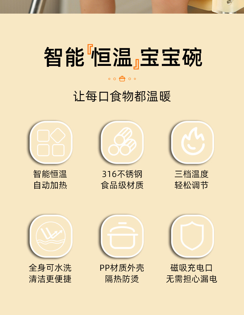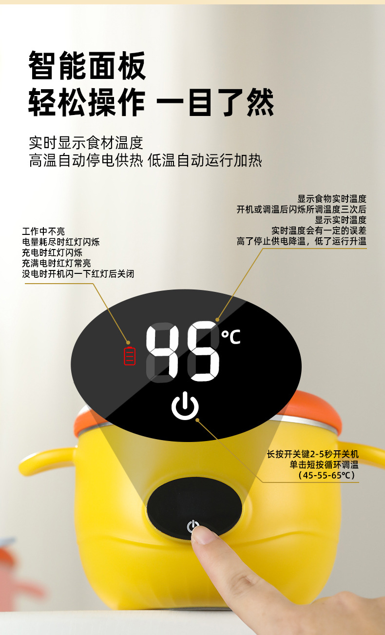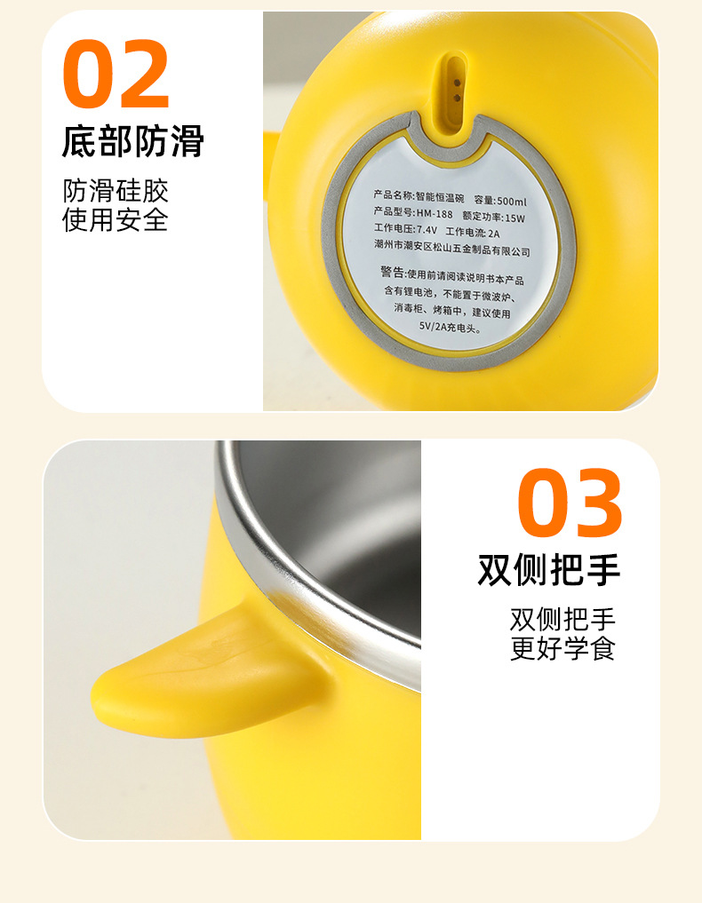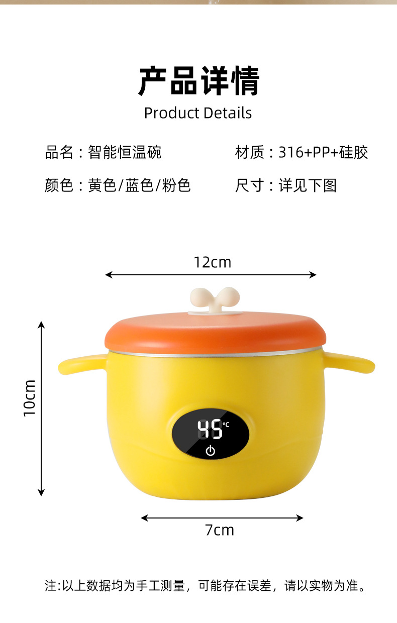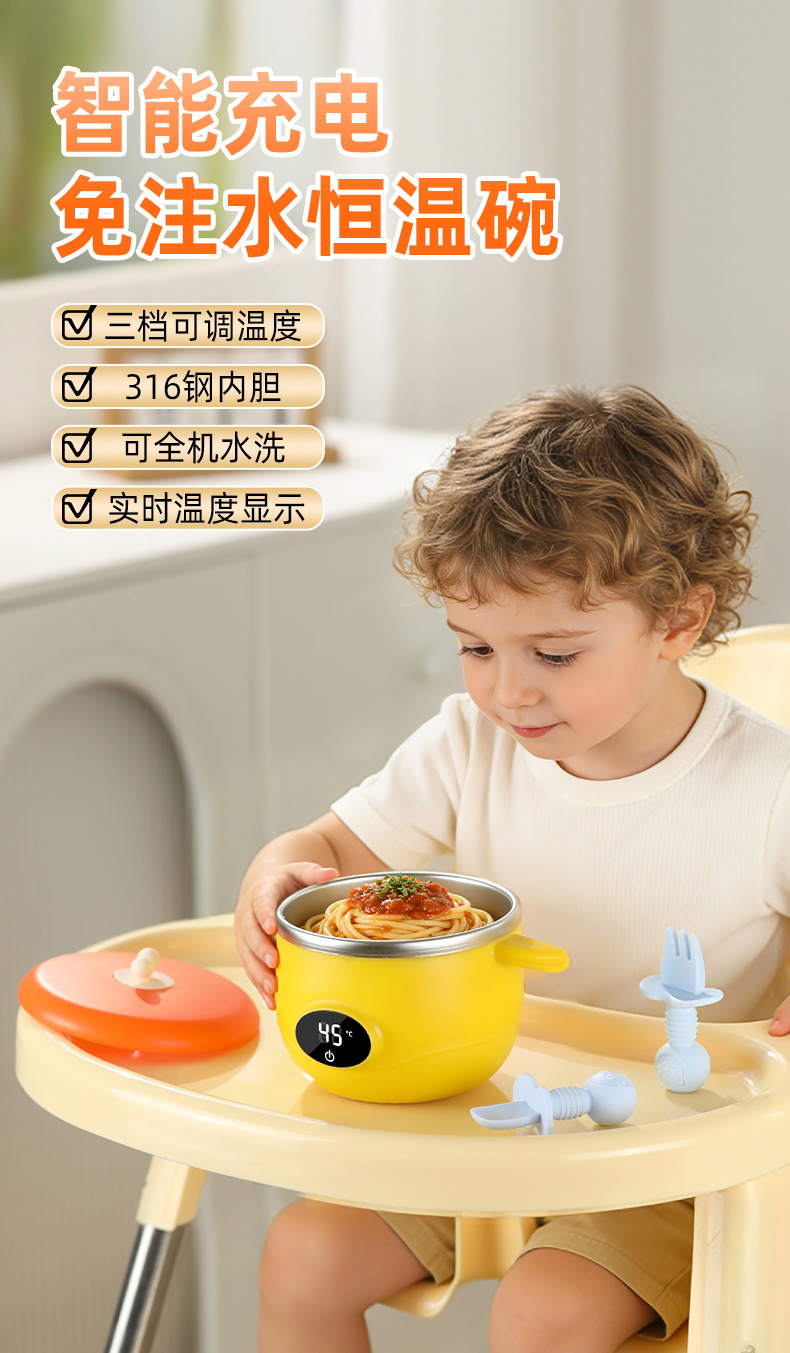 아기 지능형 항온 그릇, 어린이 식기, 식품 보충제, 수유 그릇, 물이 없는 충전식 단열 가열 식기