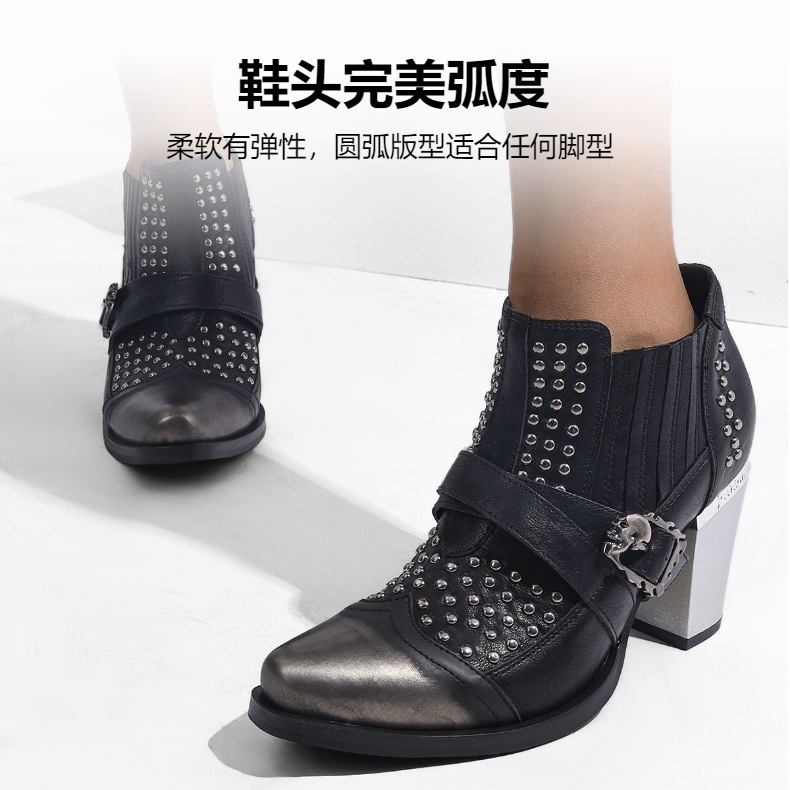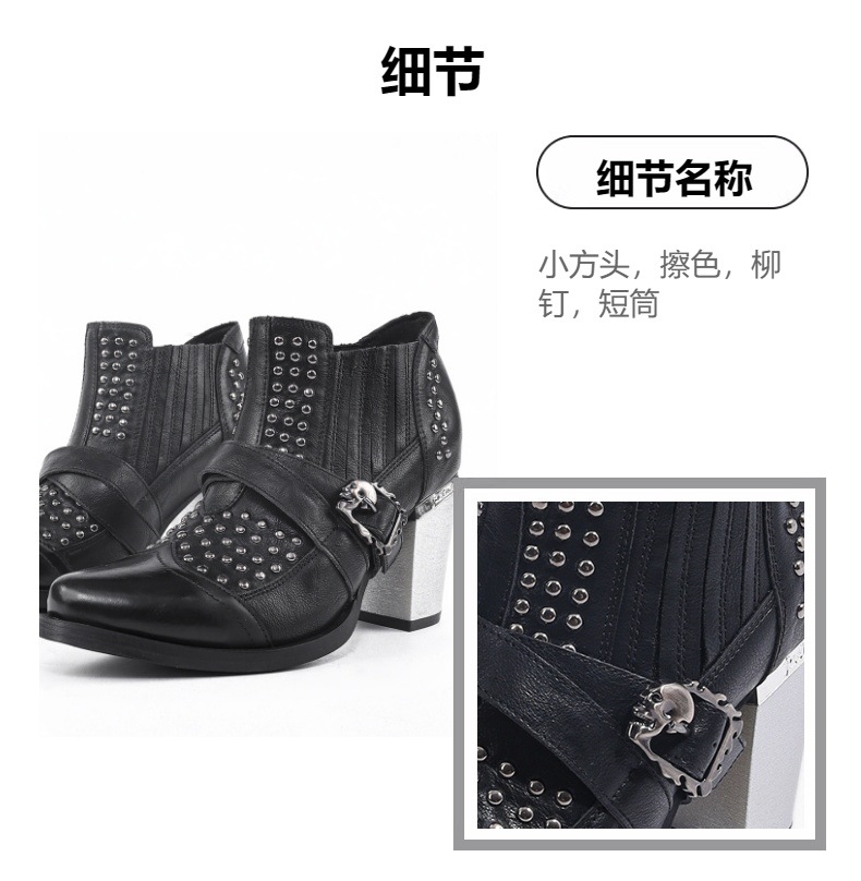 미국 사이즈 하이힐 남녀공용 봄 가을 숏부츠 여성용 컬러풀한 디테일의 러그드 스타일 두꺼운 굽 숏부츠 트렌디한 스퀘어토