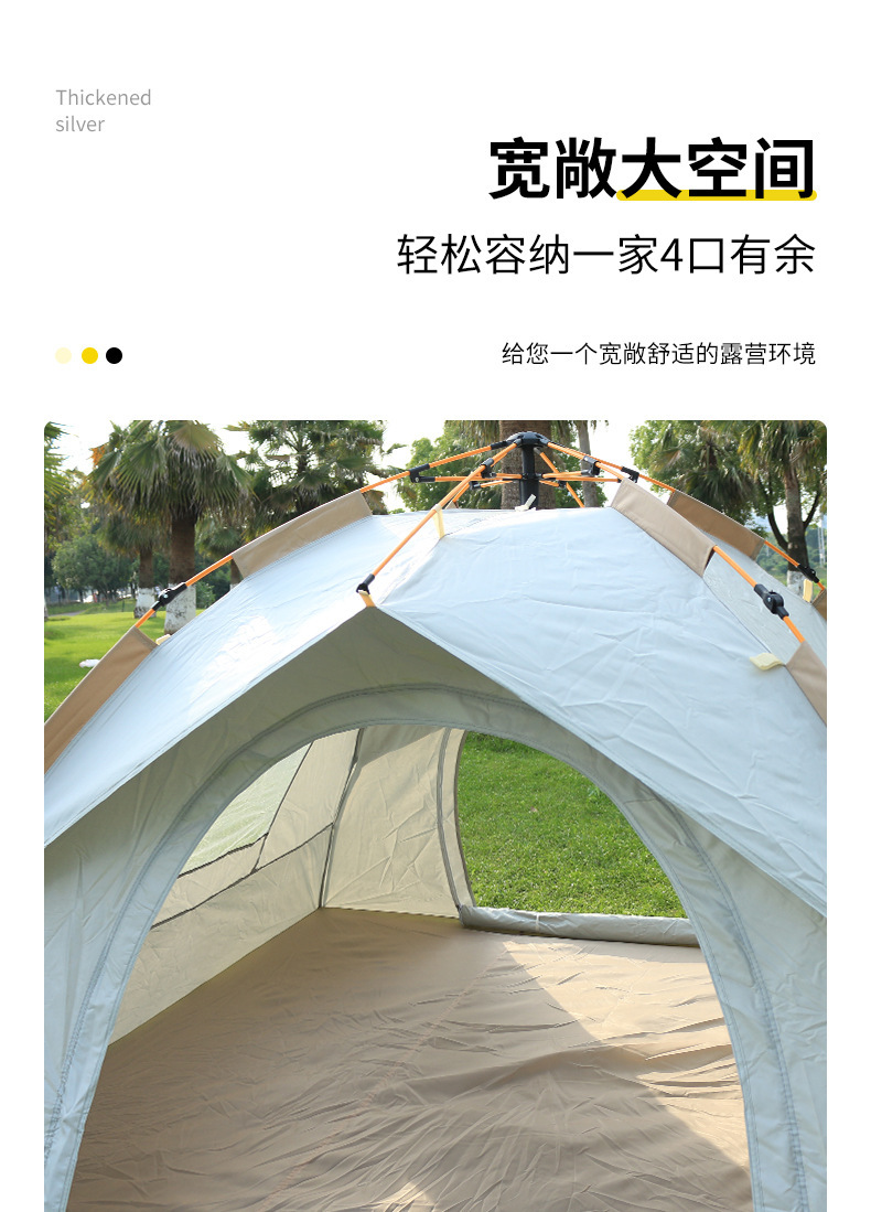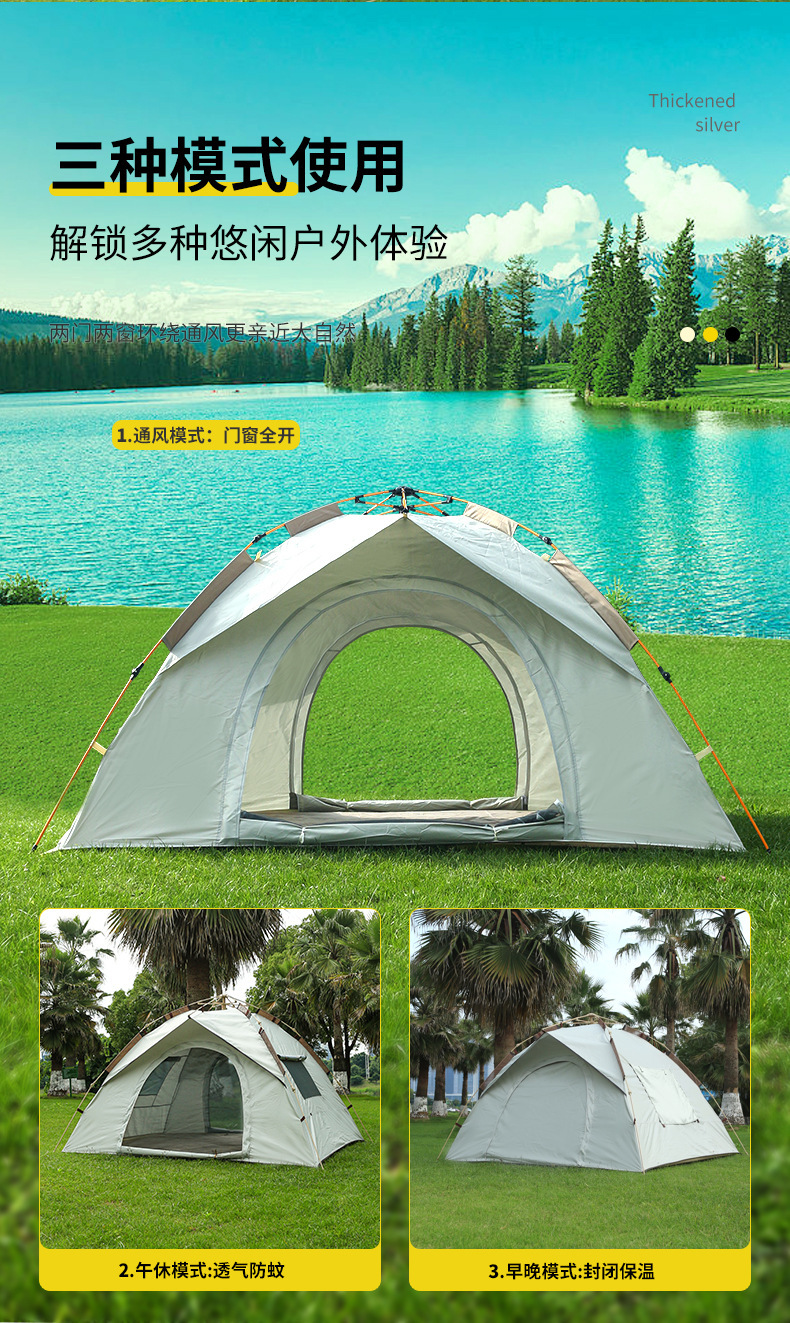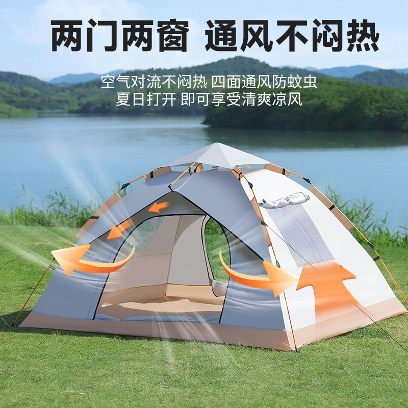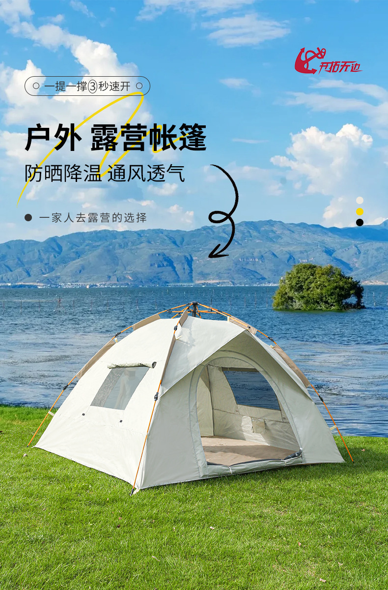 帐篷适用于户外露营、野餐、自驾旅行、沙滩休闲等多种场景。采用优质牛津布制作,便携速开,耐用便携,是露营必备装备。
