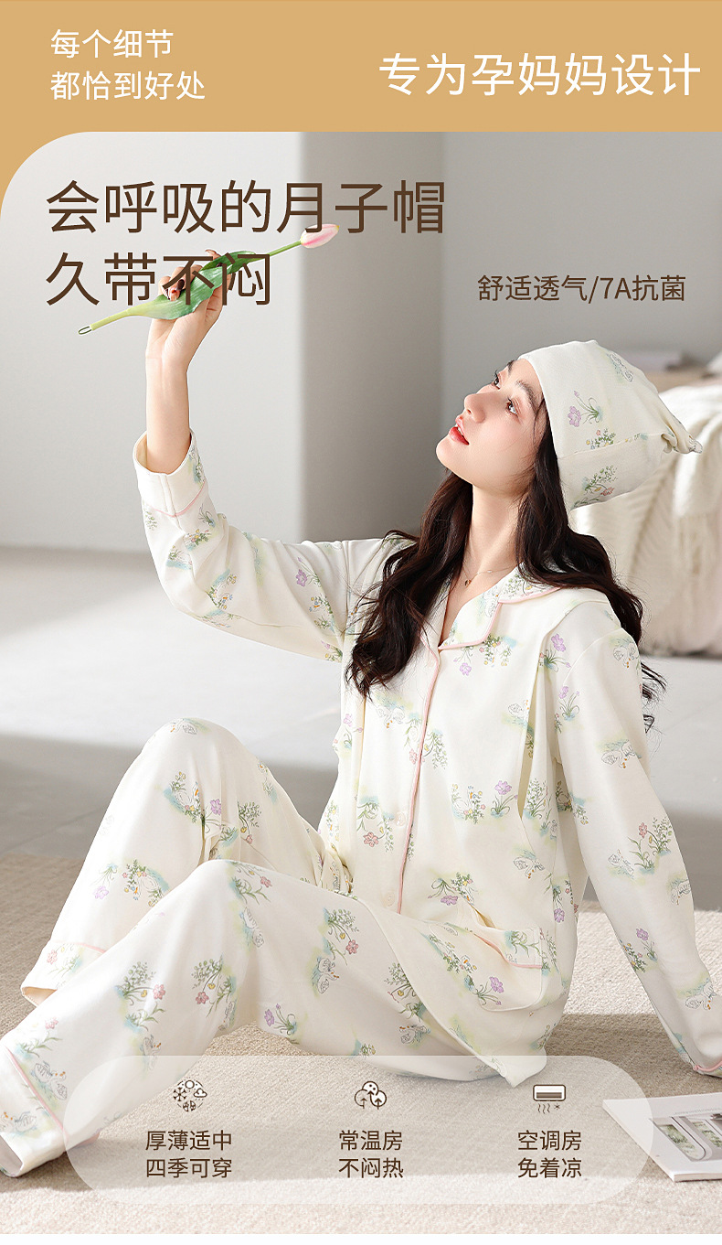 봄 여름 항균 시원한 순면 모자 산후복 가을 산전 산후 임산부 옆면 개방형 수유 수유 잠옷