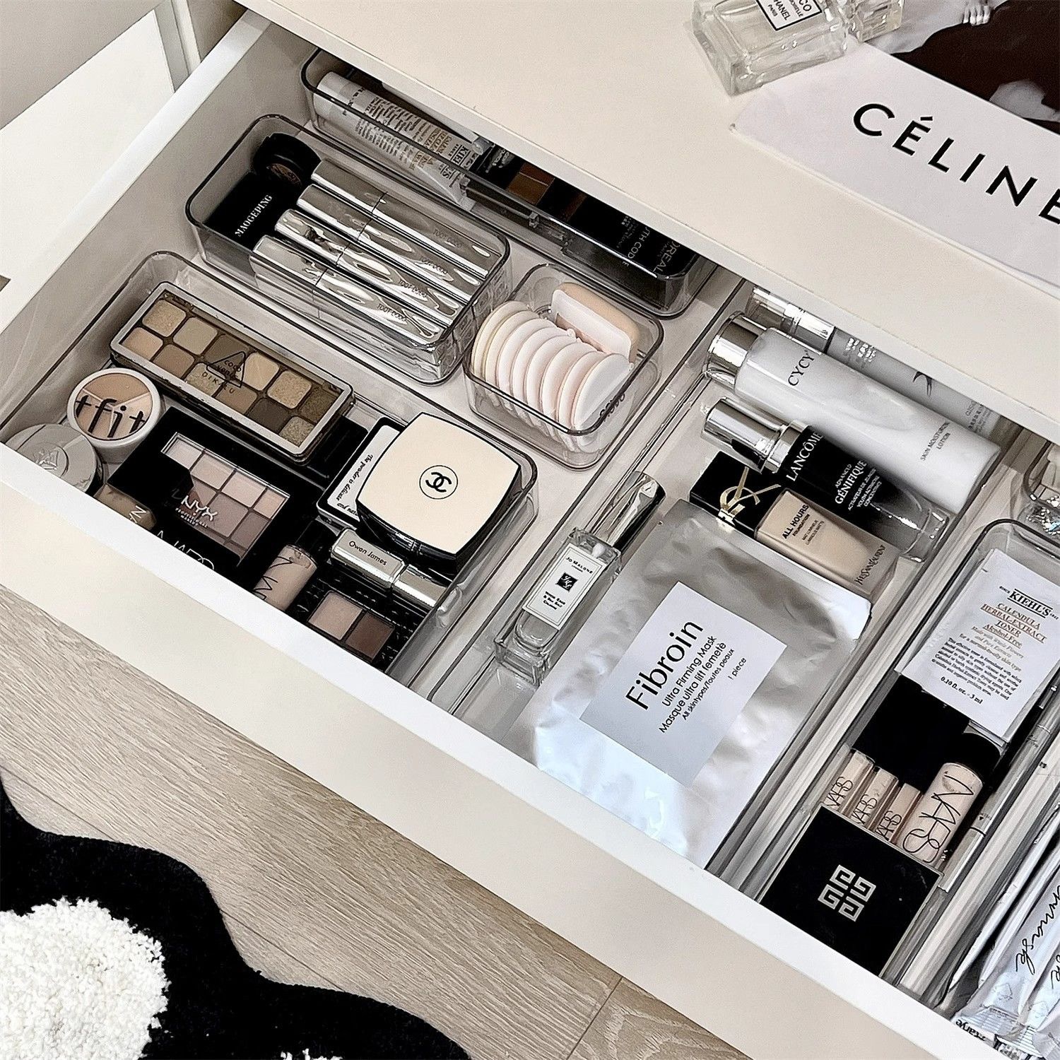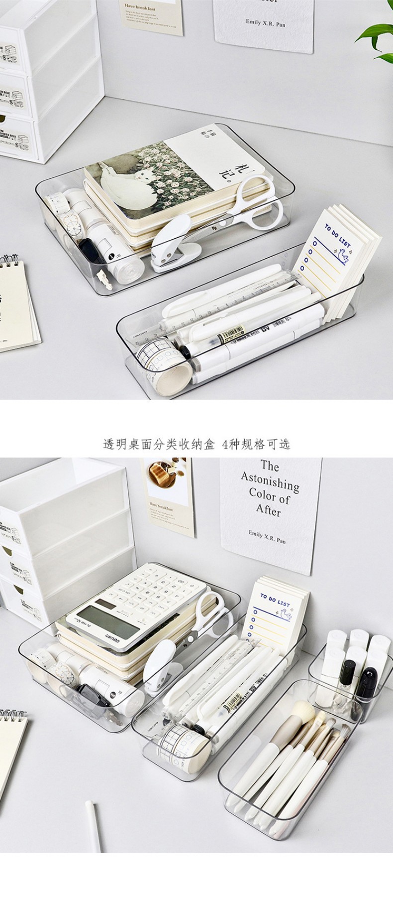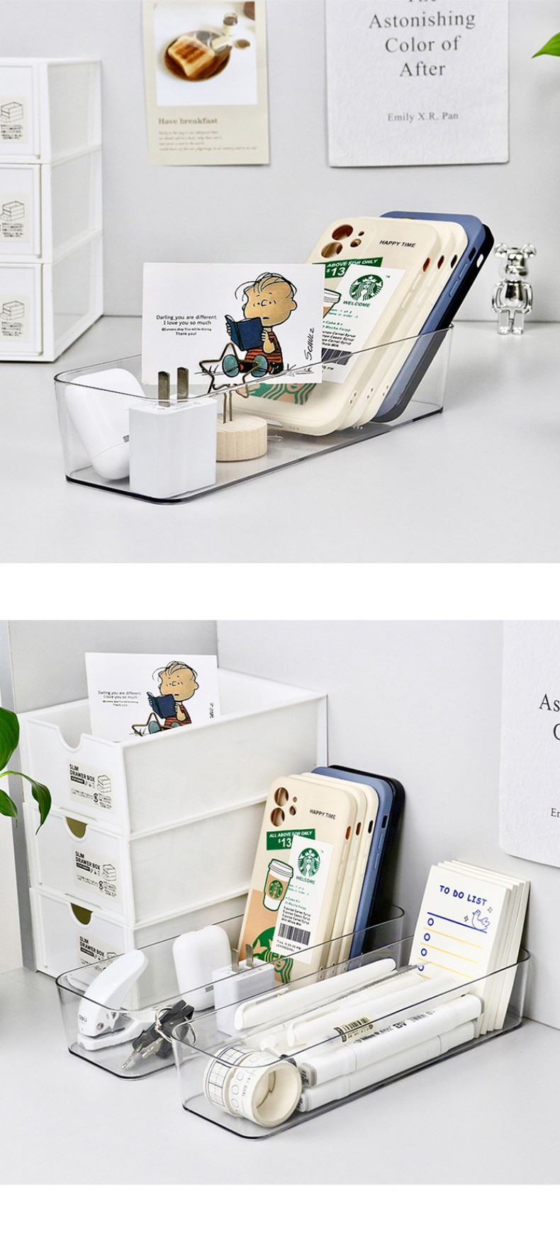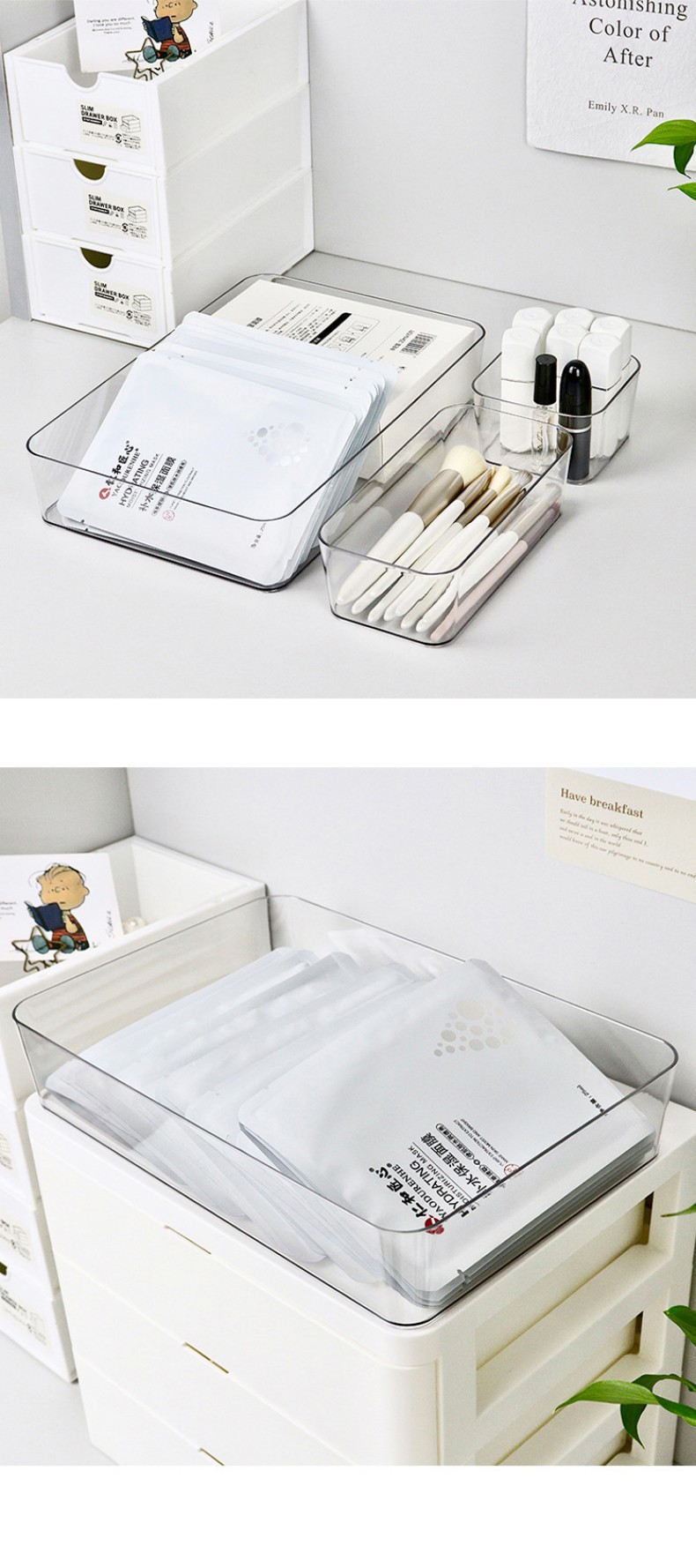 수납칸막이가 내장된 화장품 수납박스 서랍, 아크릴 정리함, 데스크탑 화장대 수납선반, 칸막이박스