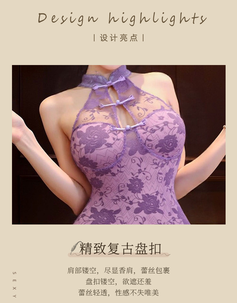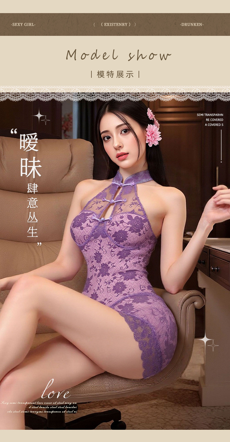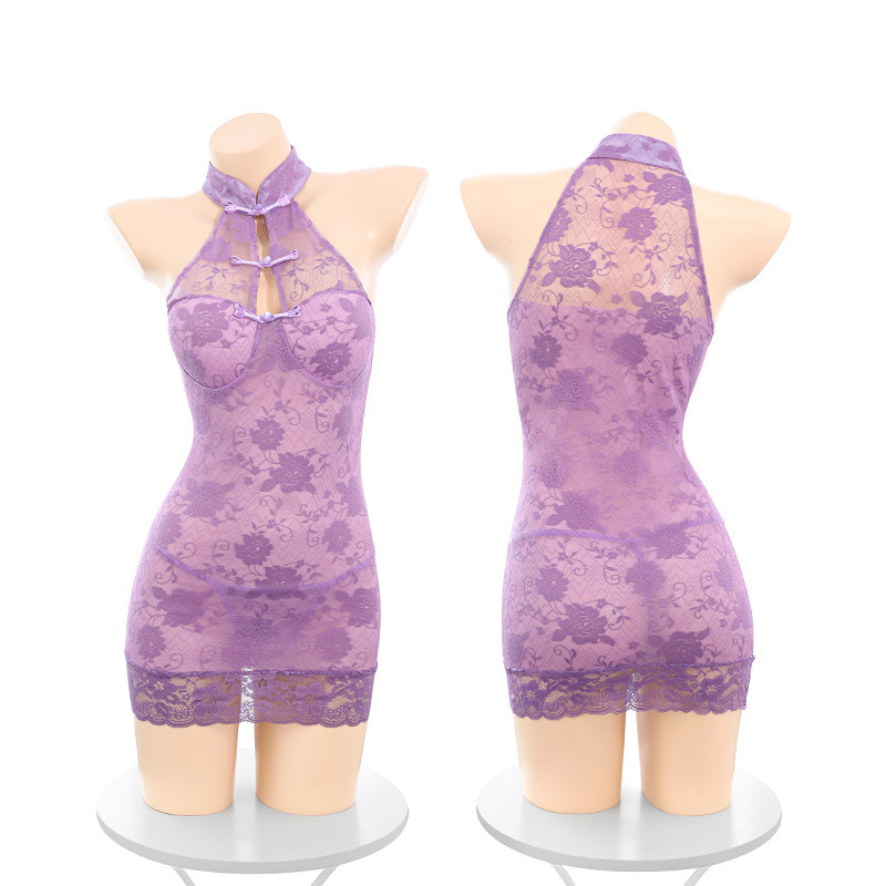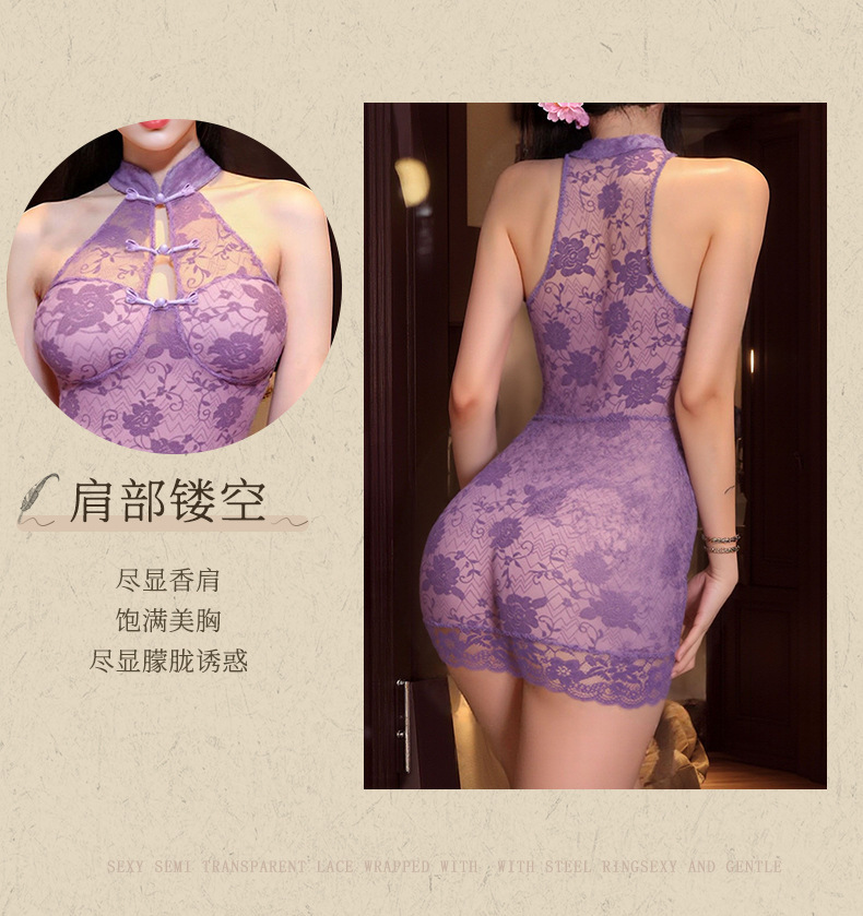 섹시한 속옷, 섹시한 슬림 레이스 드레스, 슬림핏 힙 스커트, 타이트한 시스루 치파오, 홈웨어, 여성용 잠옷