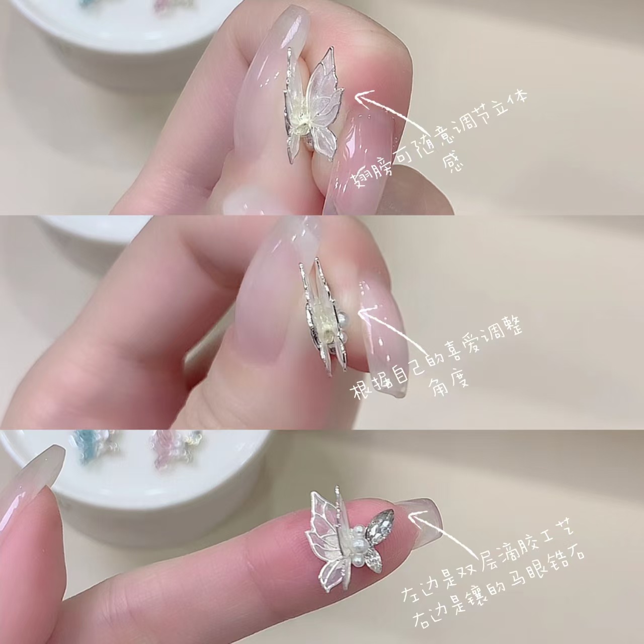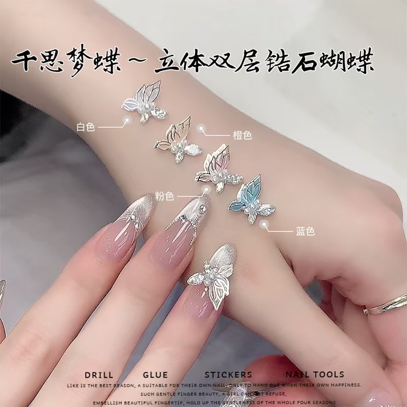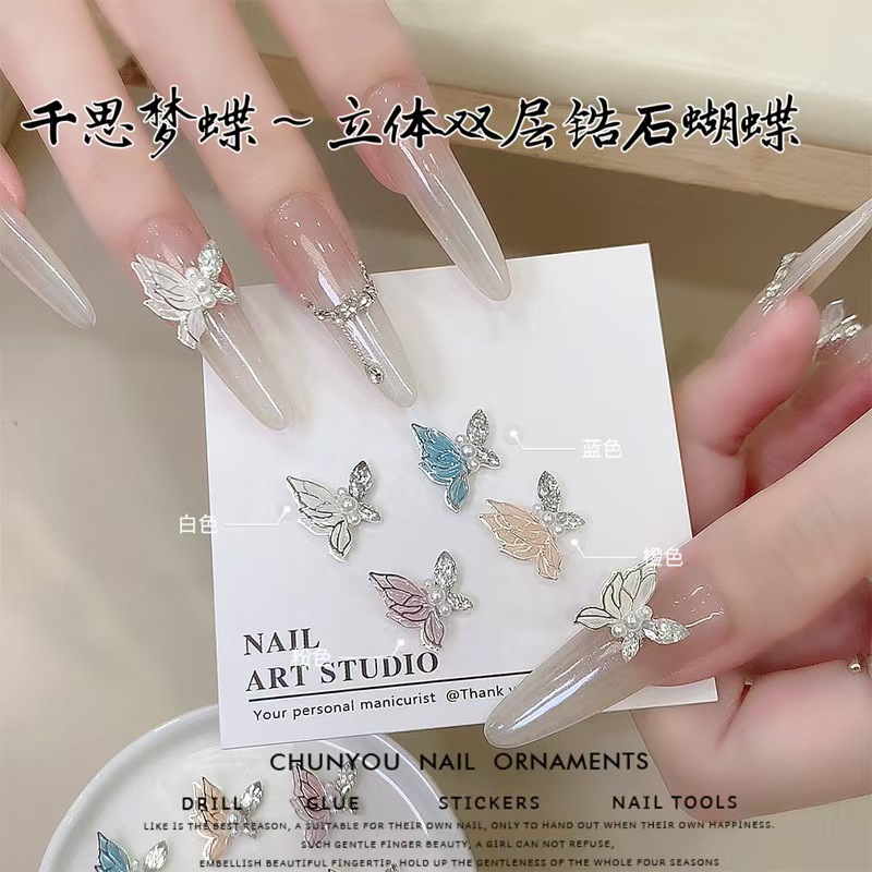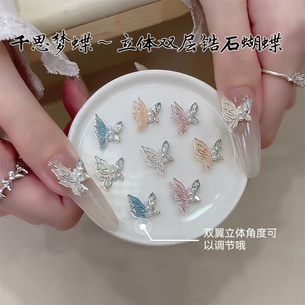 새로운 Qiansi Mengdie 합금 지르콘 네일 아트 다이아몬드 장식품 3 차원 더블 레이어 플래시 얇은 날개 나비 날개 보석