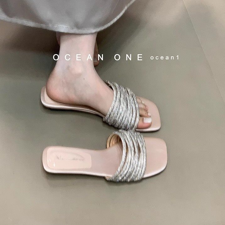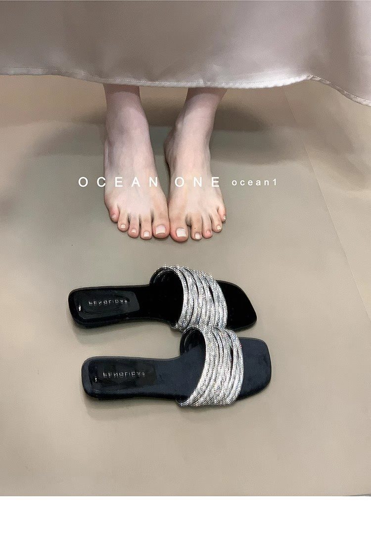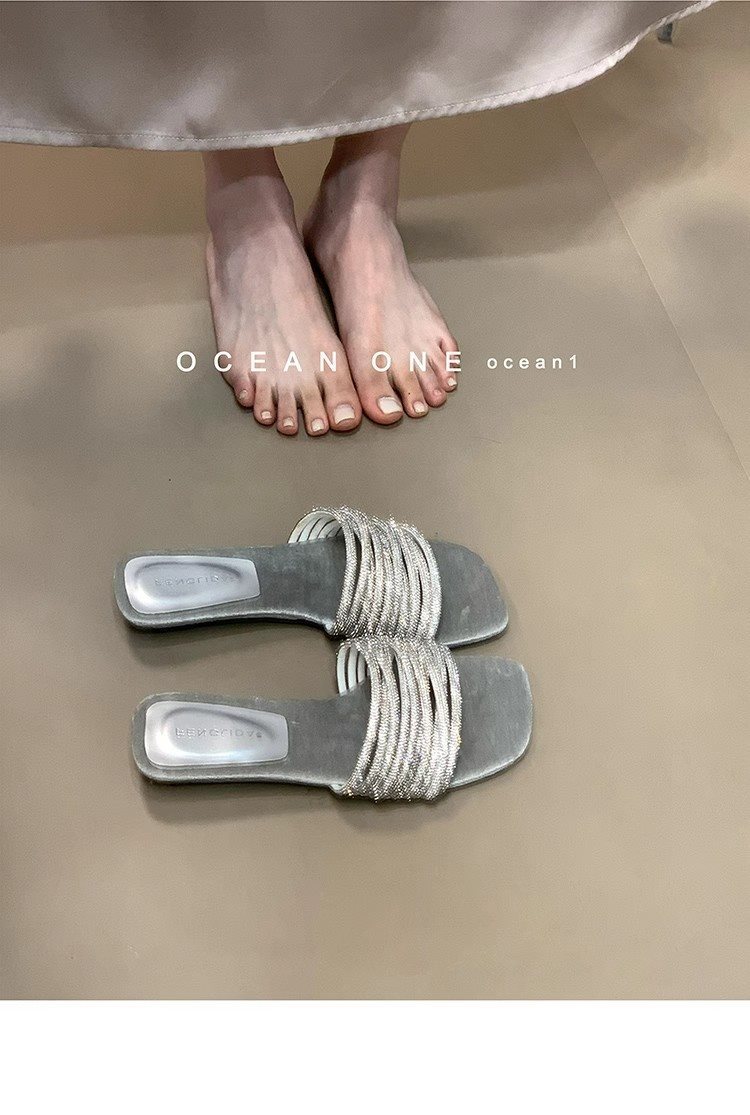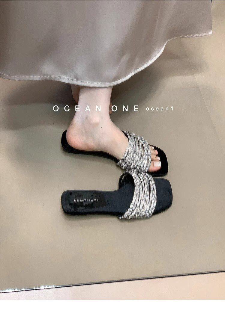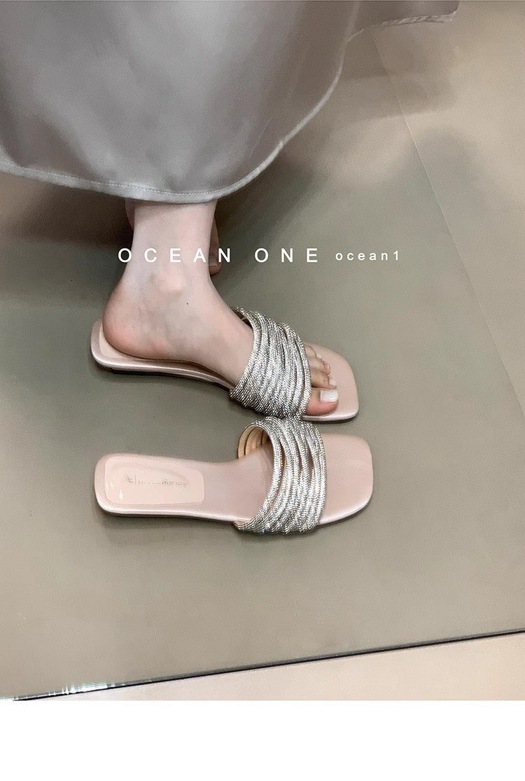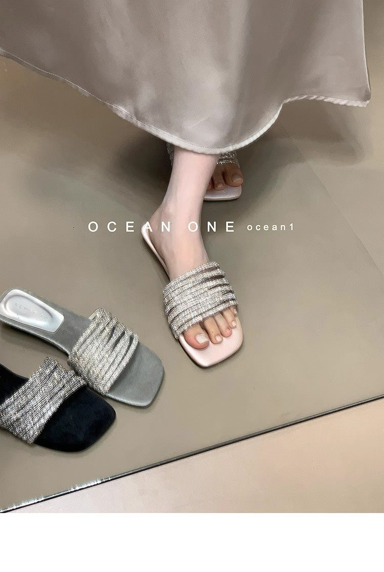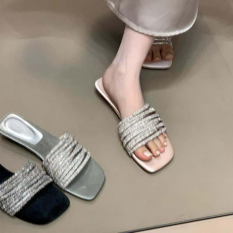부드러운 해변 요정 스타일 슬라이드 원피스 새로운 도착 라인스톤 달콤한 휴일 2025 여성용 샌들 및 슬리퍼 여름
