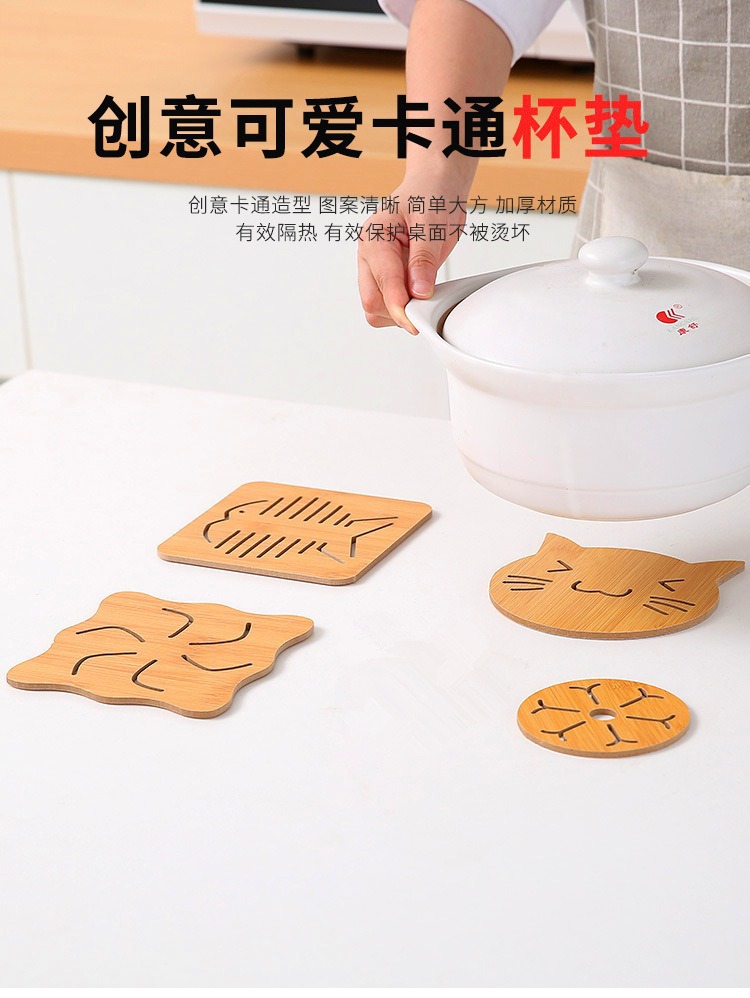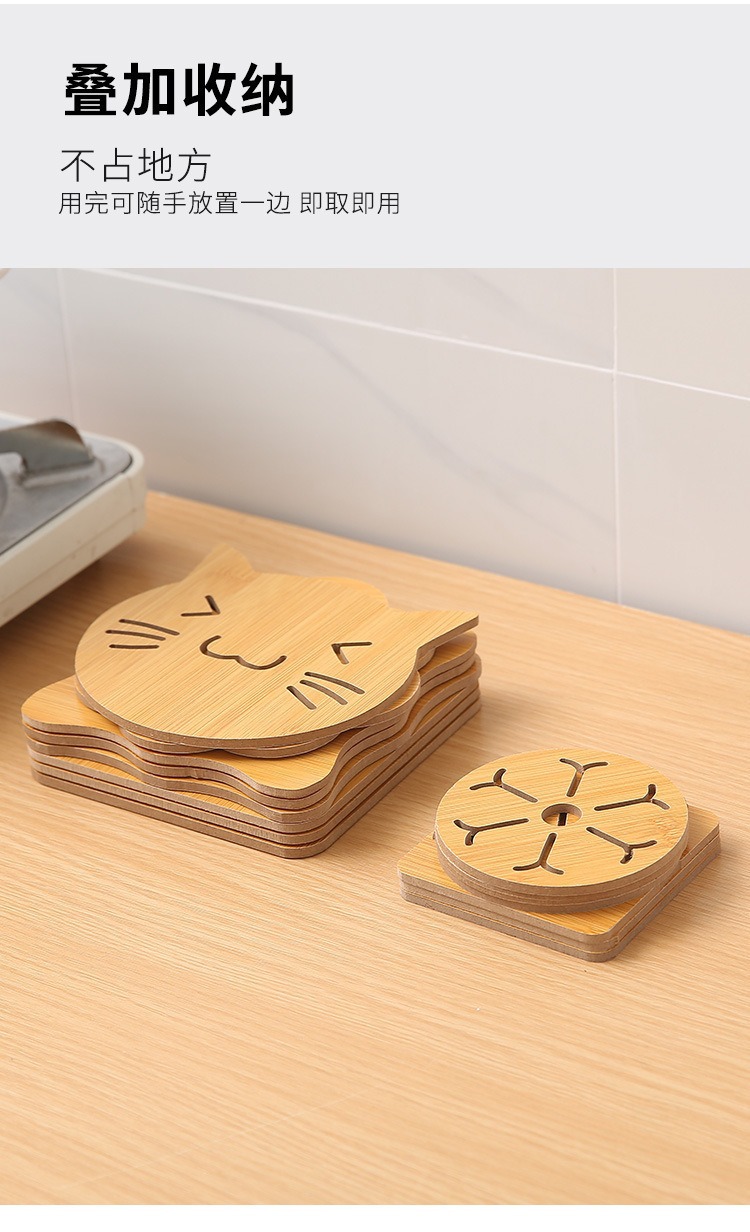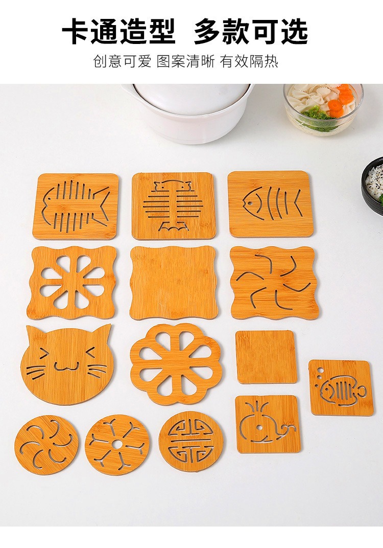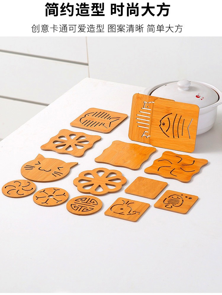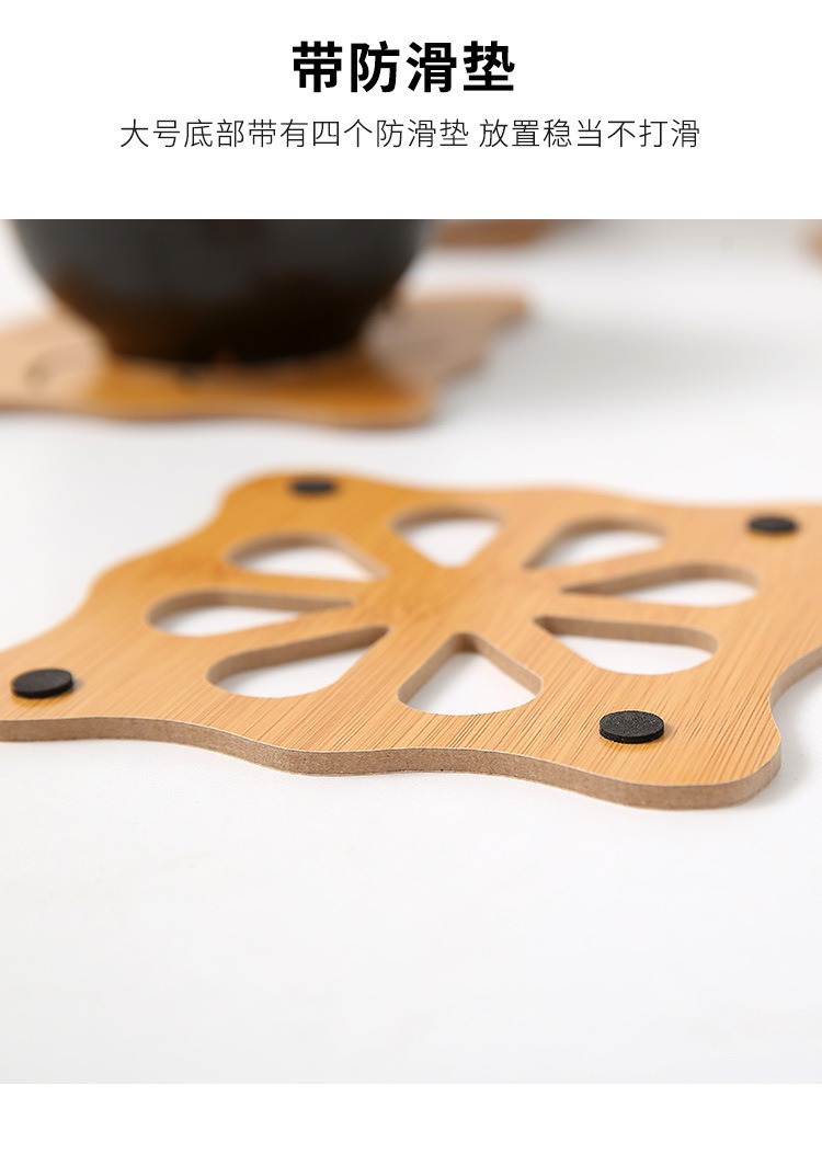 나무 코스터 주방 두꺼운 안티 스케일링 및 단열 다이닝 매트 다이닝 테이블 미끄럼 방지 팟 매트 크리에이티브 할로우 아웃 티 컵 보울 매트 매트