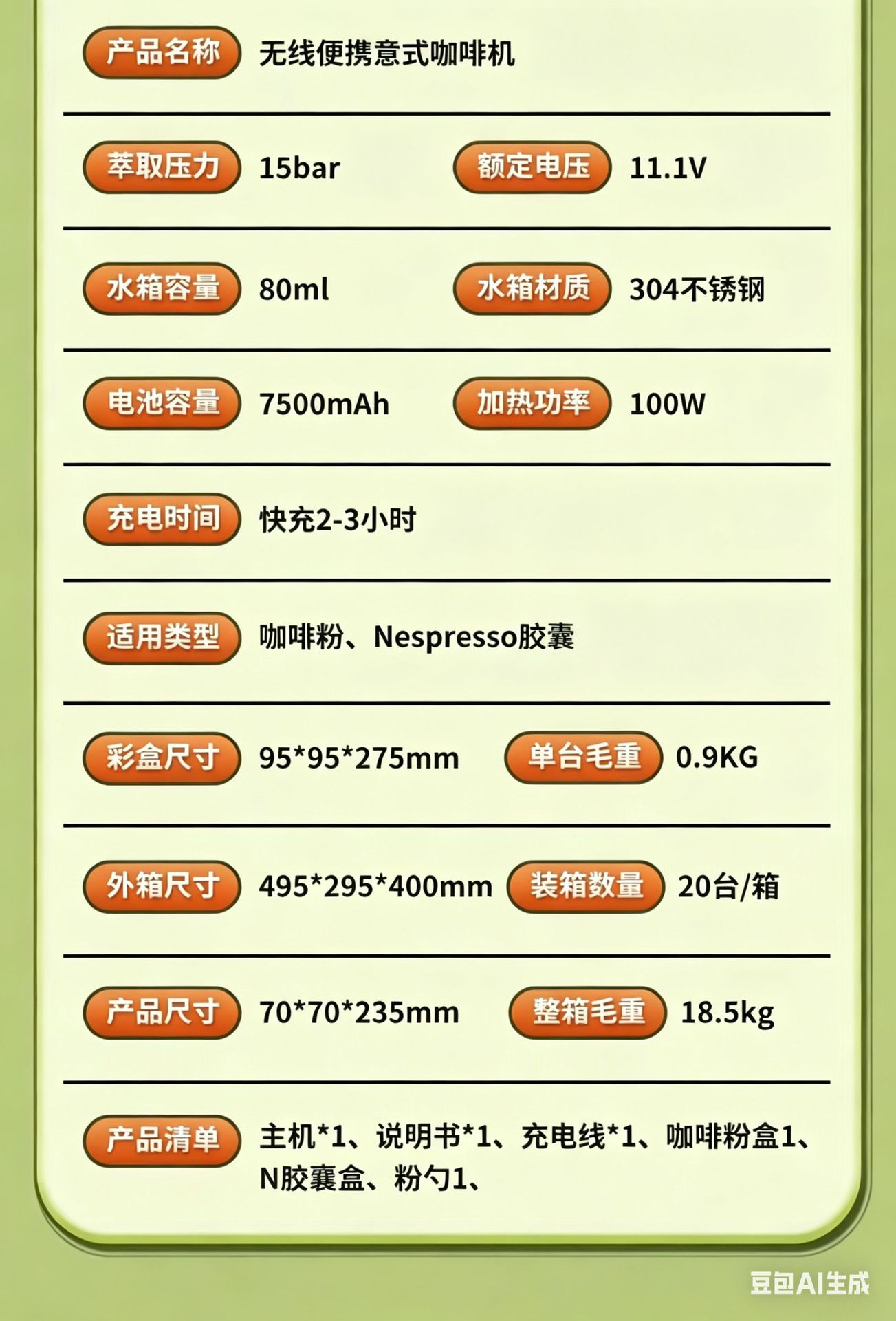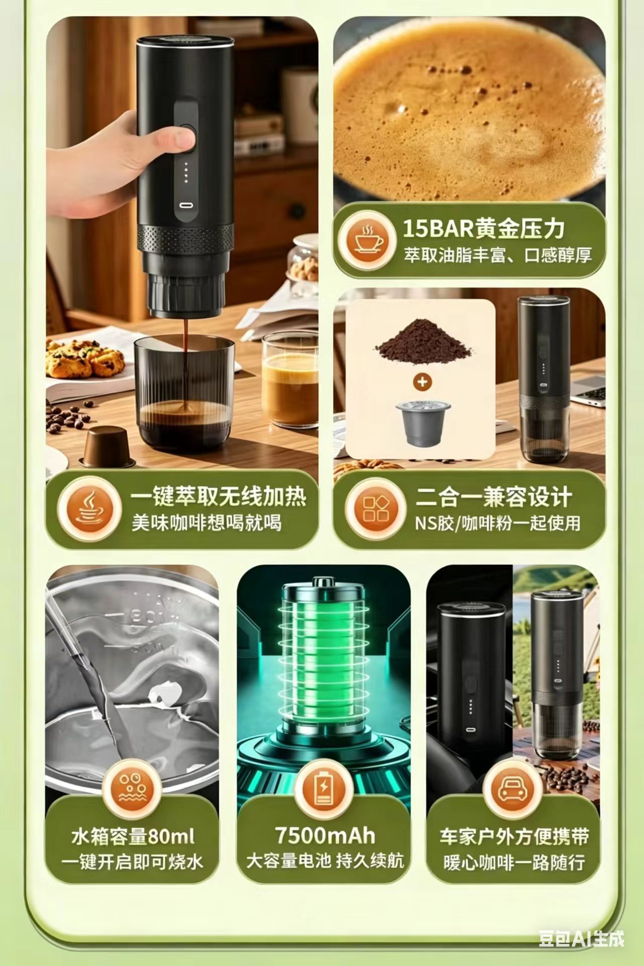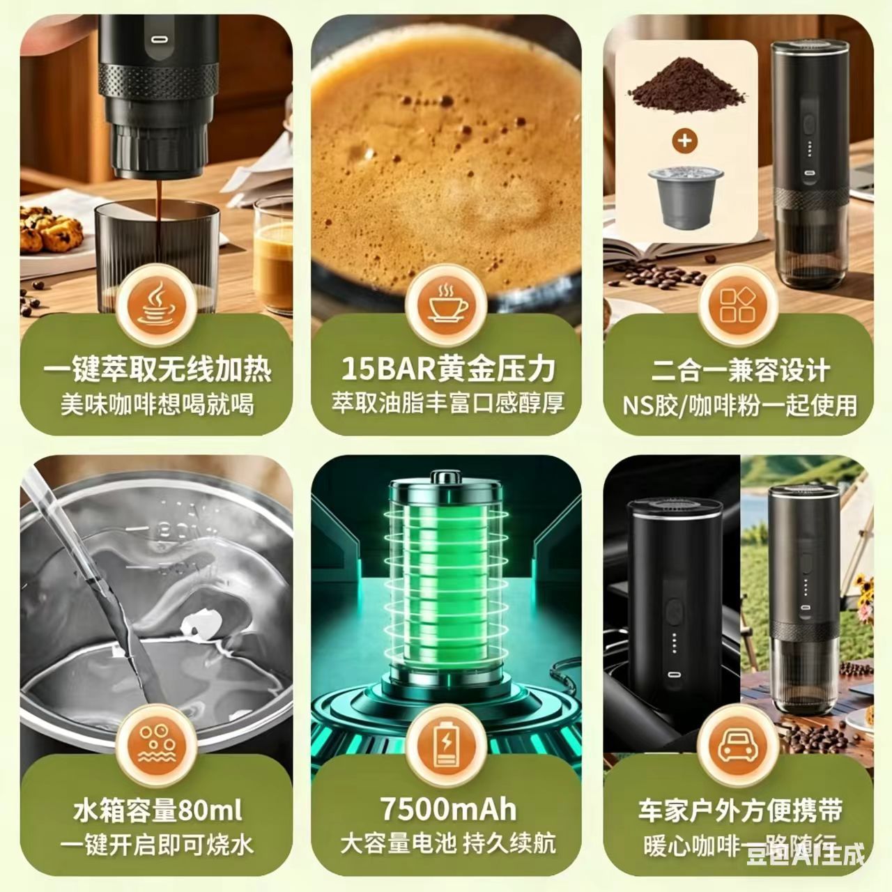 국경 무선 휴대용 캡슐 커피 기계 완전 자동 이탈리아 펌프 압력 무선 가열 추출 에스프레소 기계