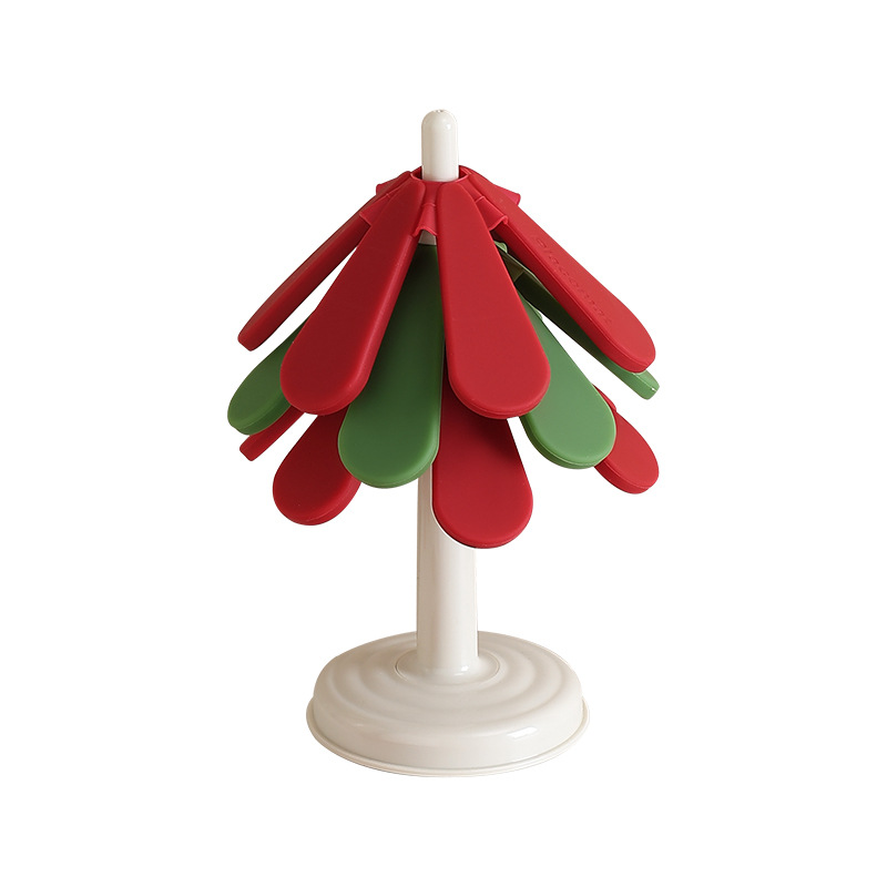 고급 센스 크리스마스 트리 단열 매트 식탁 장식 크리에이티브 트리 솔리드 우드 안티 스케일 포트 매트 폴딩 코스터 보울 매트
