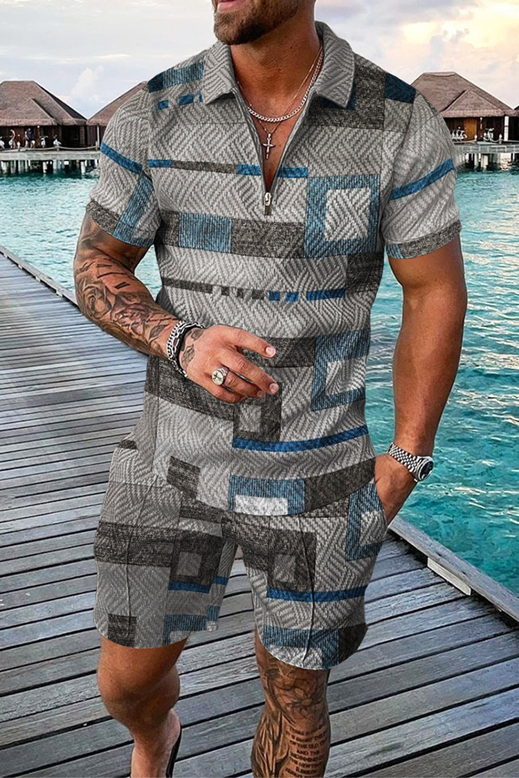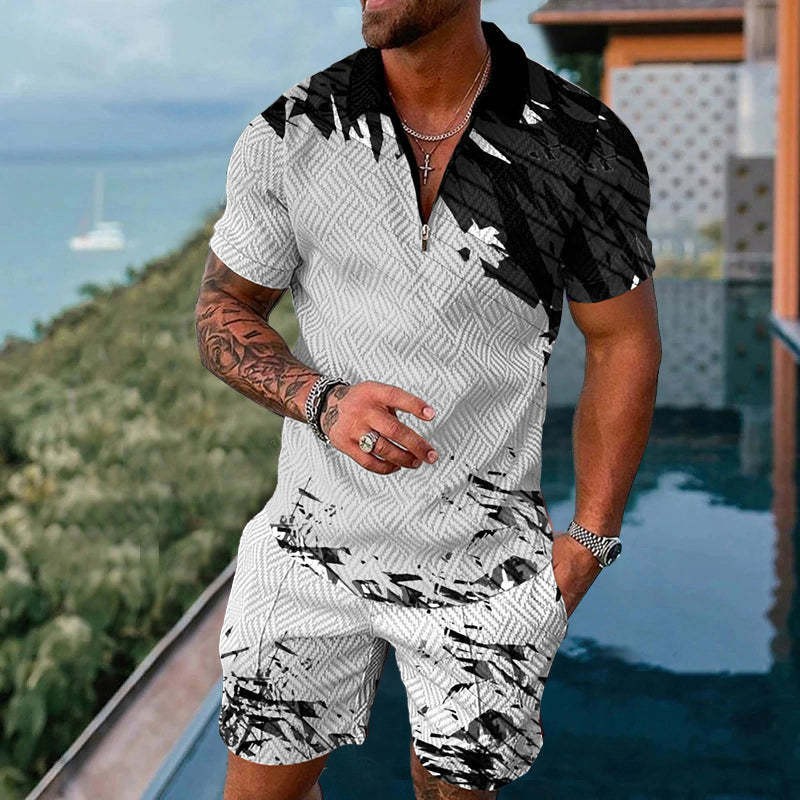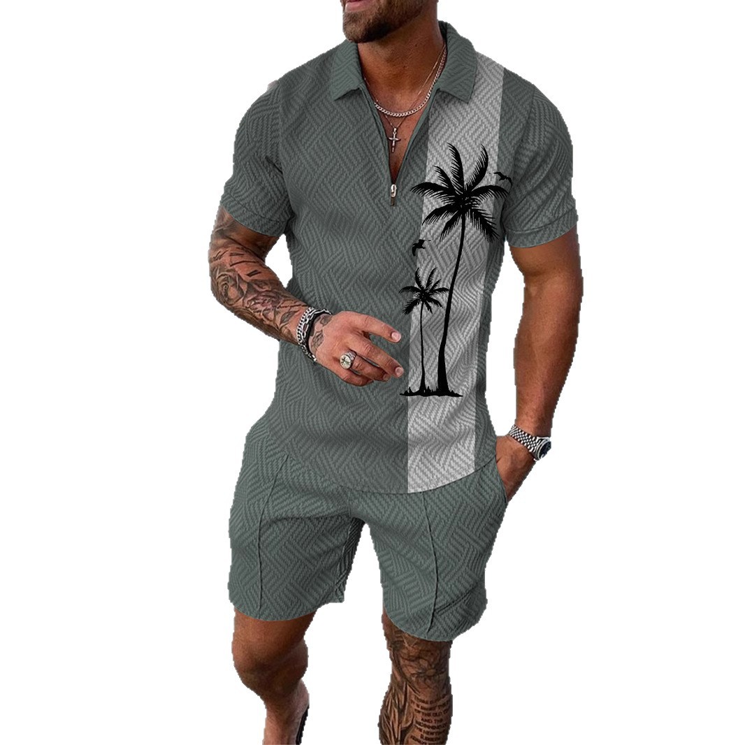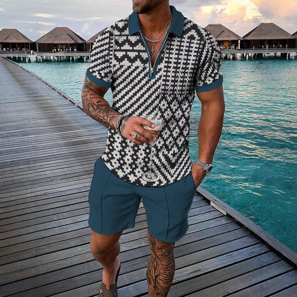 지퍼 폴로 슈트 국경 간 대외 무역 새로운 남성 승화 유럽과 미국의 폴로 셔츠 슈트 여름 해변 휴식