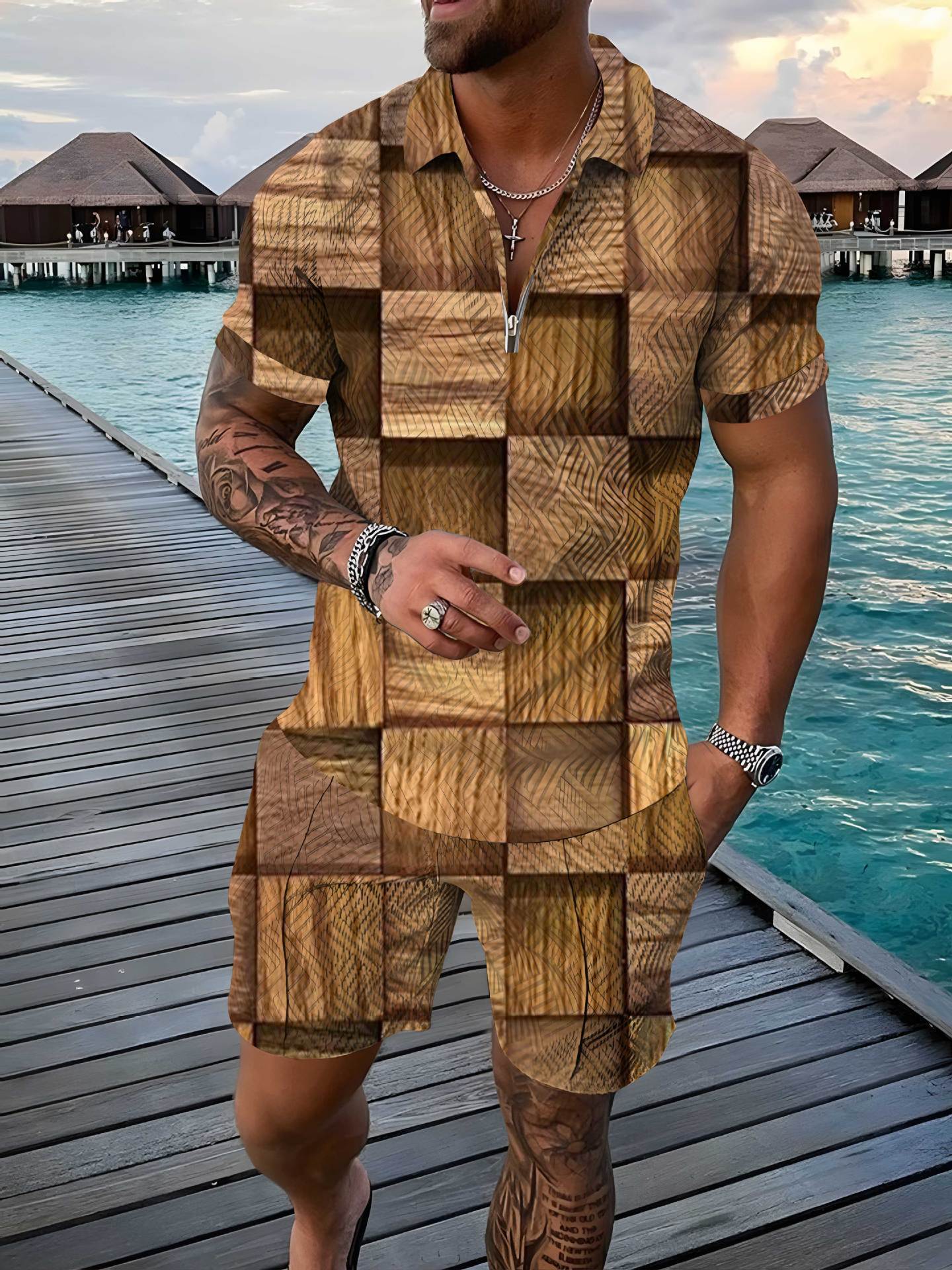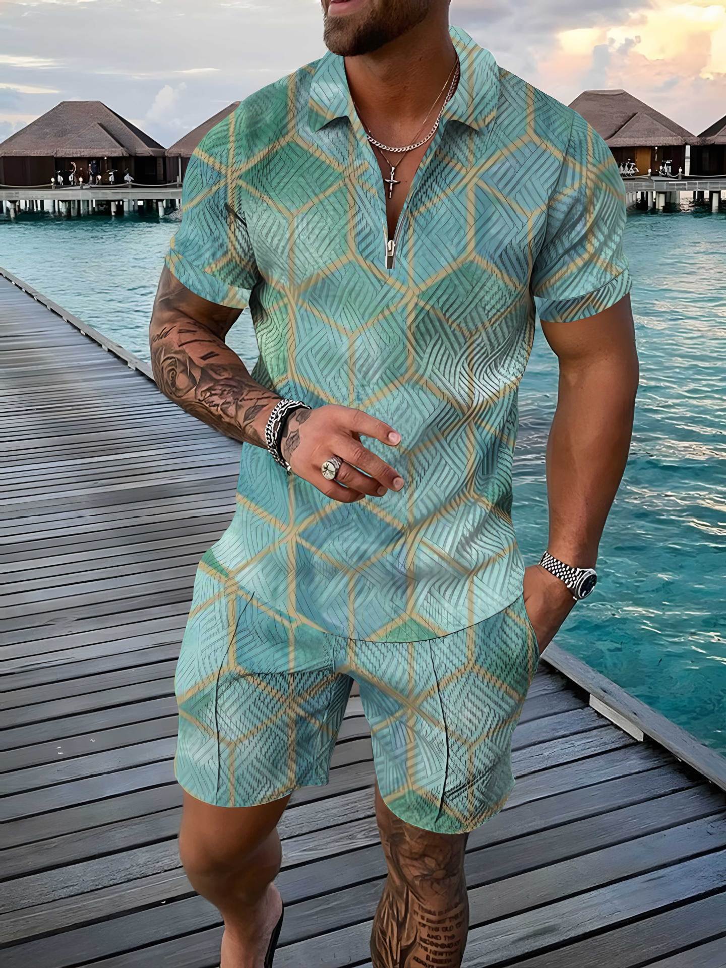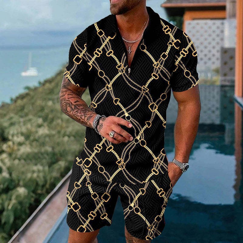 지퍼 폴로 슈트 국경 간 대외 무역 새로운 남성 승화 유럽과 미국의 폴로 셔츠 슈트 여름 해변 휴식