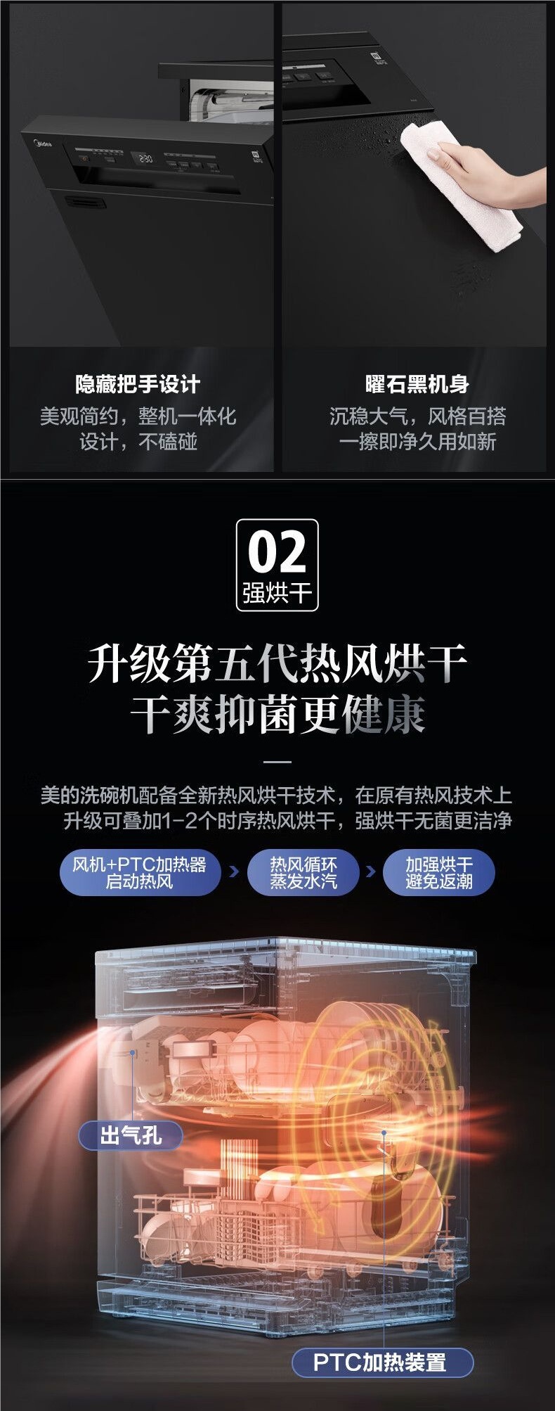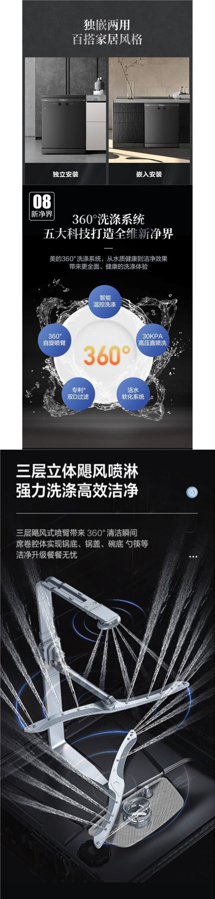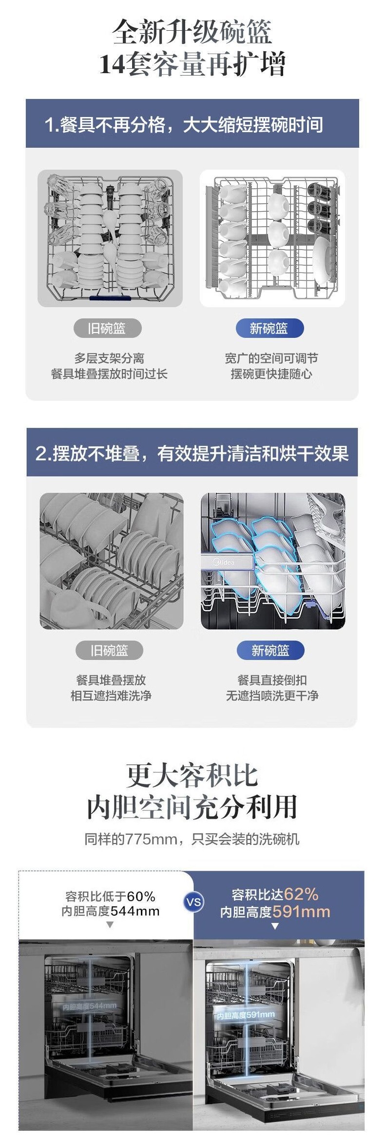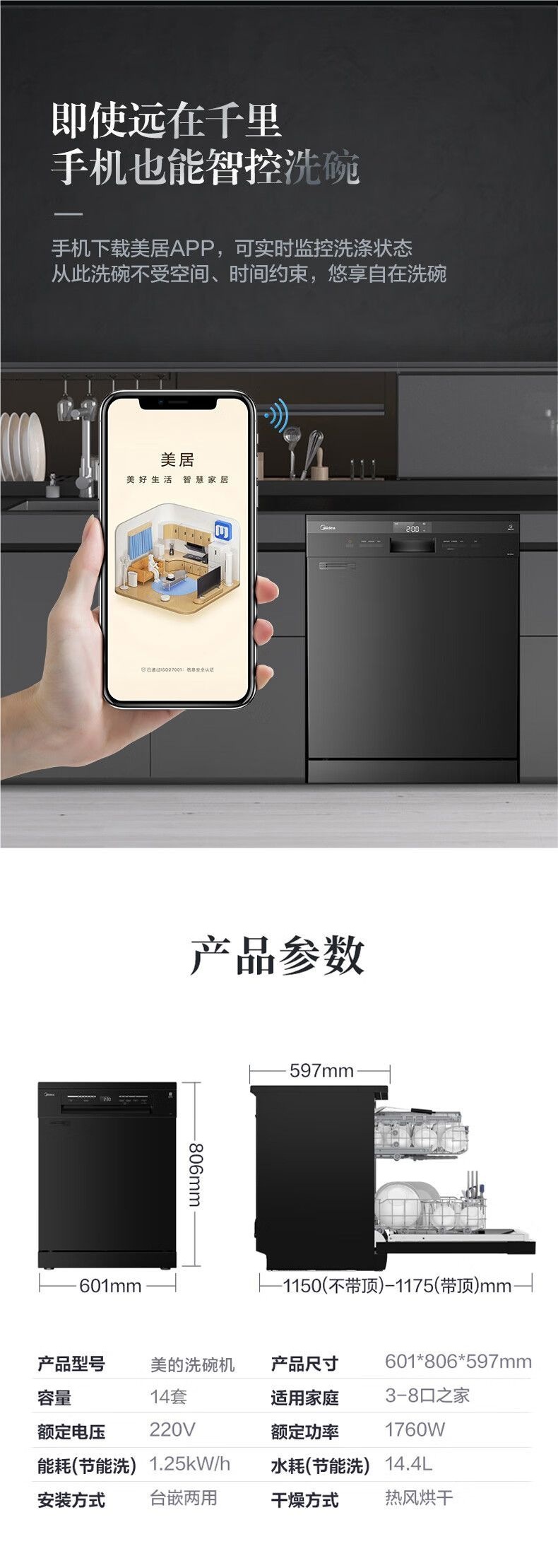 Midea 14세트 식기세척기 가정용 완전 자동 내장형 독립형 열풍 건조기