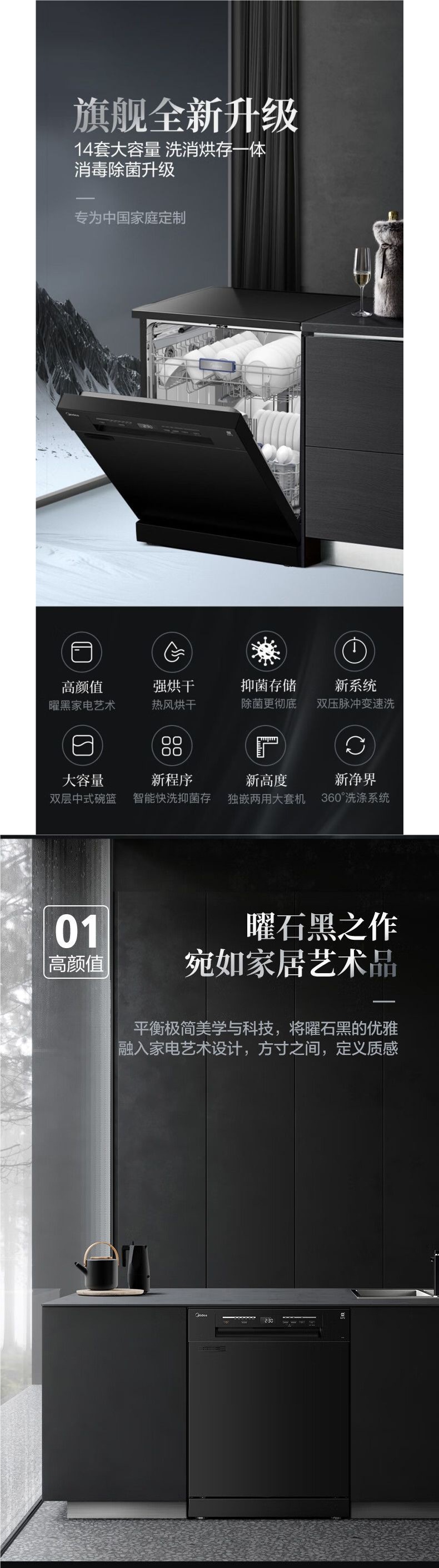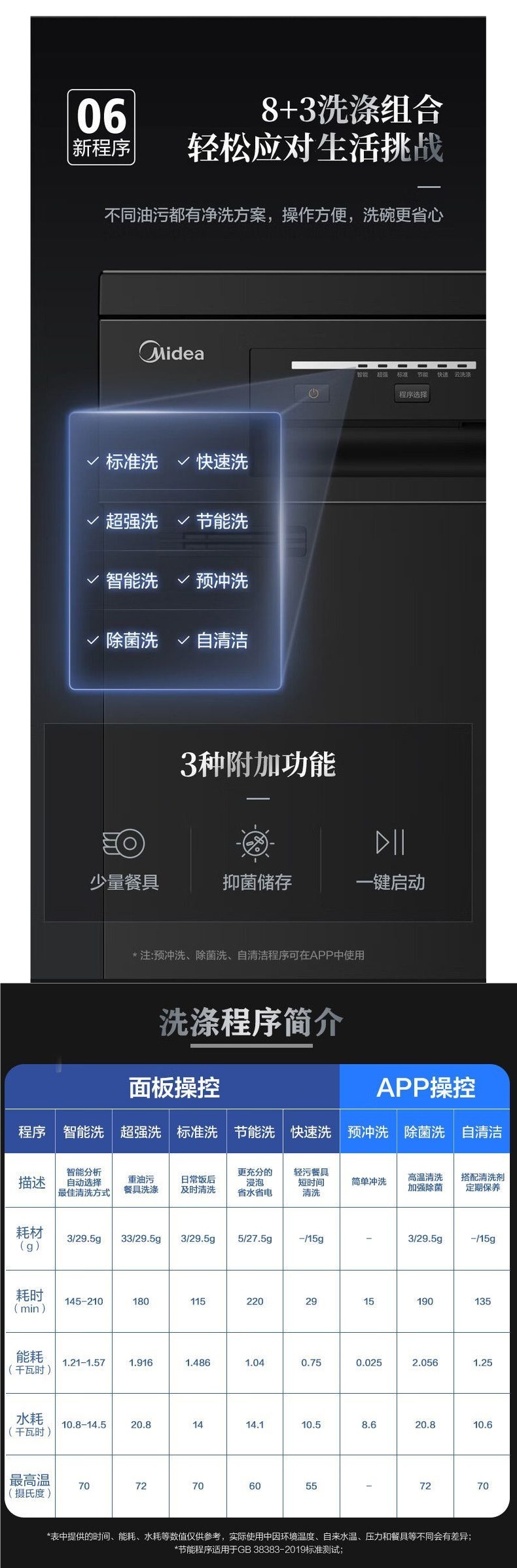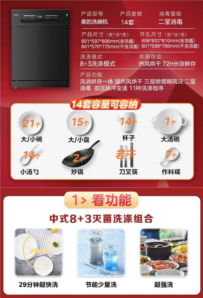 Midea 14세트 식기세척기 가정용 완전 자동 내장형 독립형 열풍 건조기