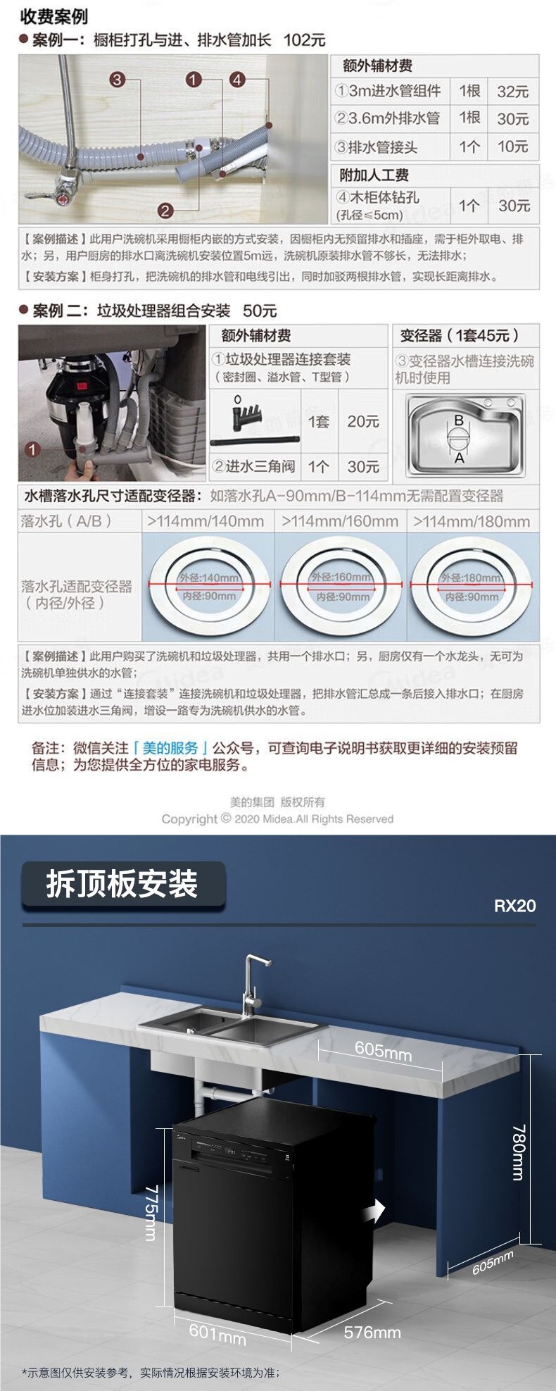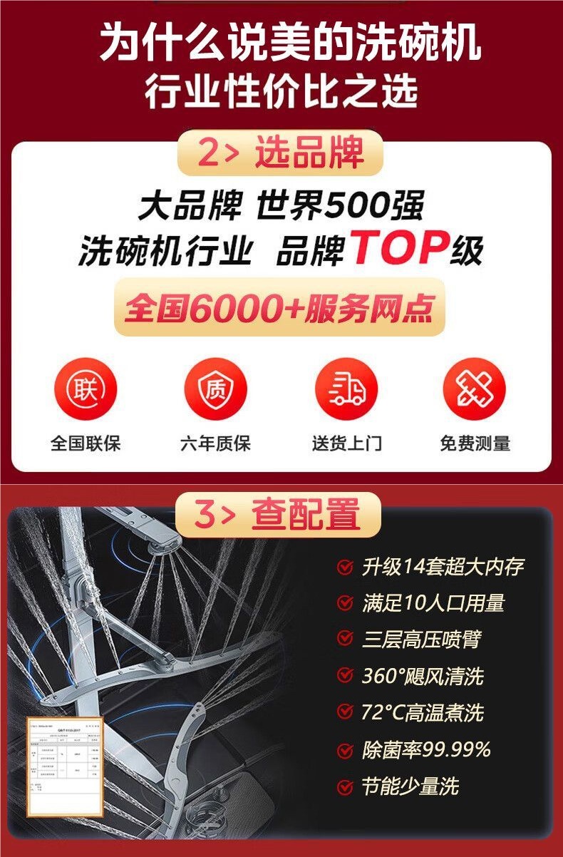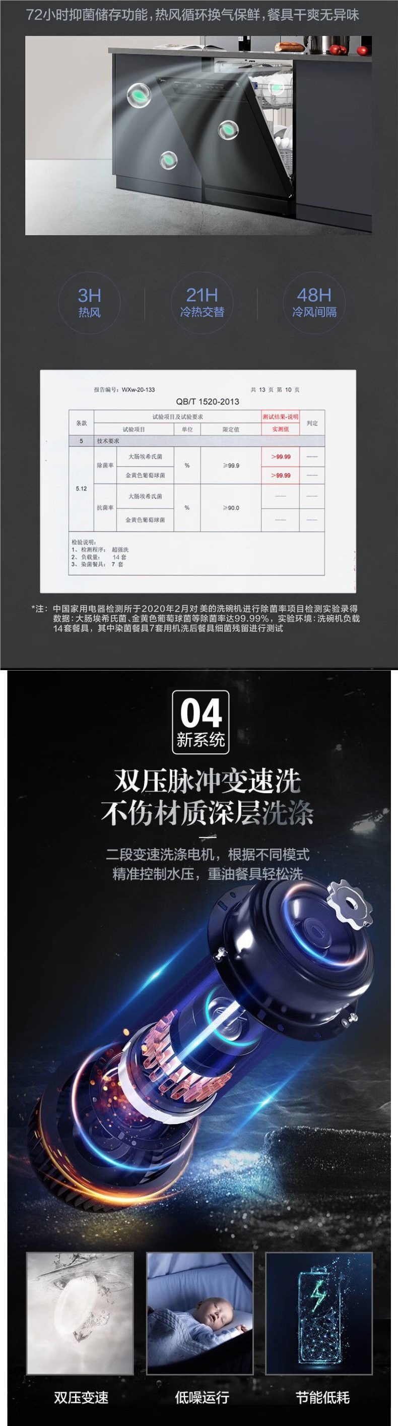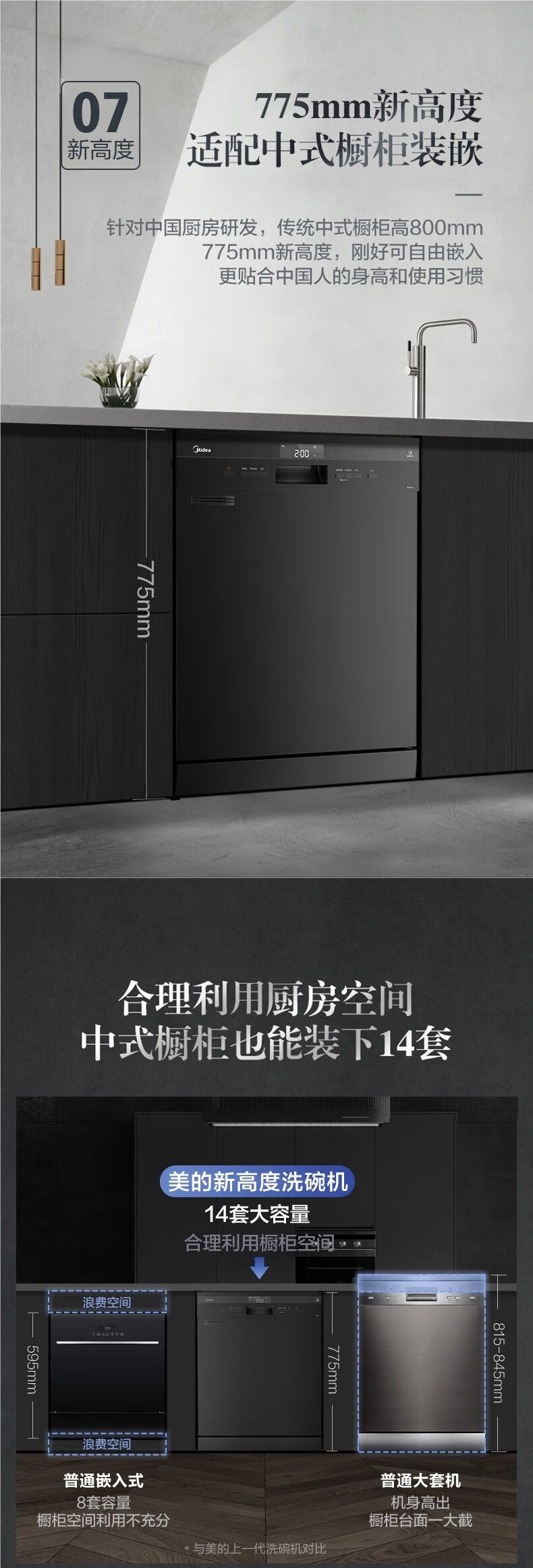Midea 14세트 식기세척기 가정용 완전 자동 내장형 독립형 열풍 건조기
