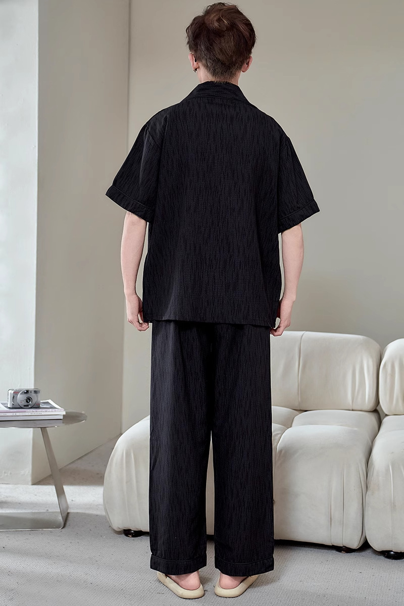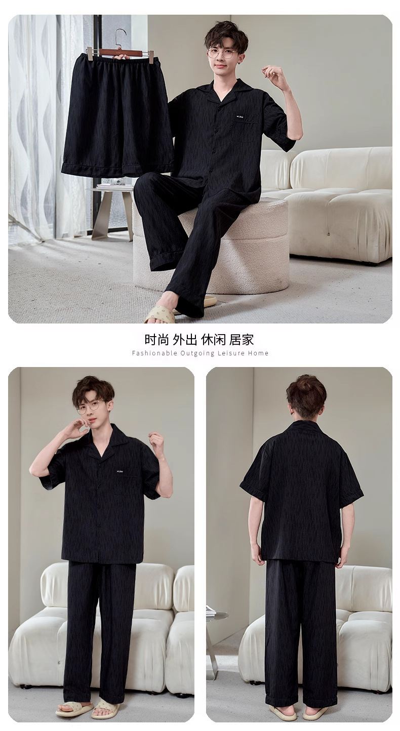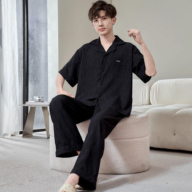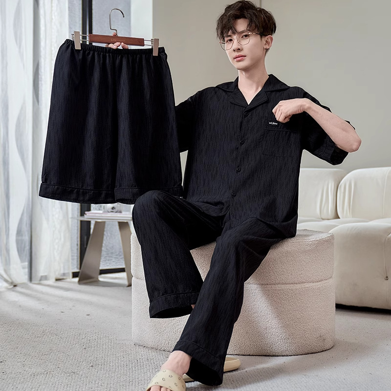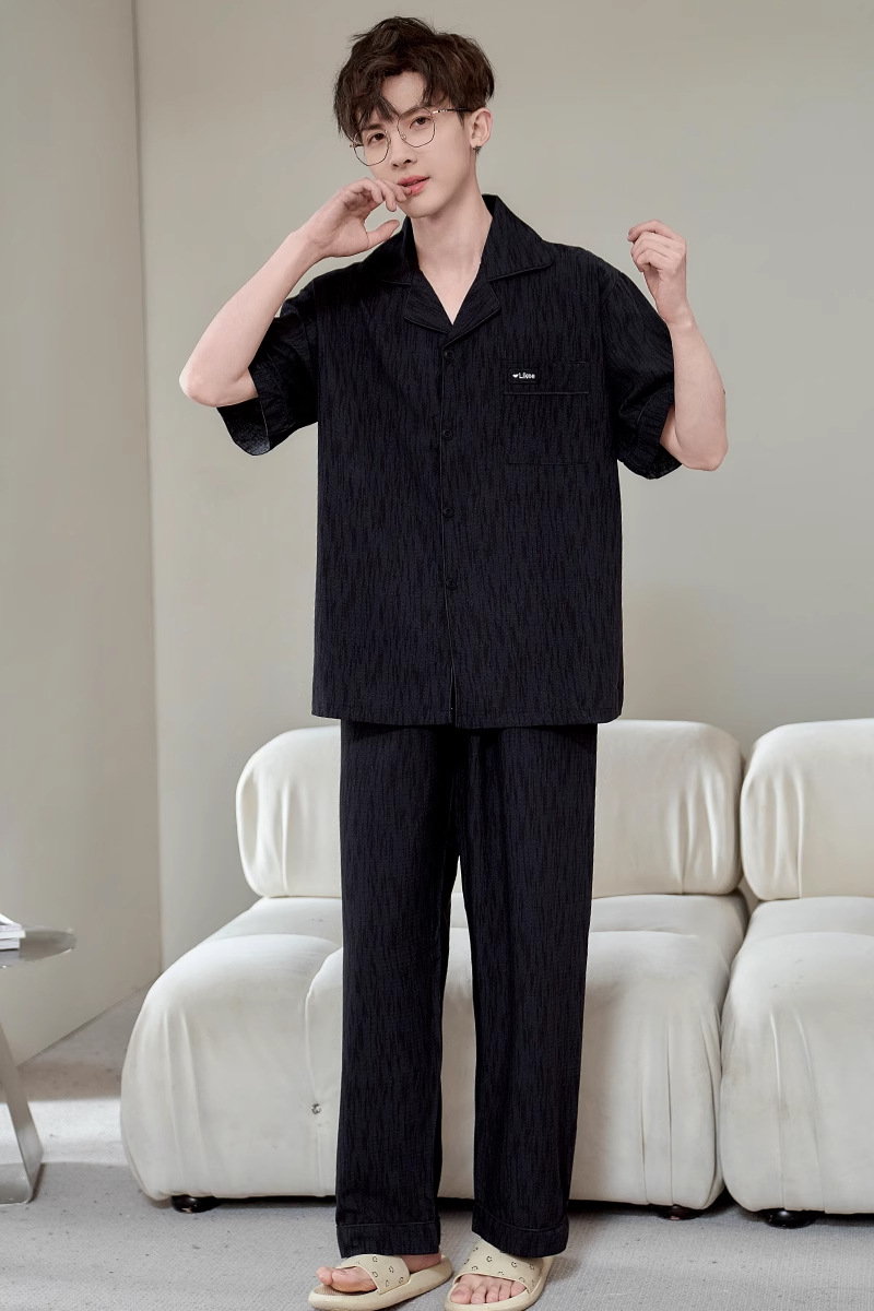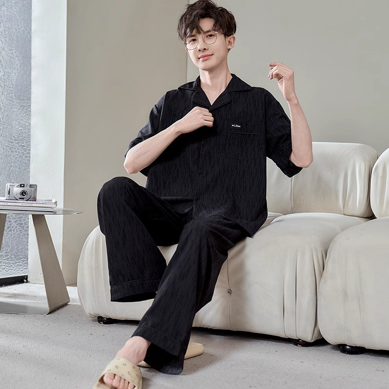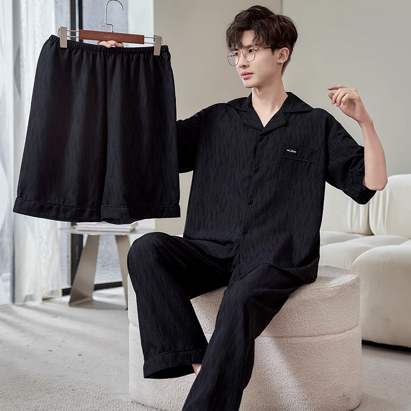 도매 새로운 잠옷 남자 여름 버블 코튼 얇은 반팔 반바지 시원한 느낌 홈웨어 대형 루즈 슈트