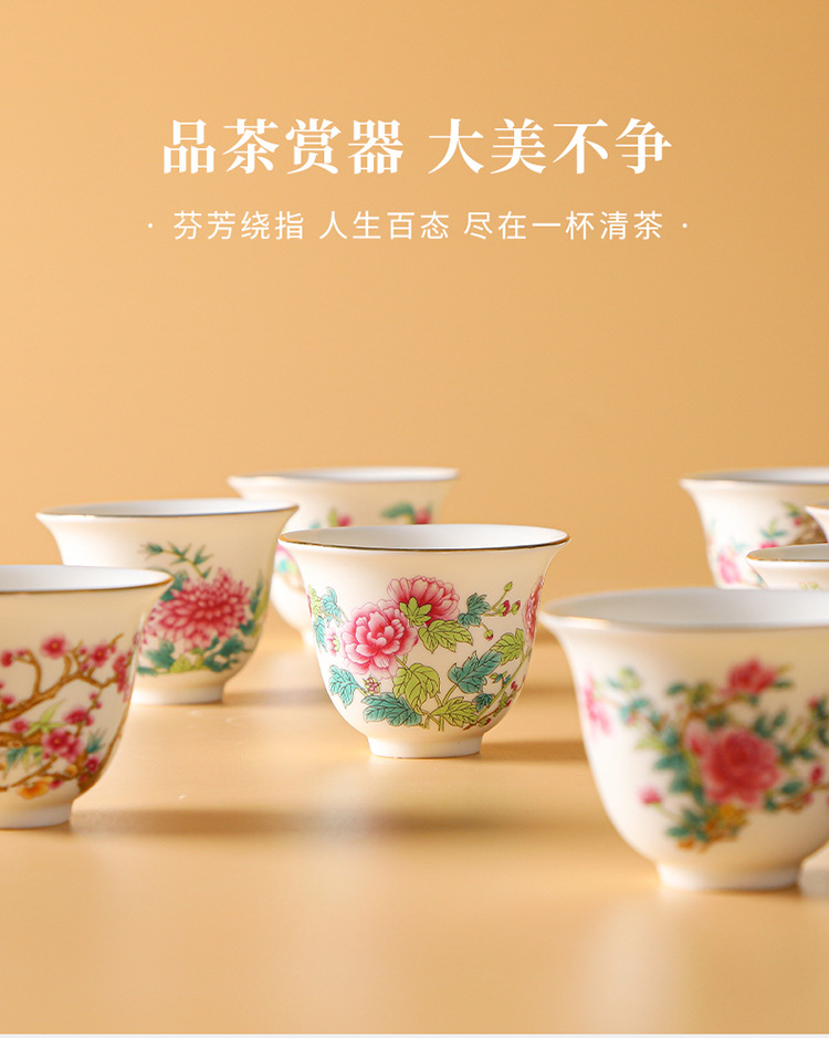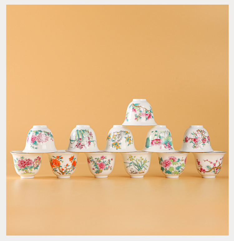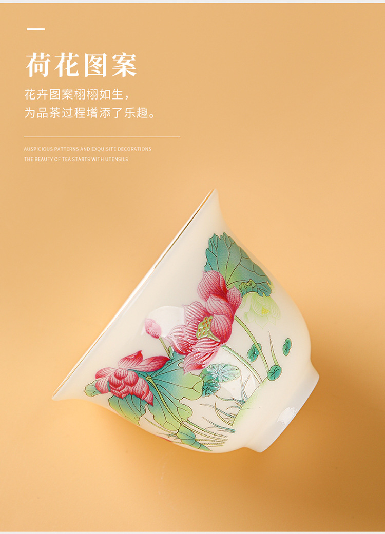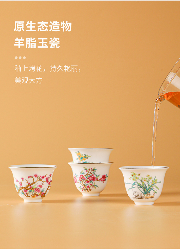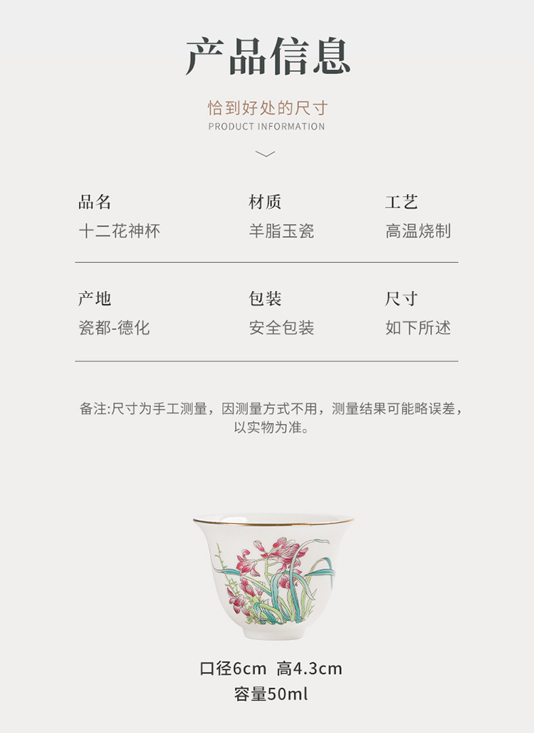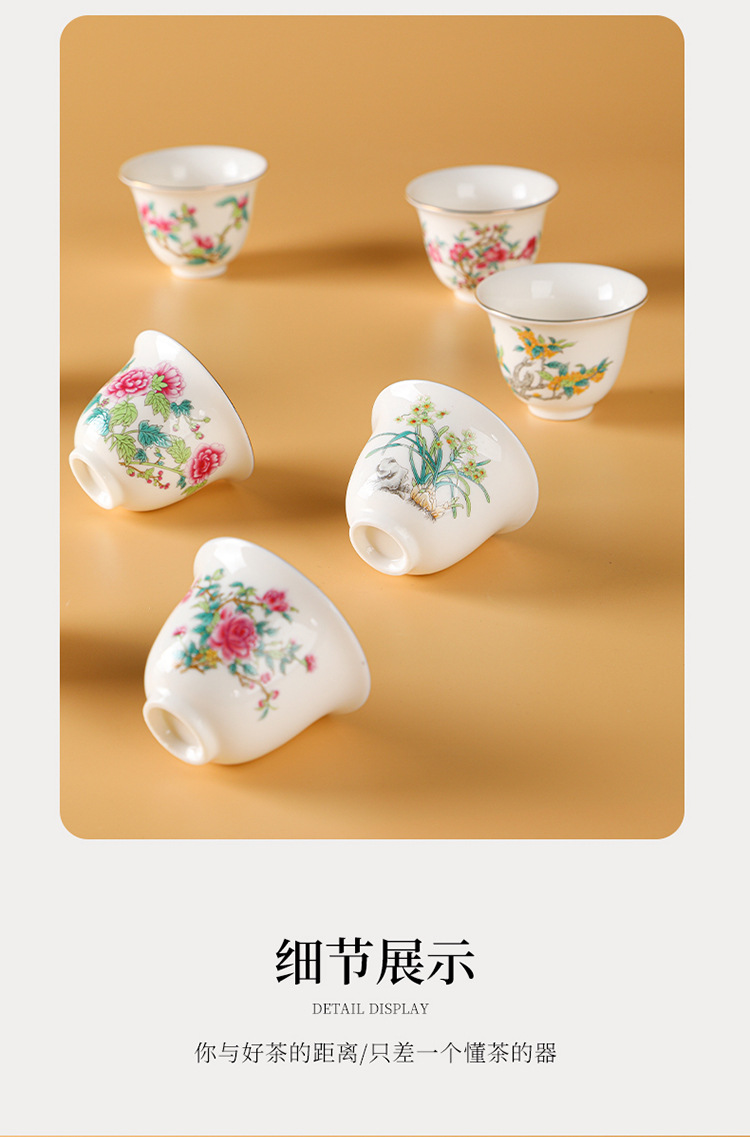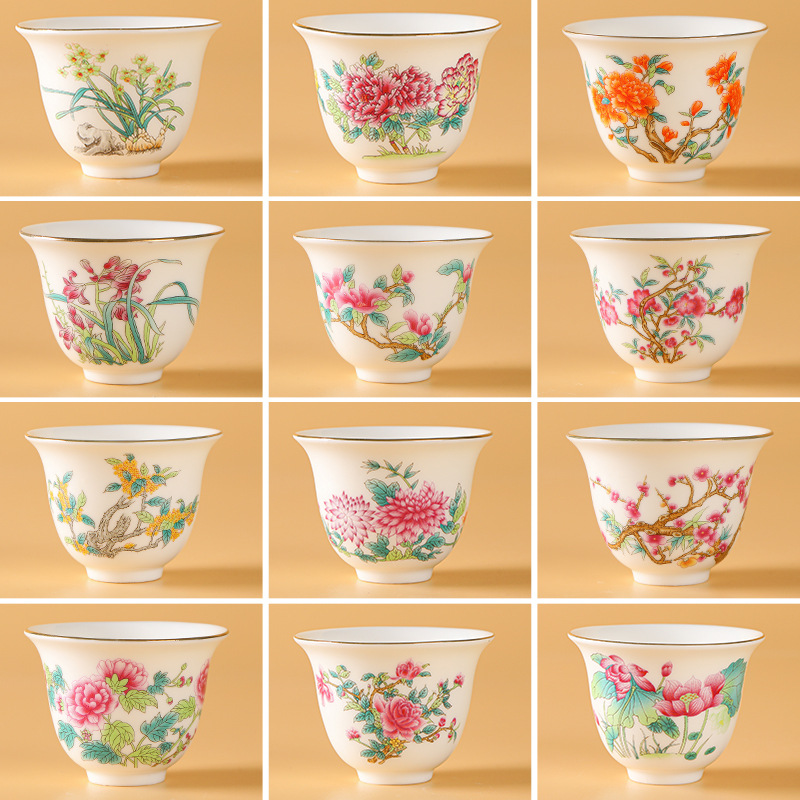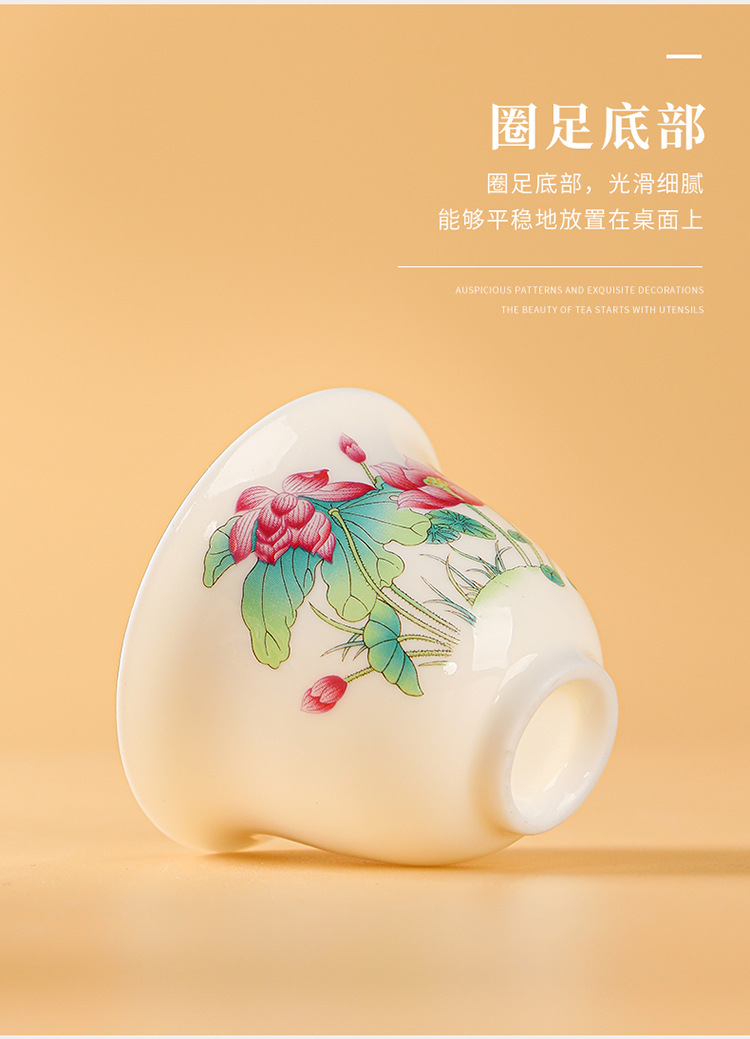양지옥백자 찻잔, 작은 찻잔, 12개의 꽃신 컵, 쿵푸 차 세트, 찻그릇, 찻잔, 개인용 싱글 컵