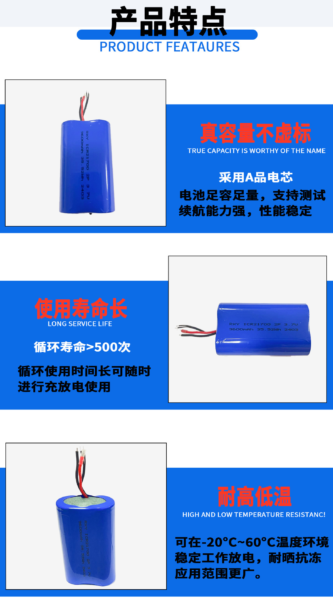 18500 리튬 배터리 2400mAh 전기 이발기 면도기 주스 컵 보조베터리 3.7V 배속 배터리