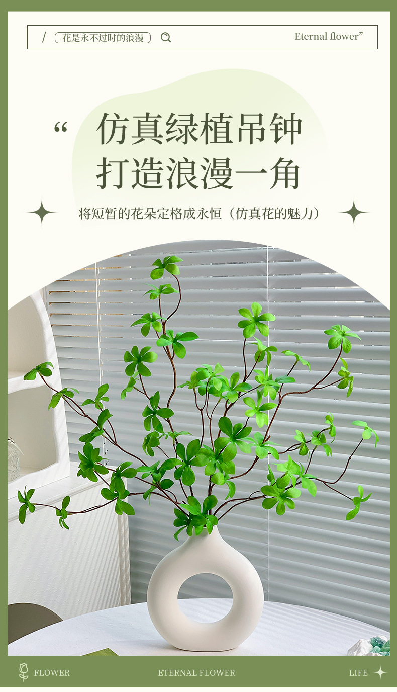 크림 스타일 시뮬레이션 녹색 식물 일본 벨 시계 말 마취 나무 잎 가짜 가지 시뮬레이션 꽃 가짜 꽃 거실 장식 꽃 장식품