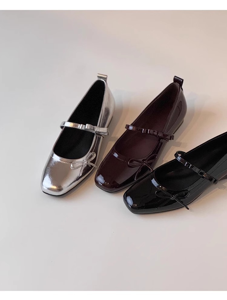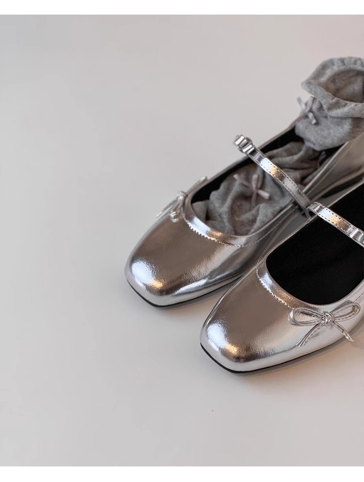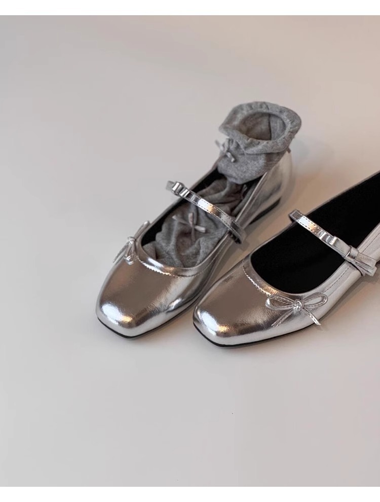 많은 재고! 정품 가죽 프렌치 플랫 활 얕은 입 신발 여성의 새 실버 메리 제인 이브닝 슈즈