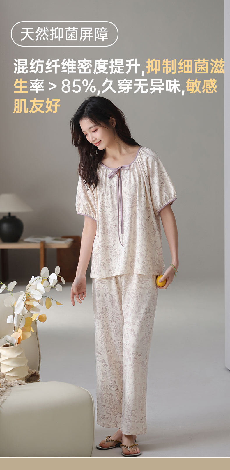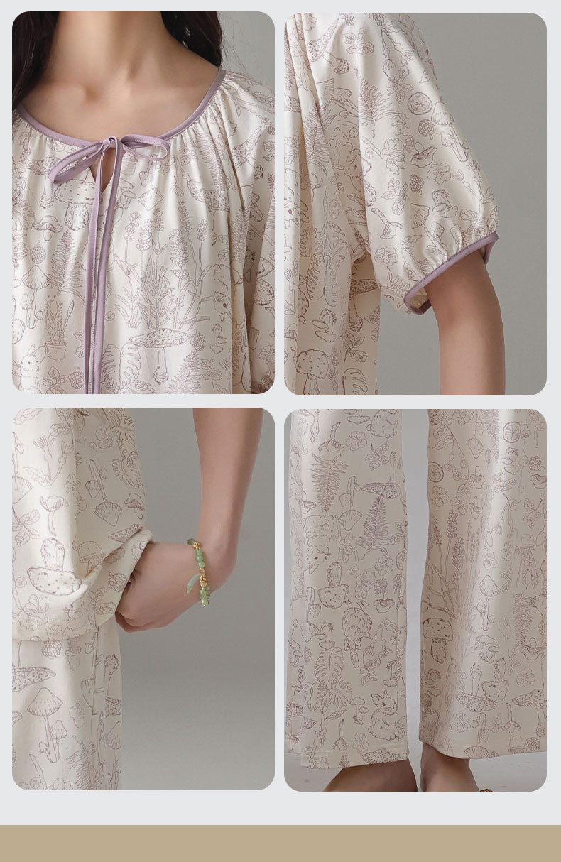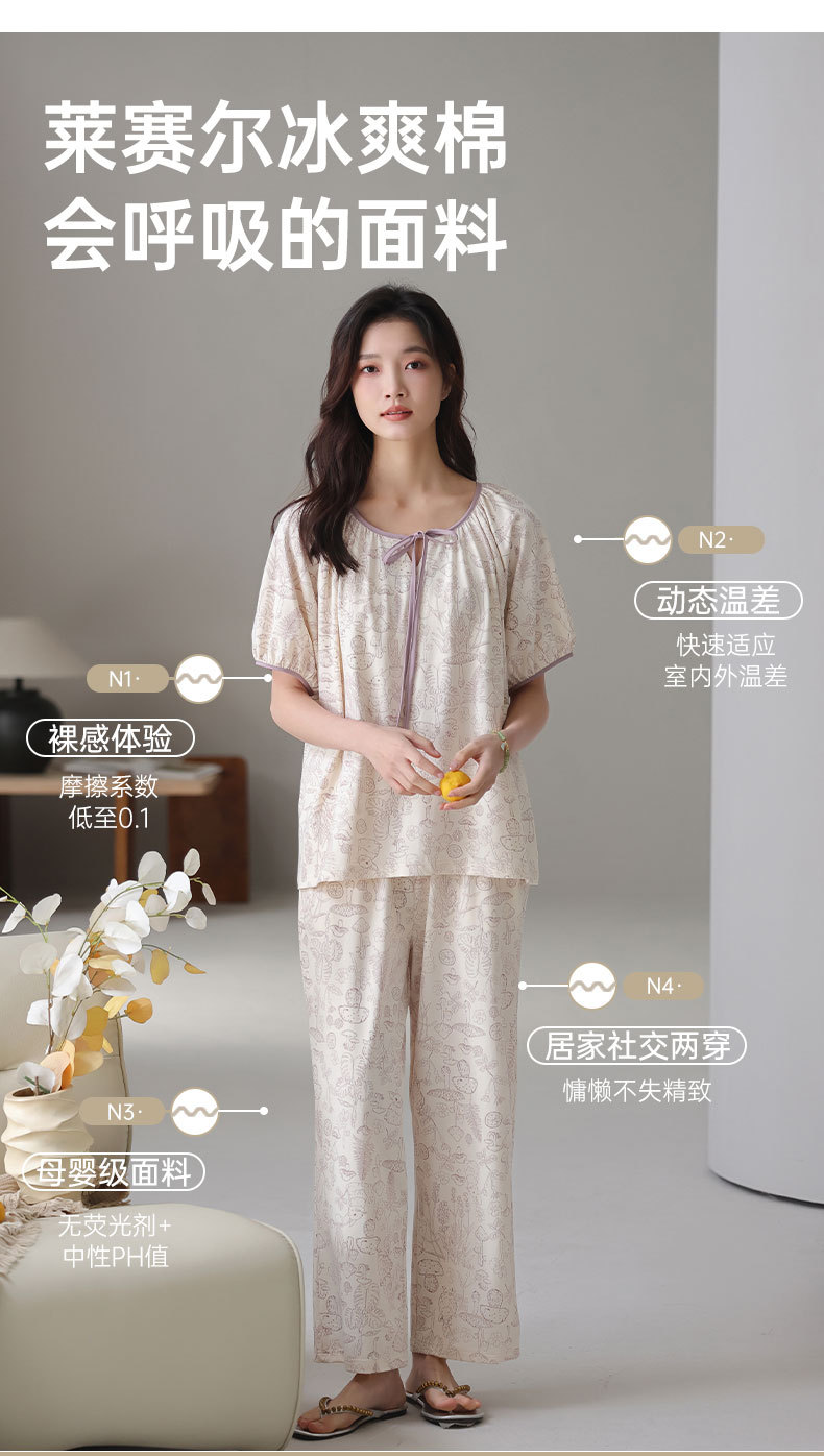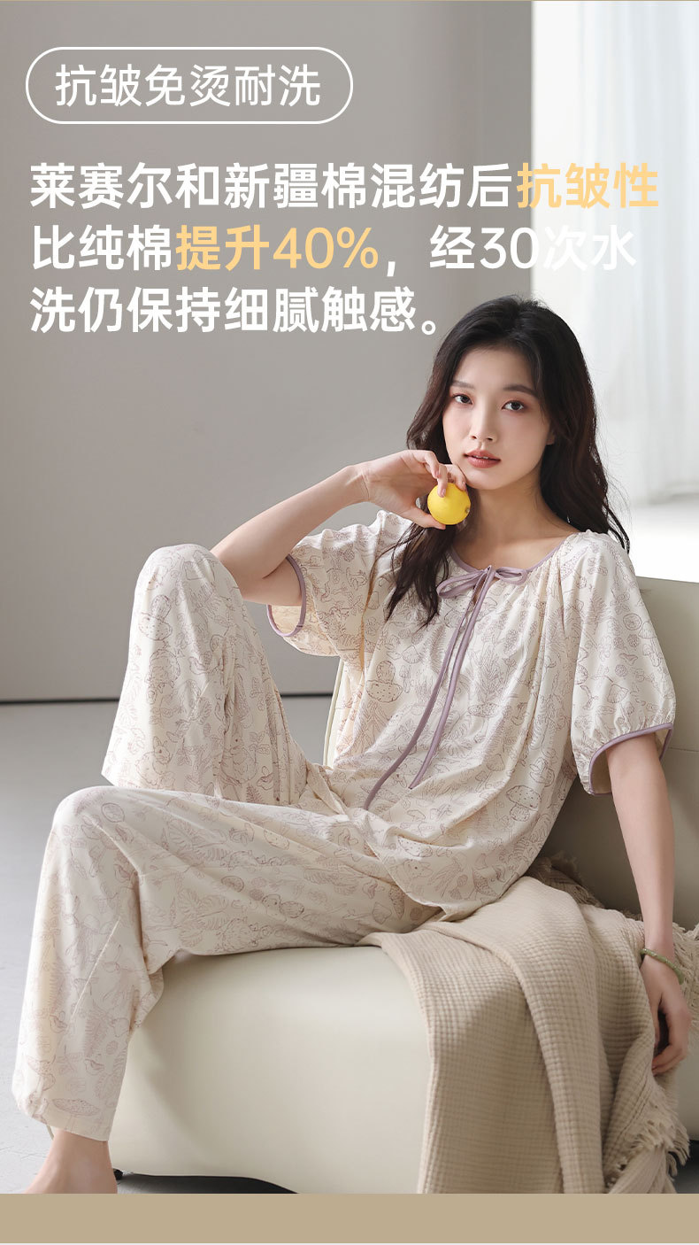 레이셀 잠옷 여성 여름 신상 달콤한 꽃무늬 부드럽고 편안한 반팔 긴바지 외출복 홈웨어 세트