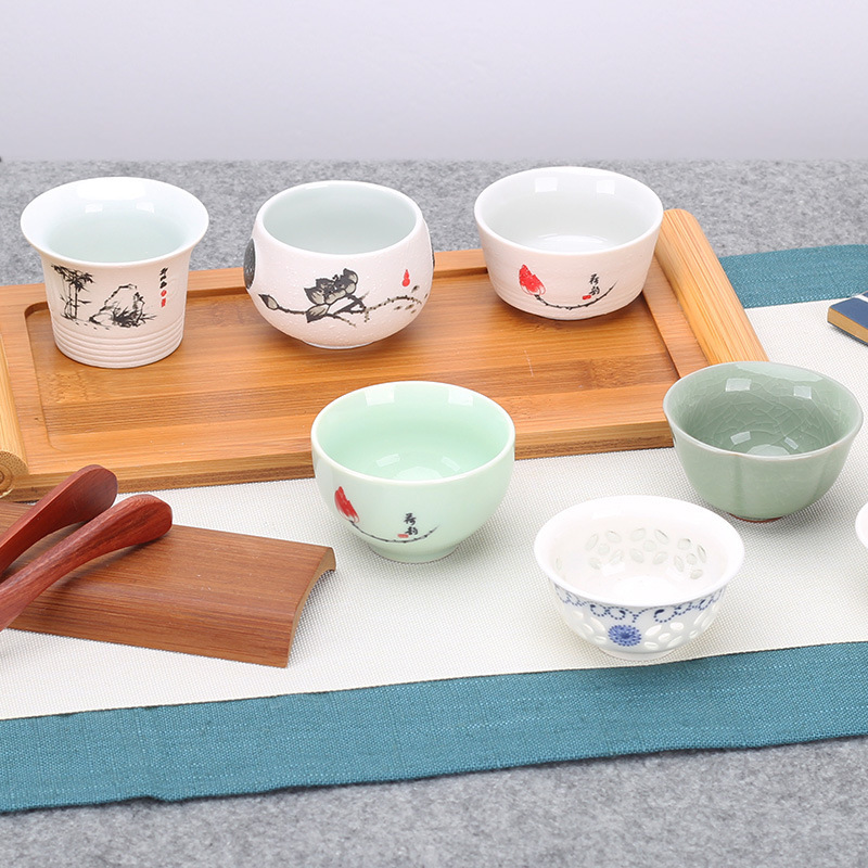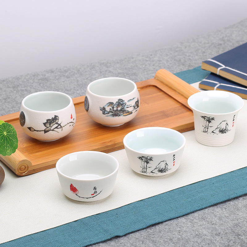 세라믹 쿵푸 작은 찻잔 세트, 가정용 찻잔, 단일 차 세트, 보라색 모래 눈송이 차 세트, 마스터 컵, 청자
