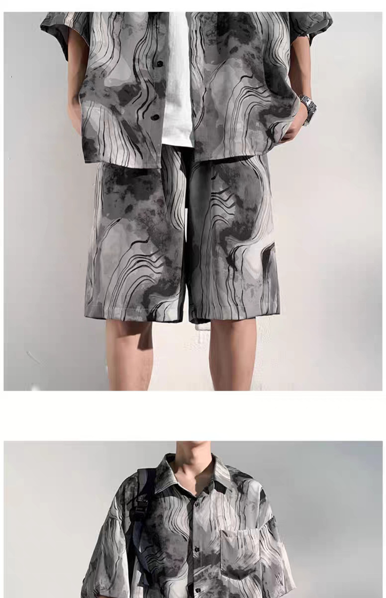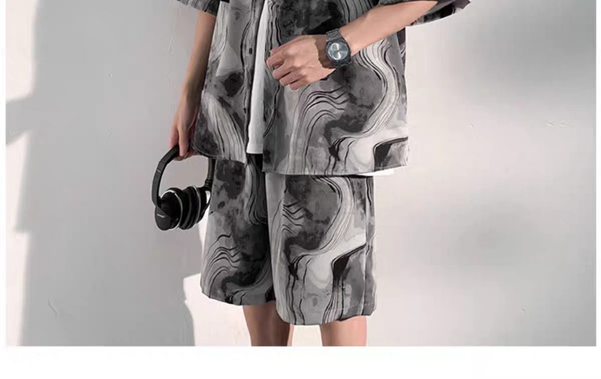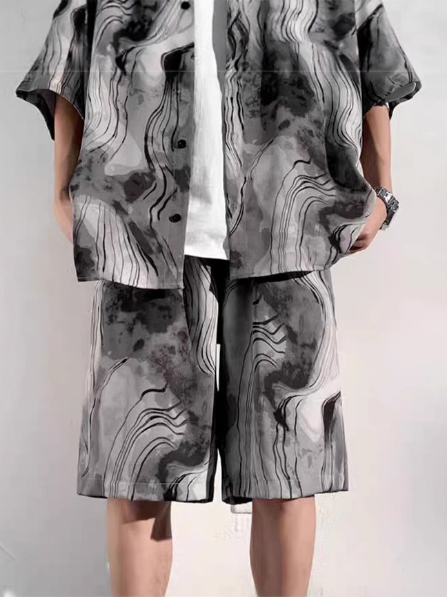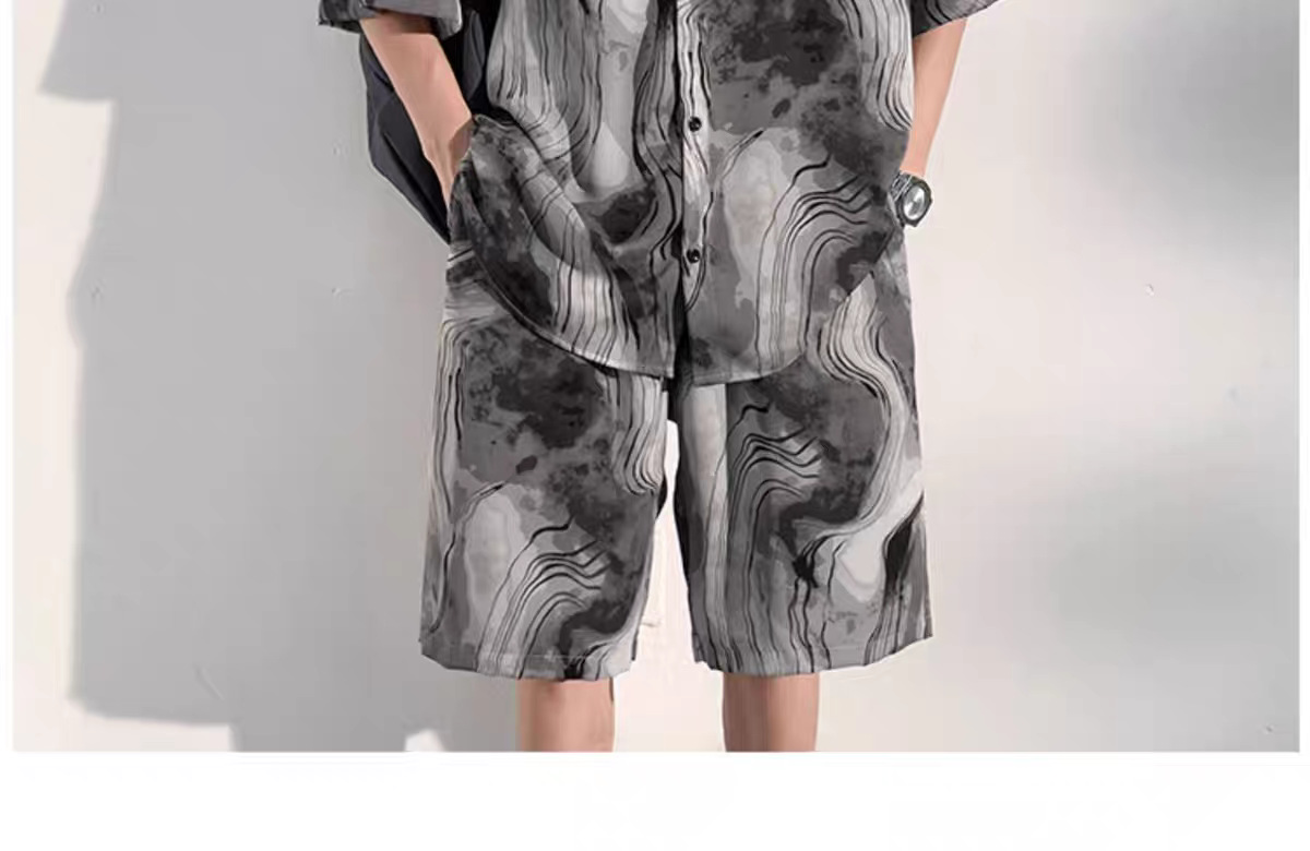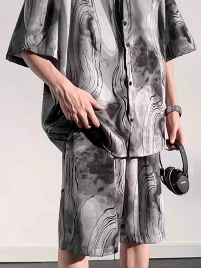 중국 스타일 비치 슈트 남성 여름 얇은 대형 슈트 캐주얼 남성 고급 반팔 셔츠 반바지 여름 슈트