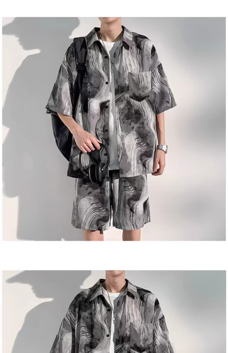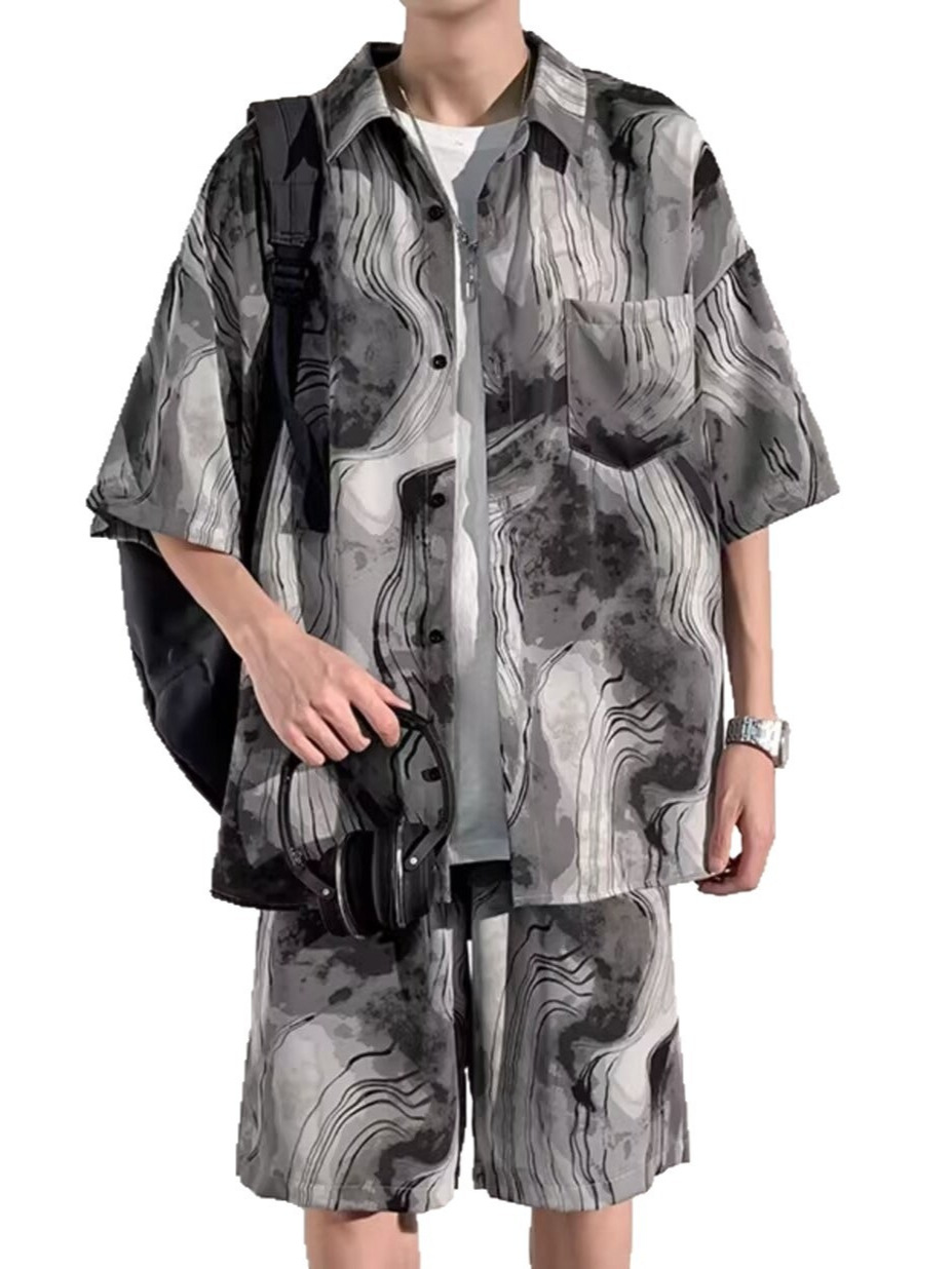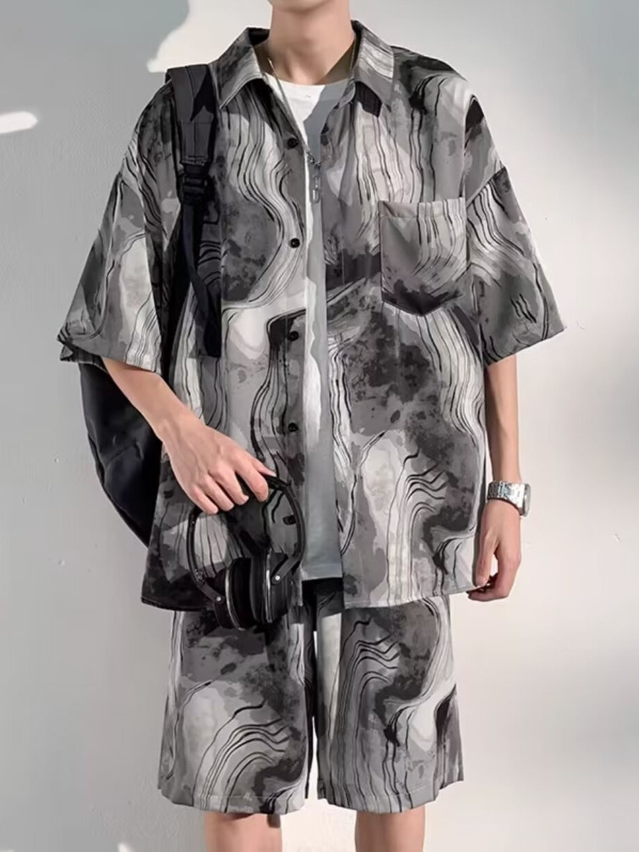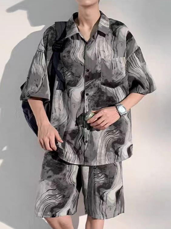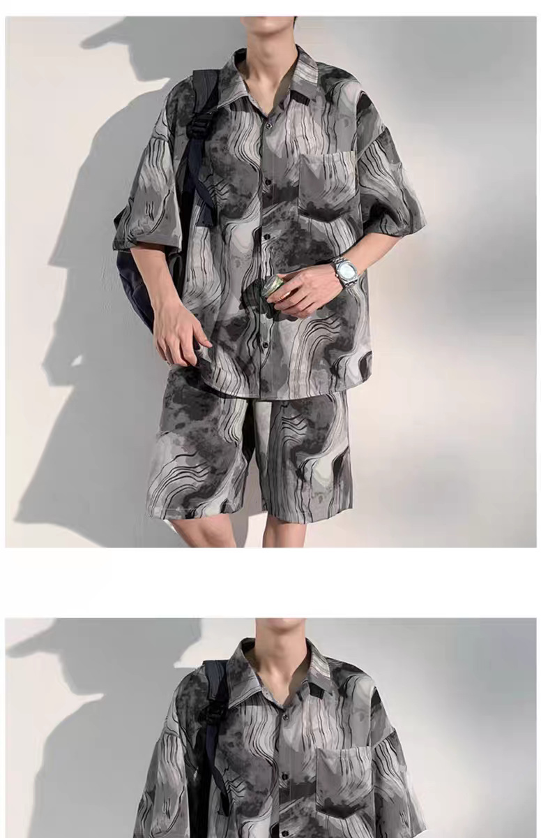 중국 스타일 비치 슈트 남성 여름 얇은 대형 슈트 캐주얼 남성 고급 반팔 셔츠 반바지 여름 슈트