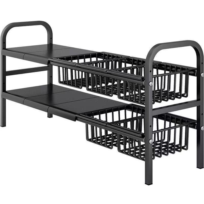 클래식 블랙 [더블 레이어 3 보드 3 바구니] 접이식 수납