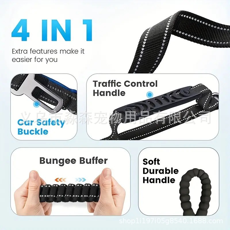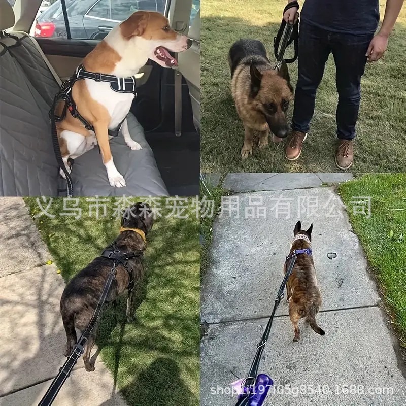 애완동물 용품, 개 산책용 끈, 대형견 끈, 탄성 버퍼, 방폭형 다기능 개 가죽끈