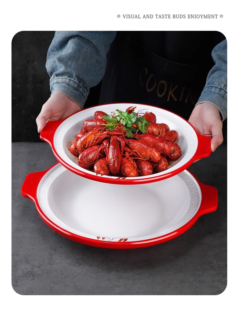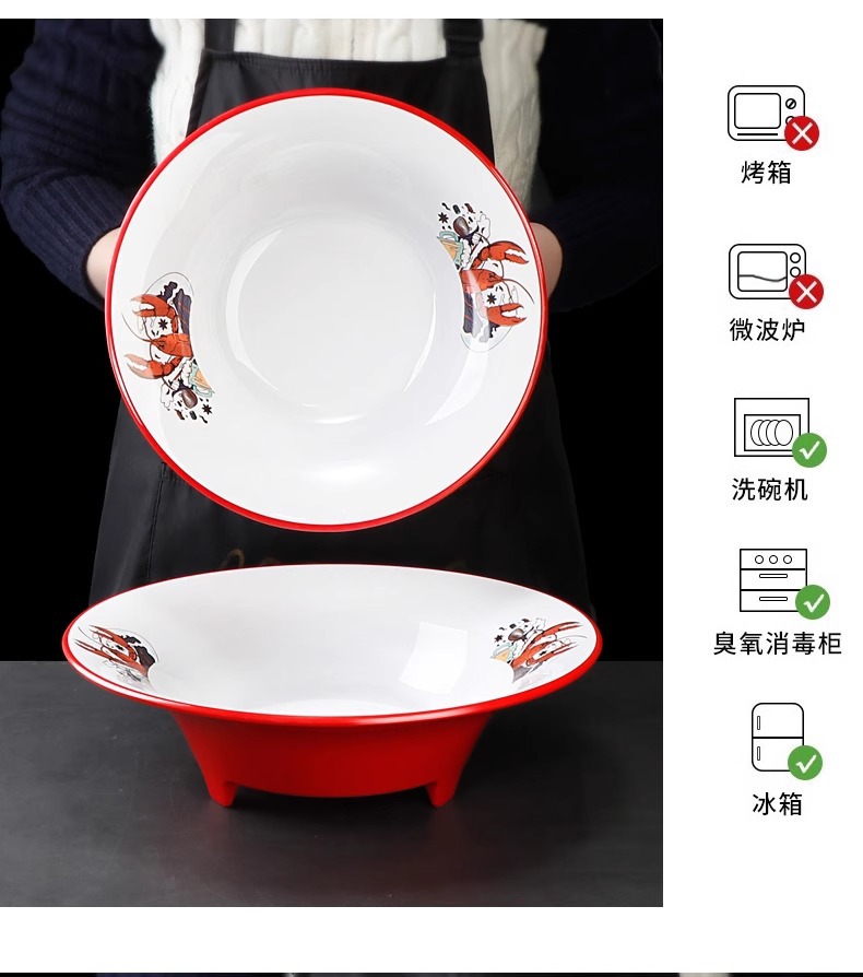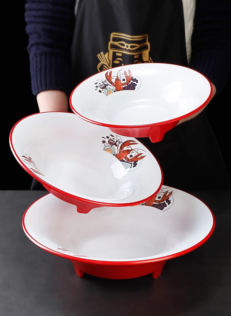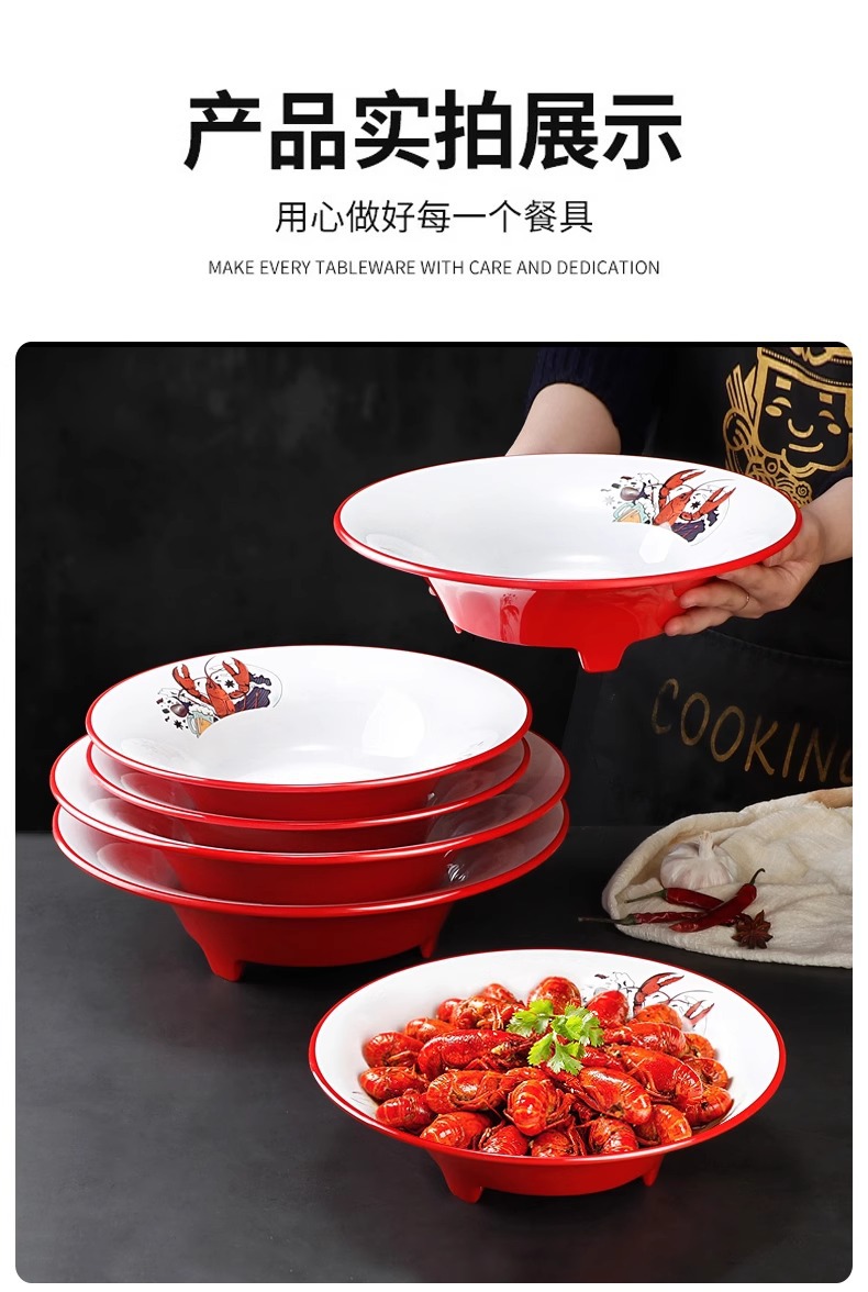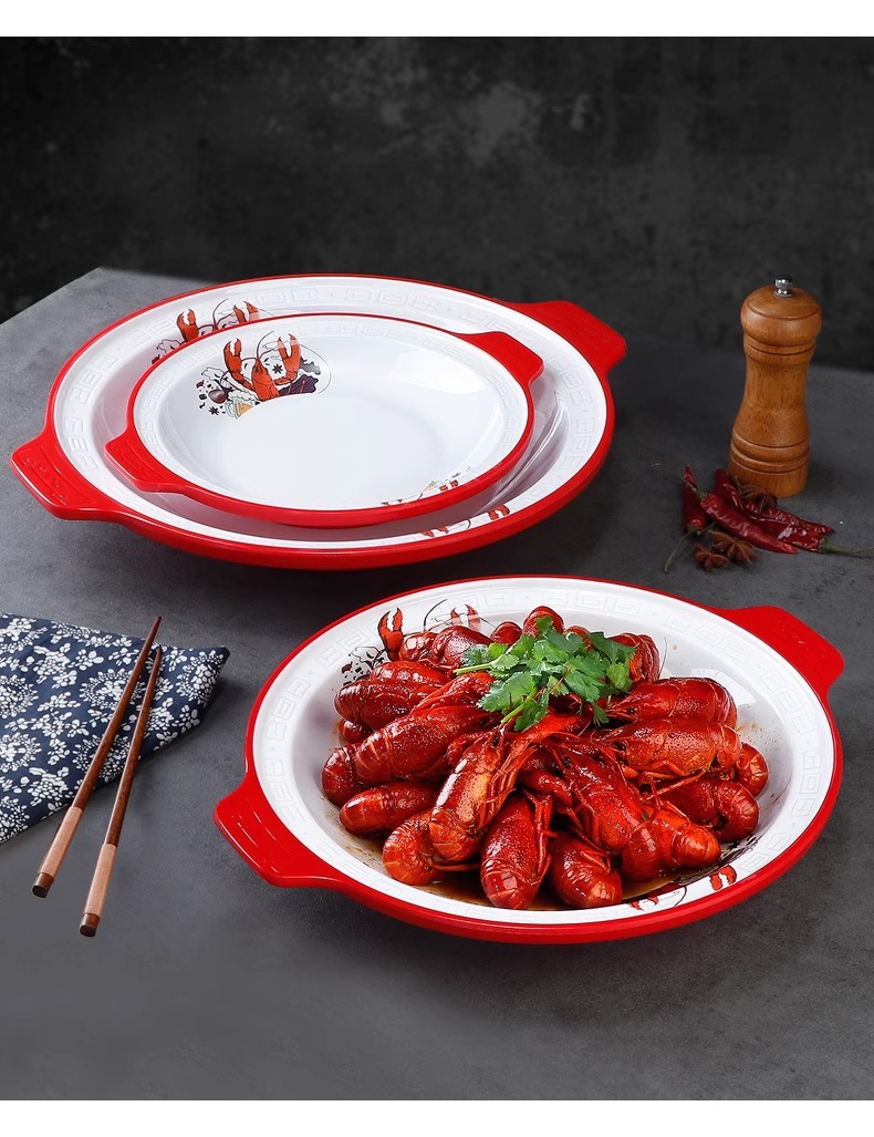 멜라민 가재 접시 상업용 창의적인 양이 큰 접시 모조 도자기 매운 냄비 삶은 고기 조각 피클 피쉬 그릇