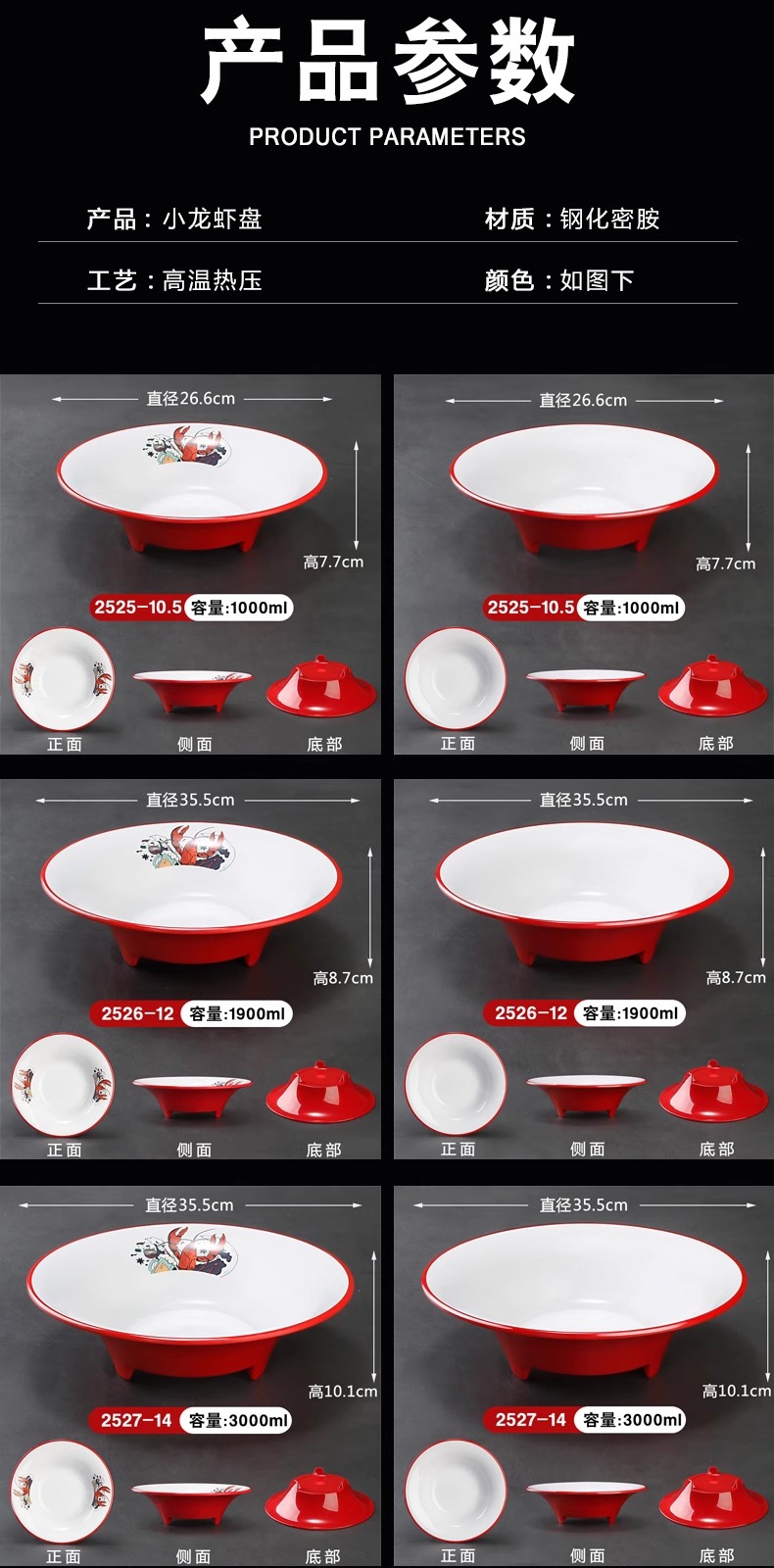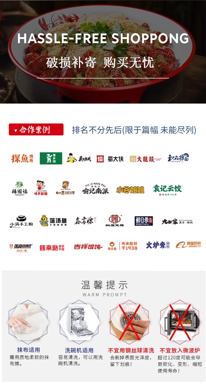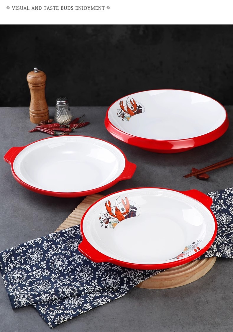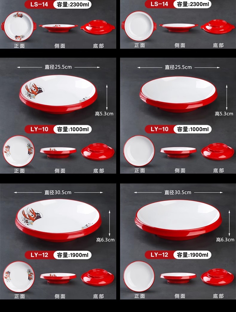멜라민 가재 접시 상업용 창의적인 양이 큰 접시 모조 도자기 매운 냄비 삶은 고기 조각 피클 피쉬 그릇