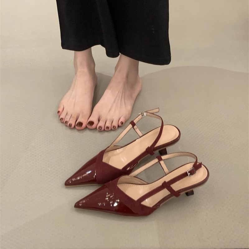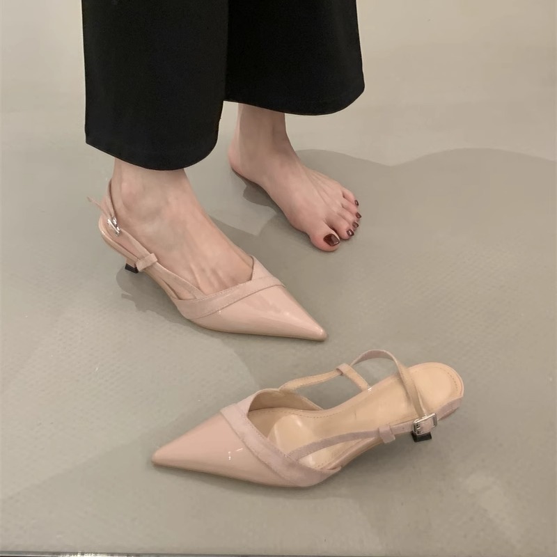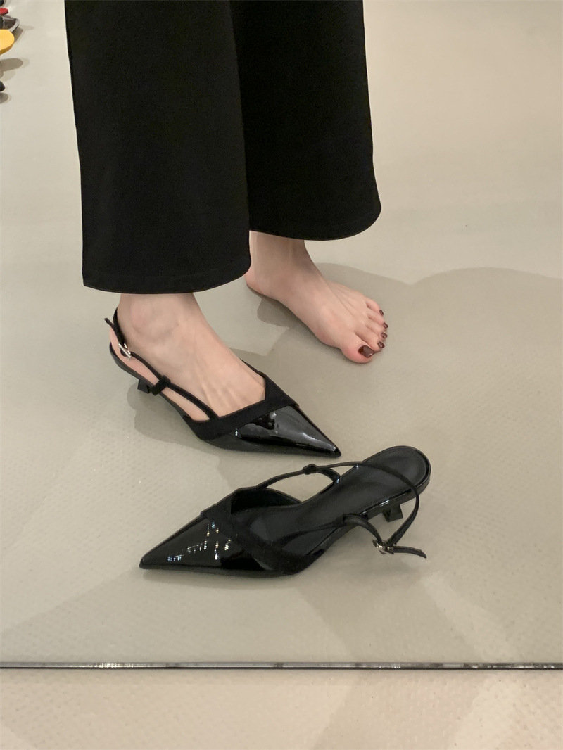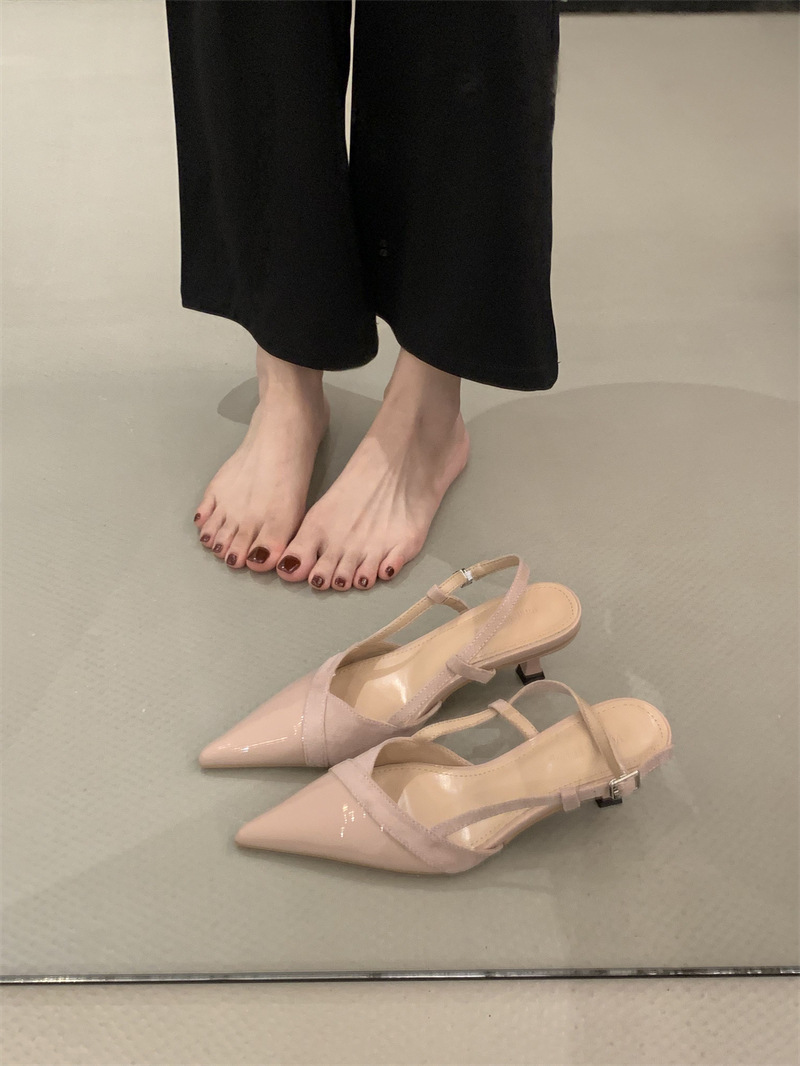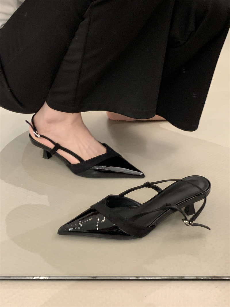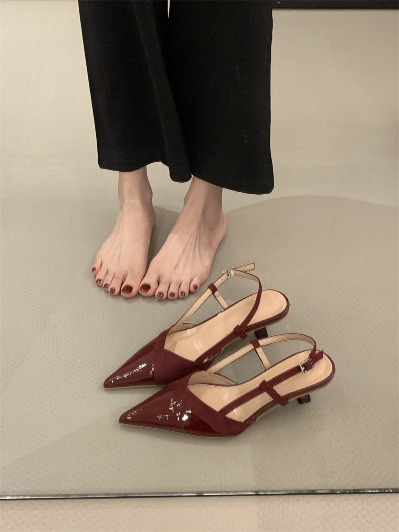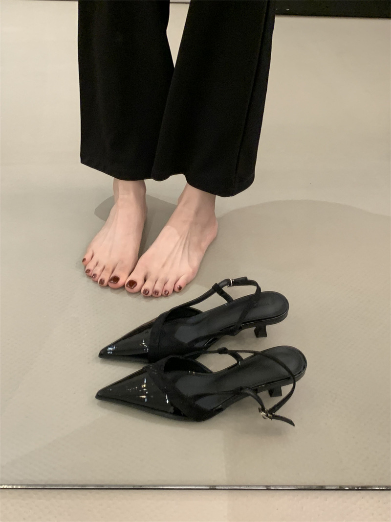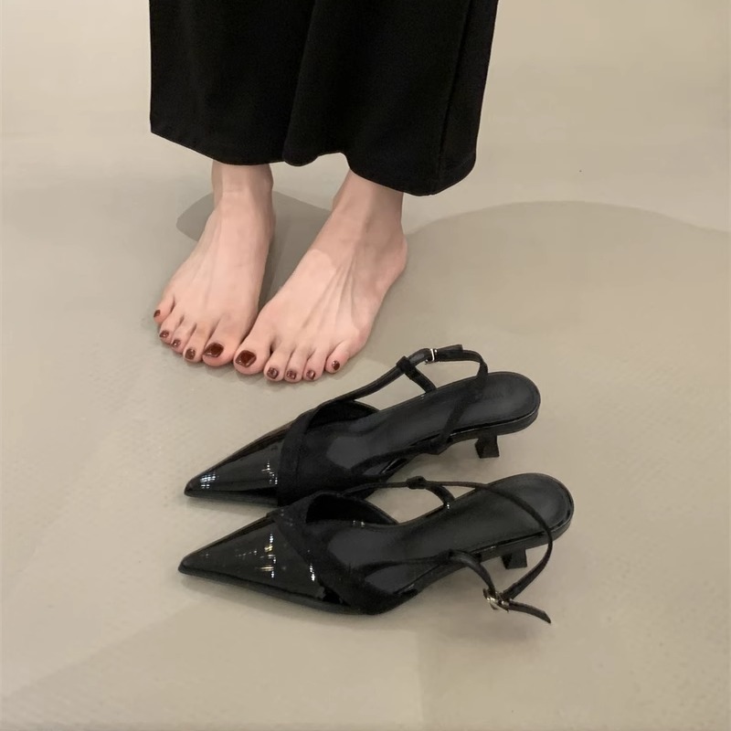 여성을위한 프렌치 페이턴트 가죽 발가락 샌들 2025 여름 새로운 스타일 다목적 스틸레토 힐 뾰족한 버클 스트랩 우아한 하이힐