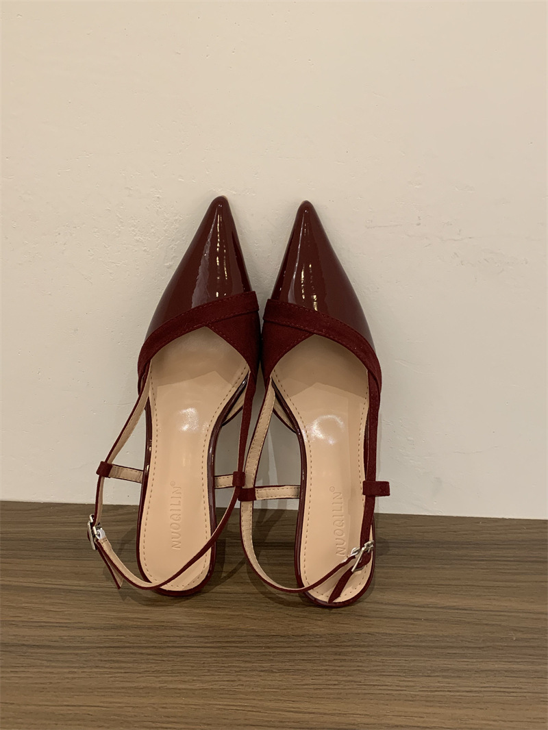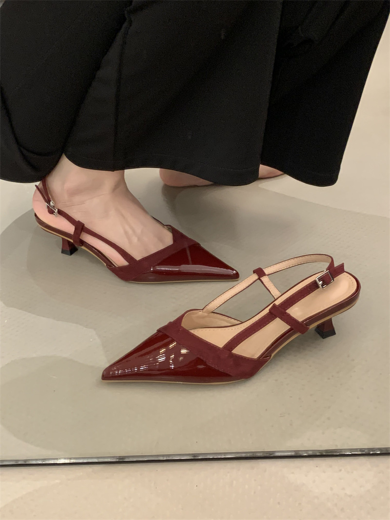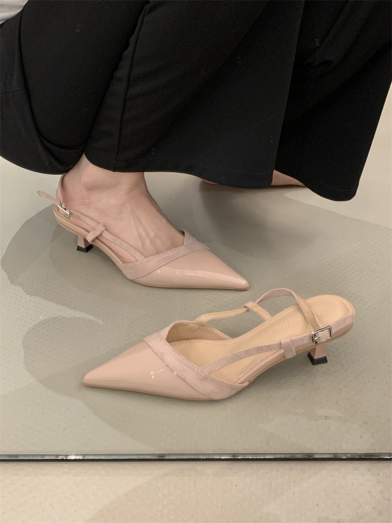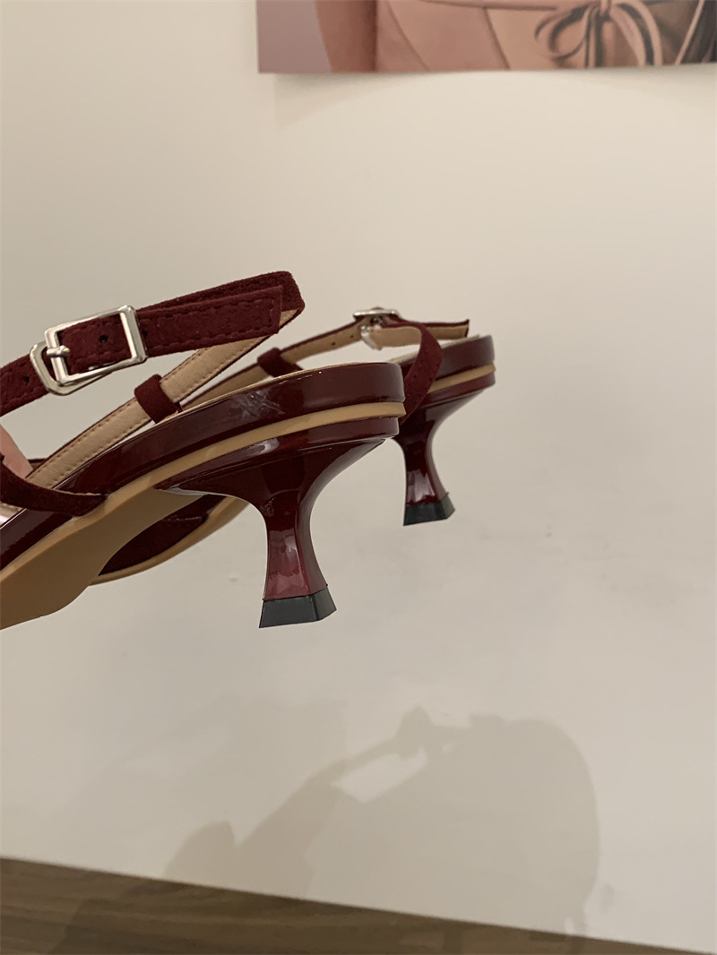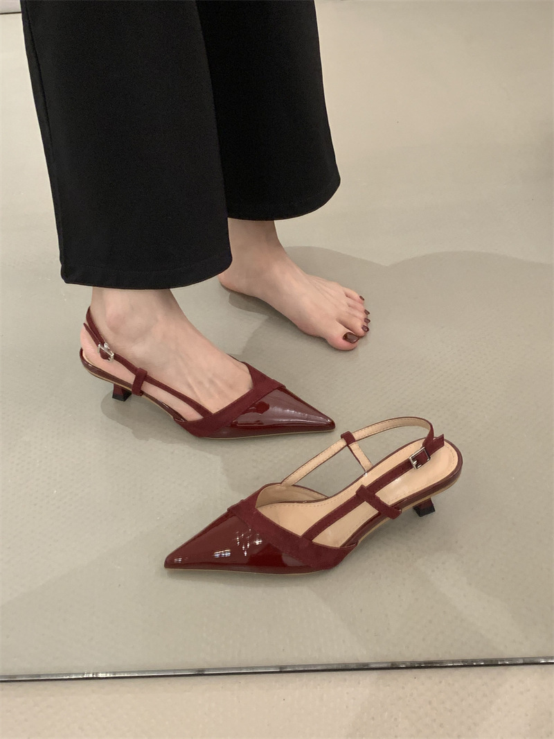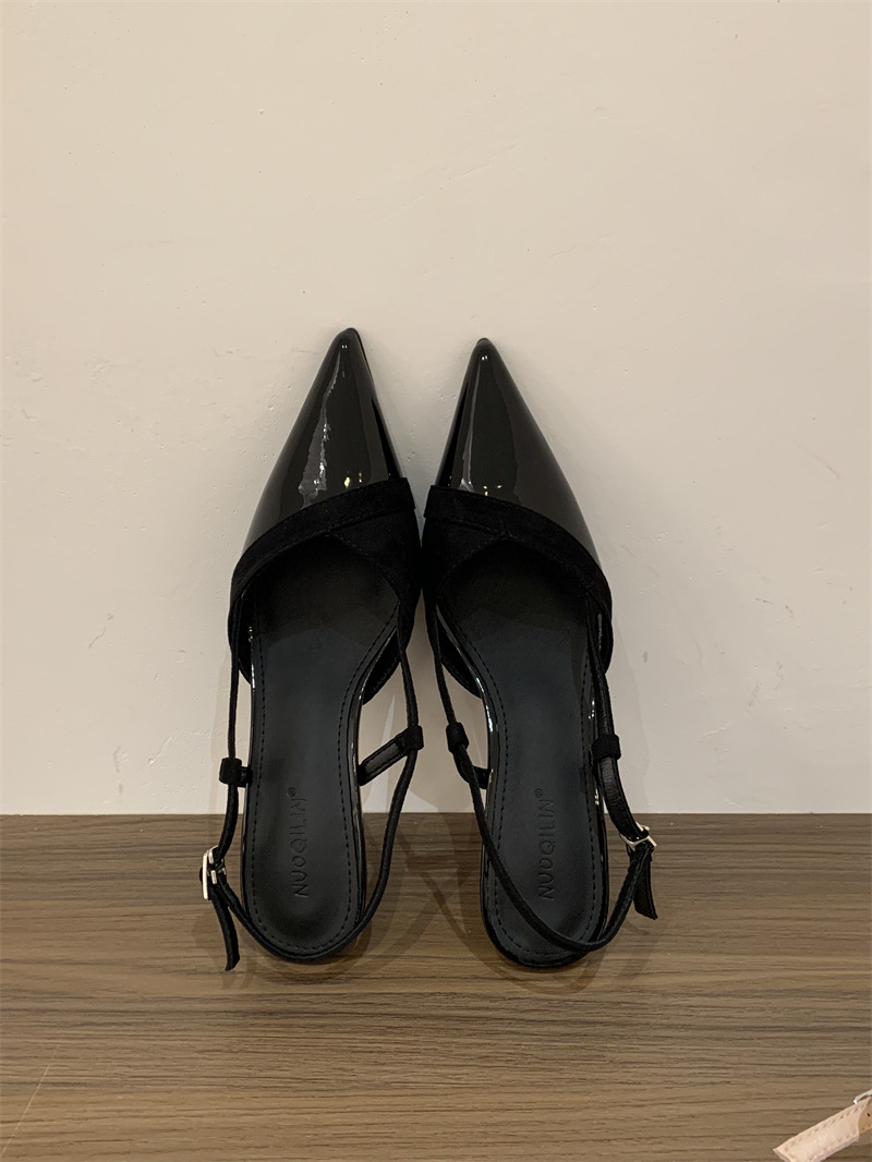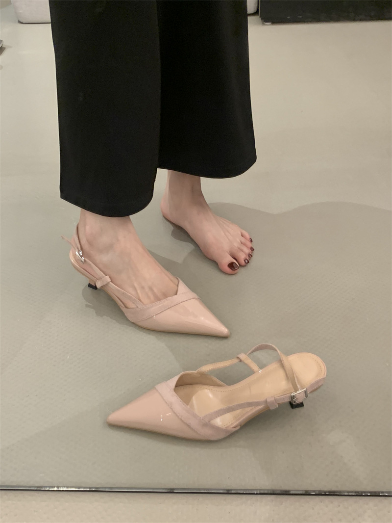 여성을위한 프렌치 페이턴트 가죽 발가락 샌들 2025 여름 새로운 스타일 다목적 스틸레토 힐 뾰족한 버클 스트랩 우아한 하이힐