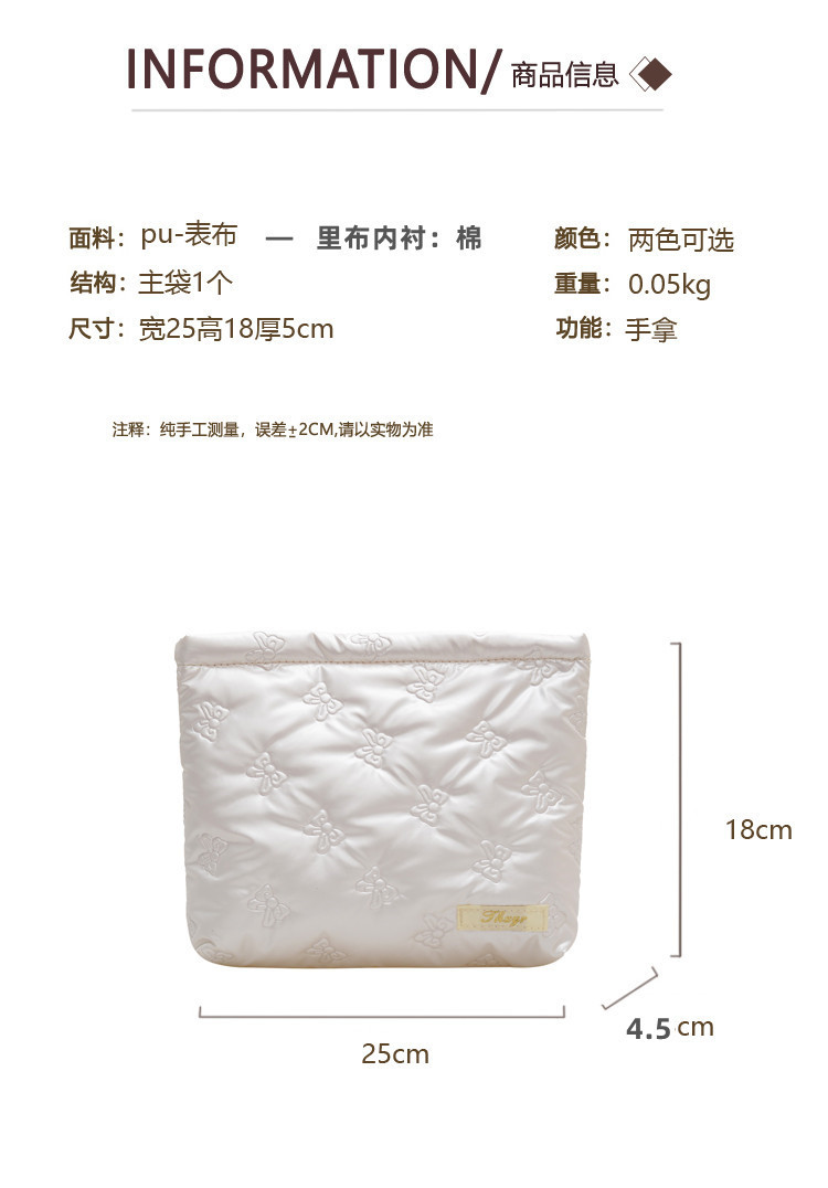 한국식 퀼트 PU 나비 클러치 화장품 가방 스킨 케어 코인 지갑 라이너 다기능 저장 가방 대용량