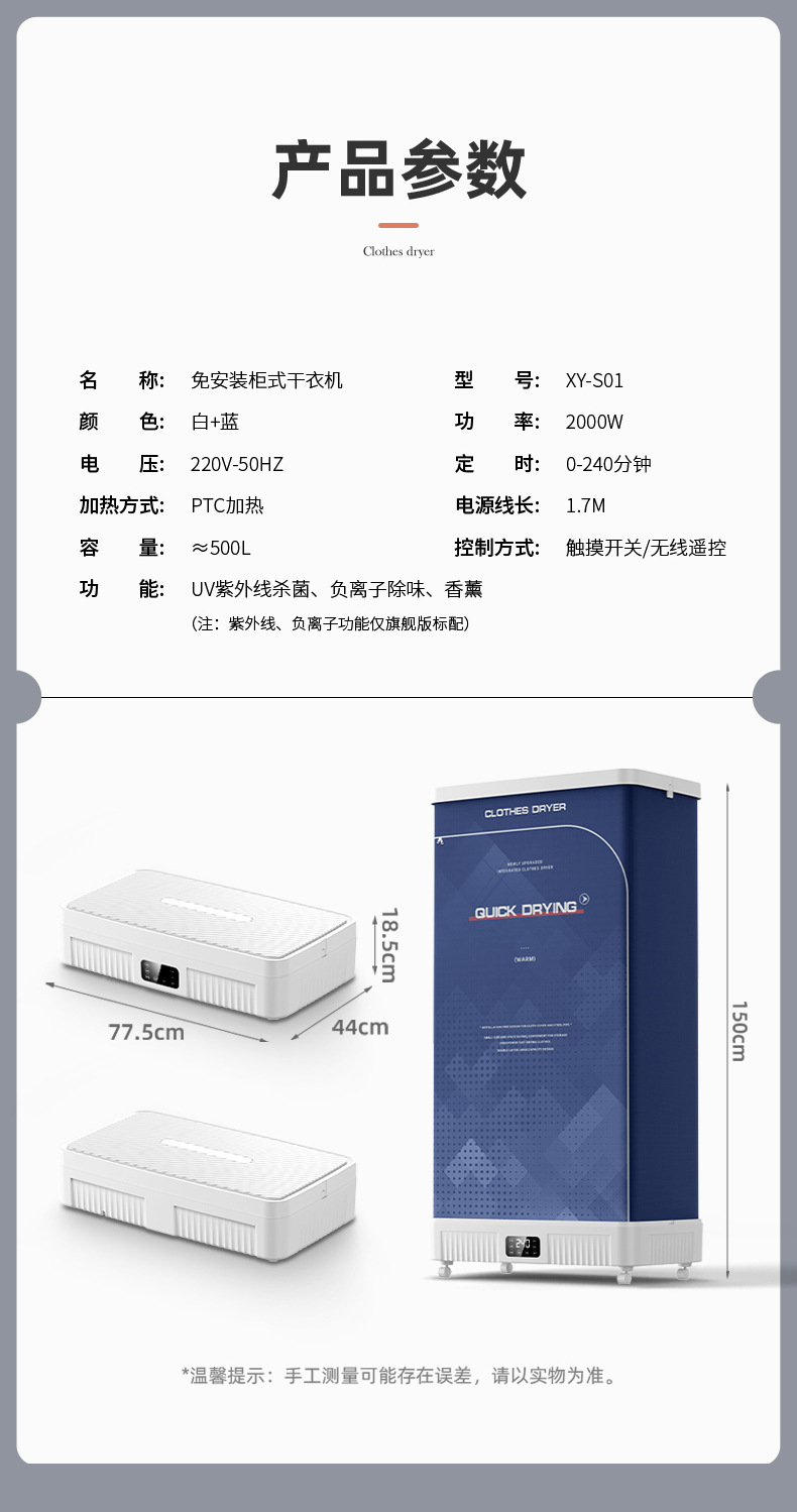 干衣柜长宽高:2层(77.5cm*44cm*150cm)