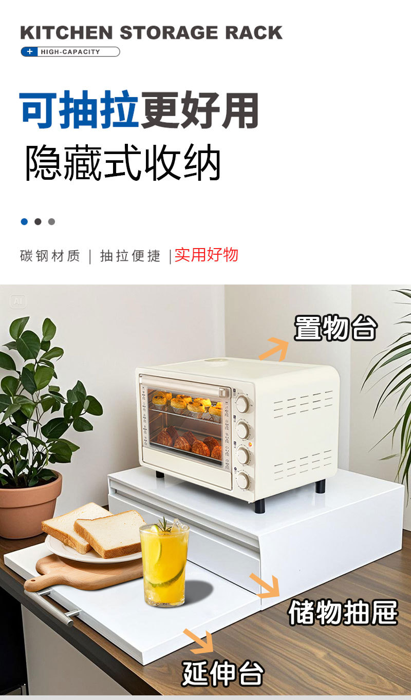 새로운 다기능 바닥 장착형 보관 캐비닛 주방 보관 랙 개폐식 이중층 전자 레인지 보관 랙 도매