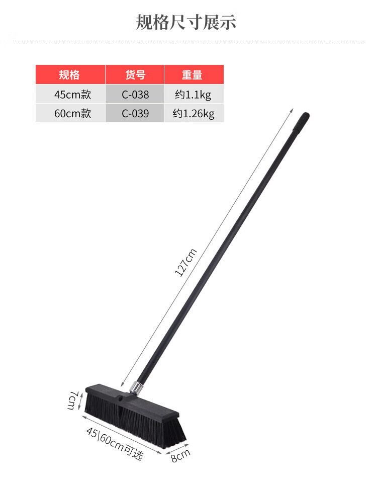 Chaobao 긴 손잡이 바닥 브러시 대형 단단한 강모 브러시 타일 브러시 부동산 청소 브러시 야외 브러시