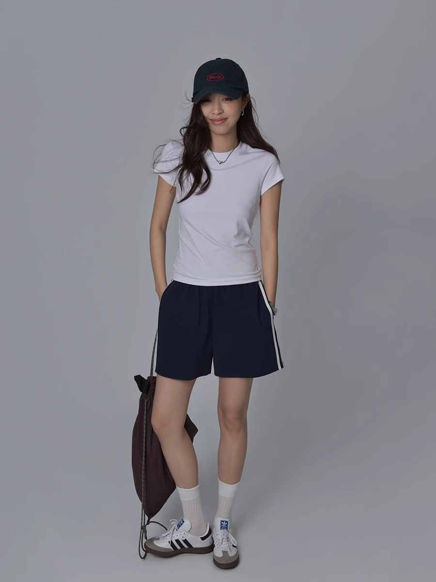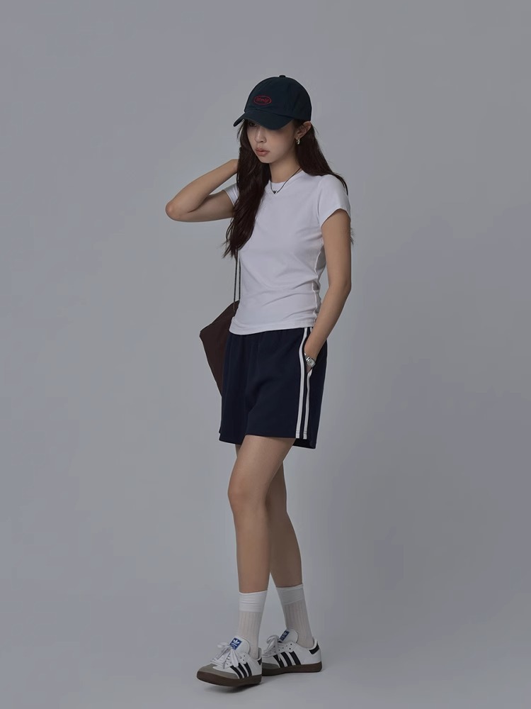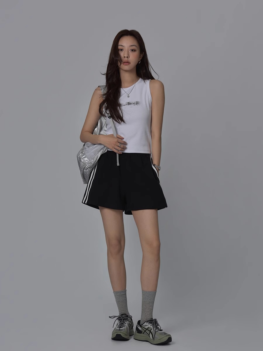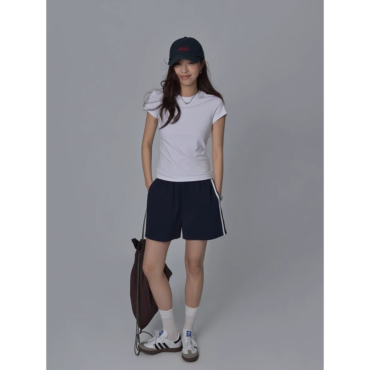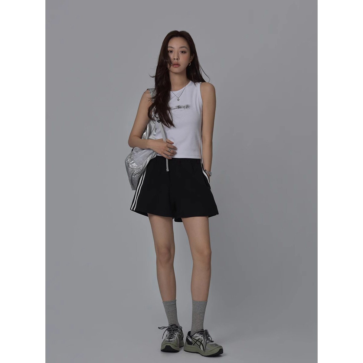 3291 # SIXI 한국 여성 스트레이트 레그 스트라이프 캐주얼 스포츠 반바지 시즌 패셔너블 5부 바지 스웨트팬츠