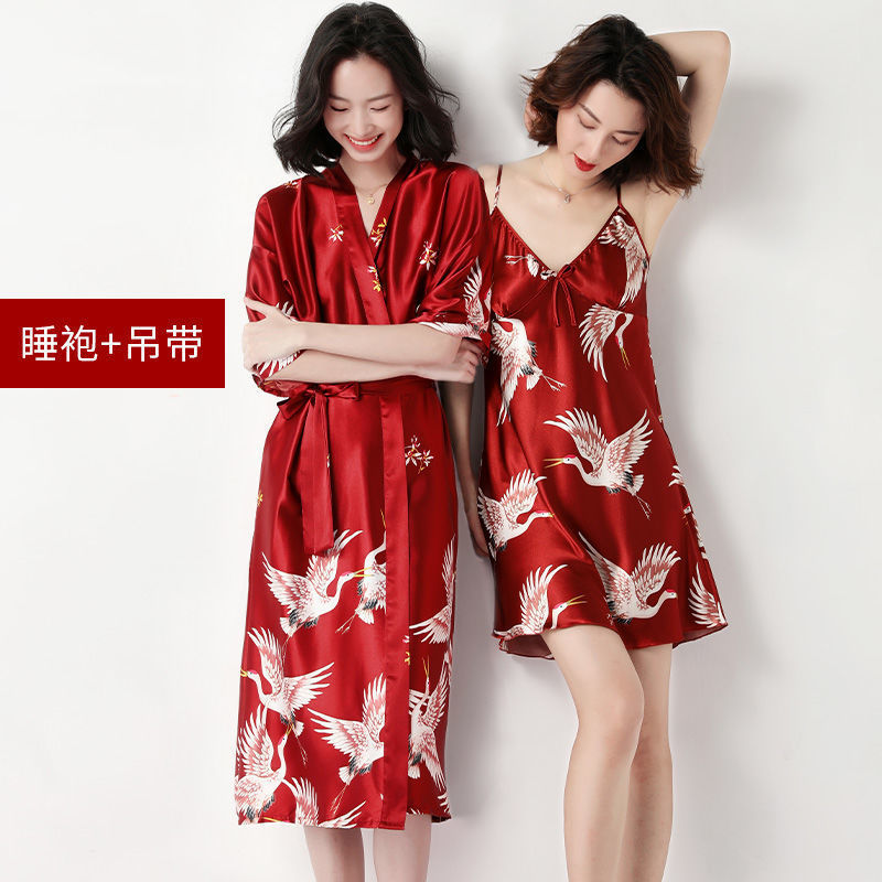 여름 여성 잠옷, 신부 들러리 서스펜더 투피스 수트, 목욕 가운, 플러스 사이즈 커플 실크 드레싱 가운, 새로운 중국 스타일
