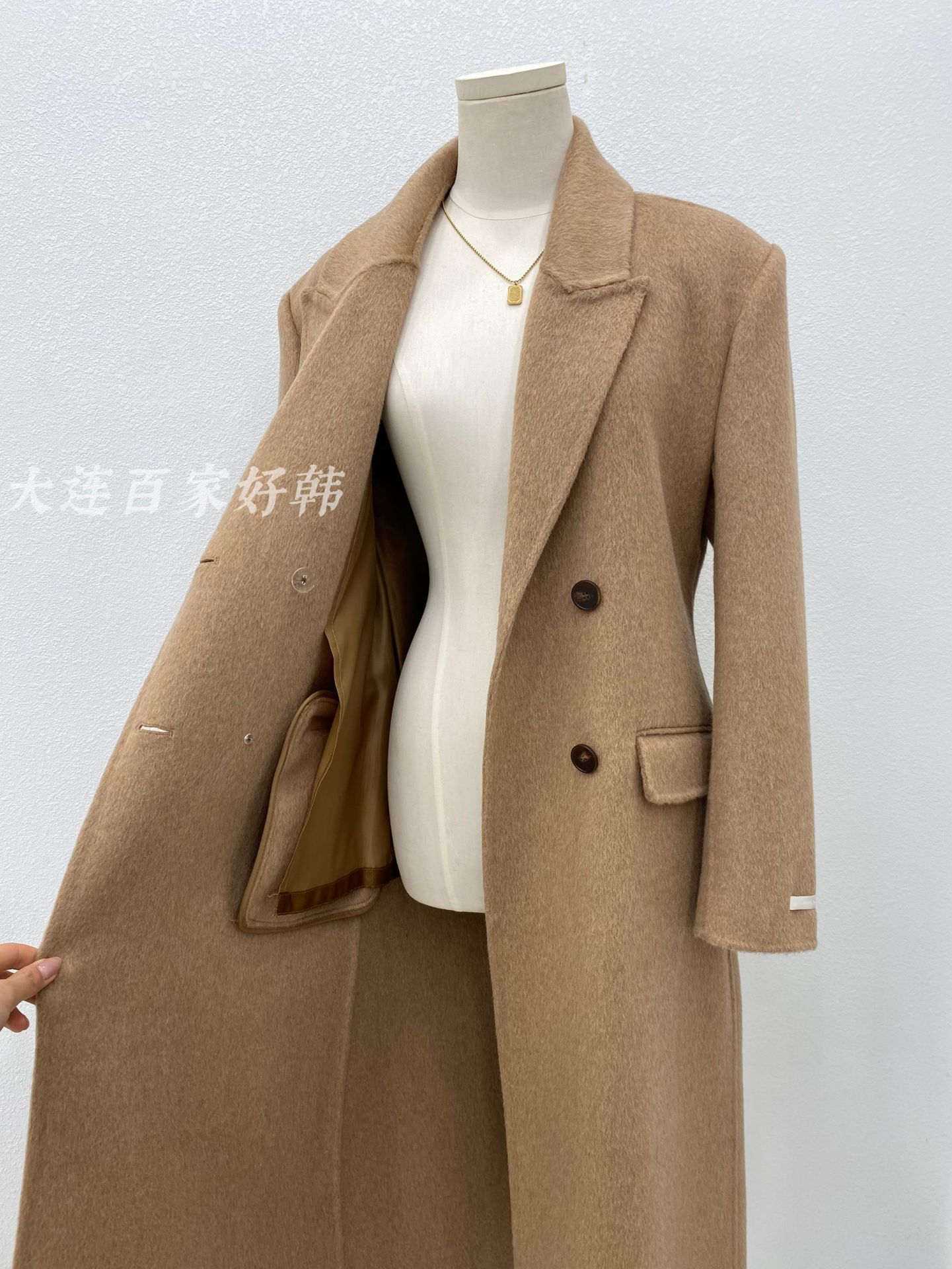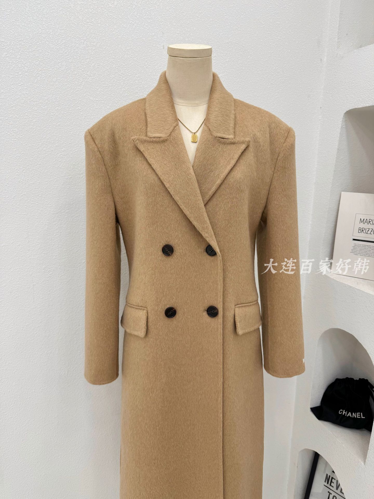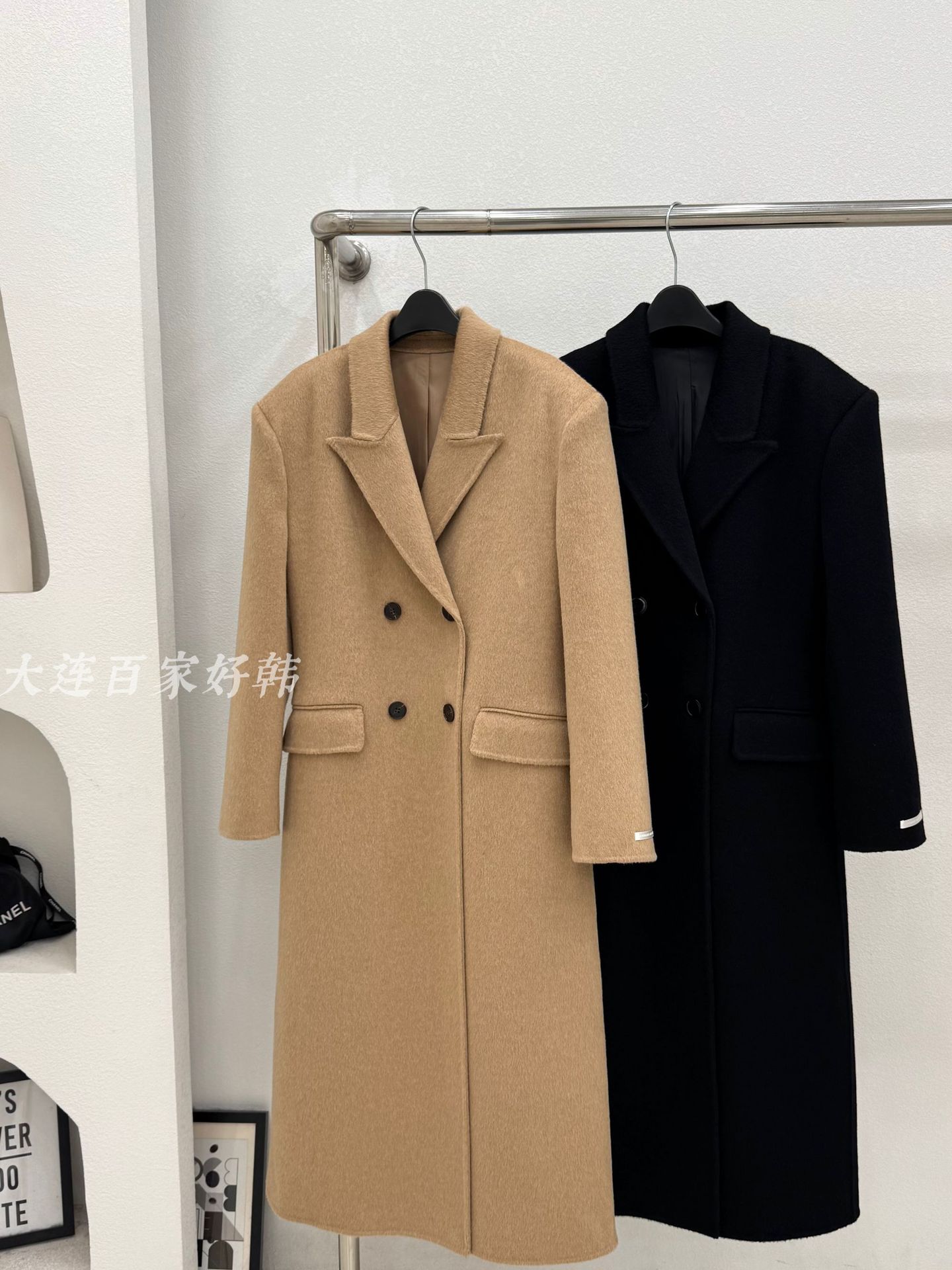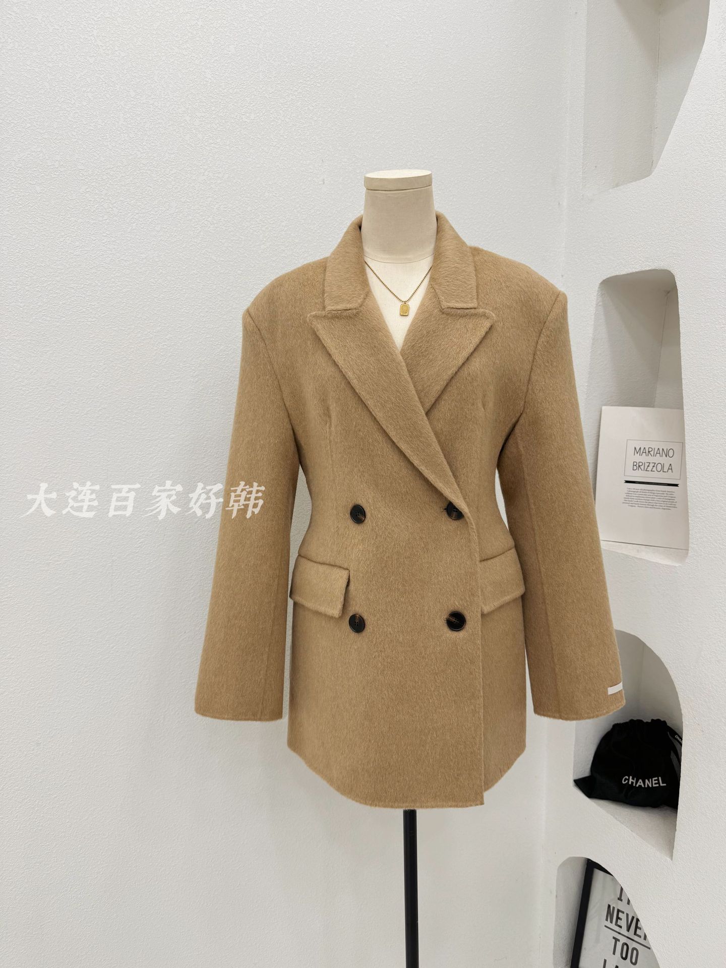 모래시계 허리 슈트 양면 울 코트 카멜 블랙 오른쪽 어깨 패딩 슈트 재킷 가을 겨울 신스타일