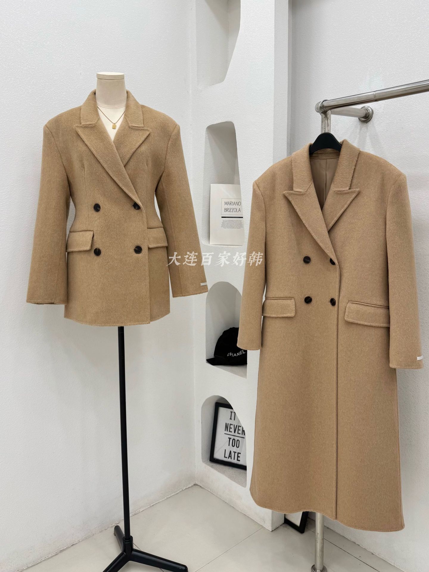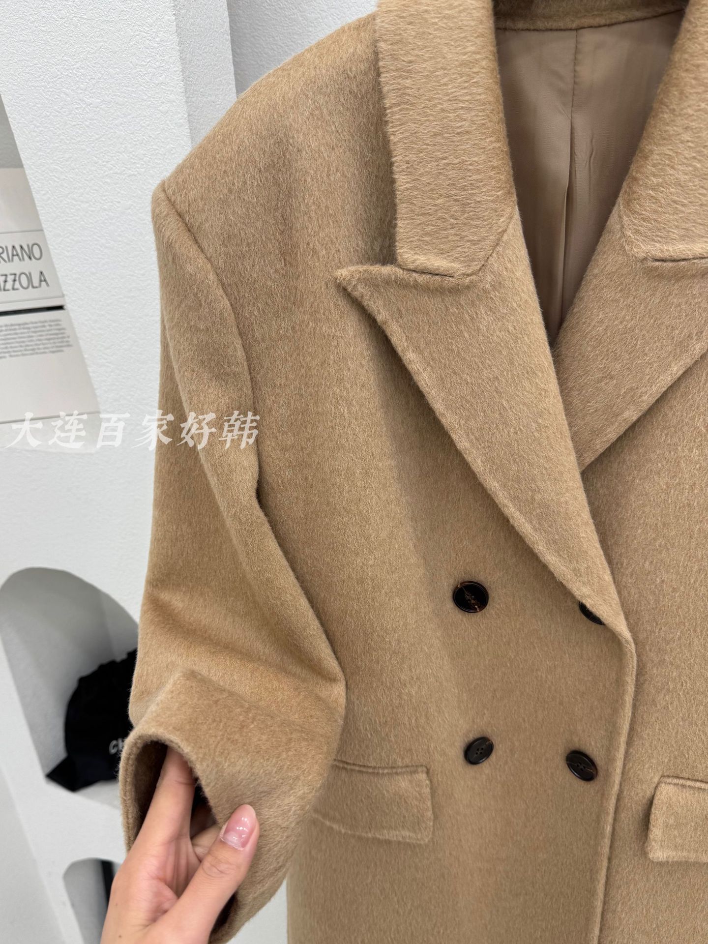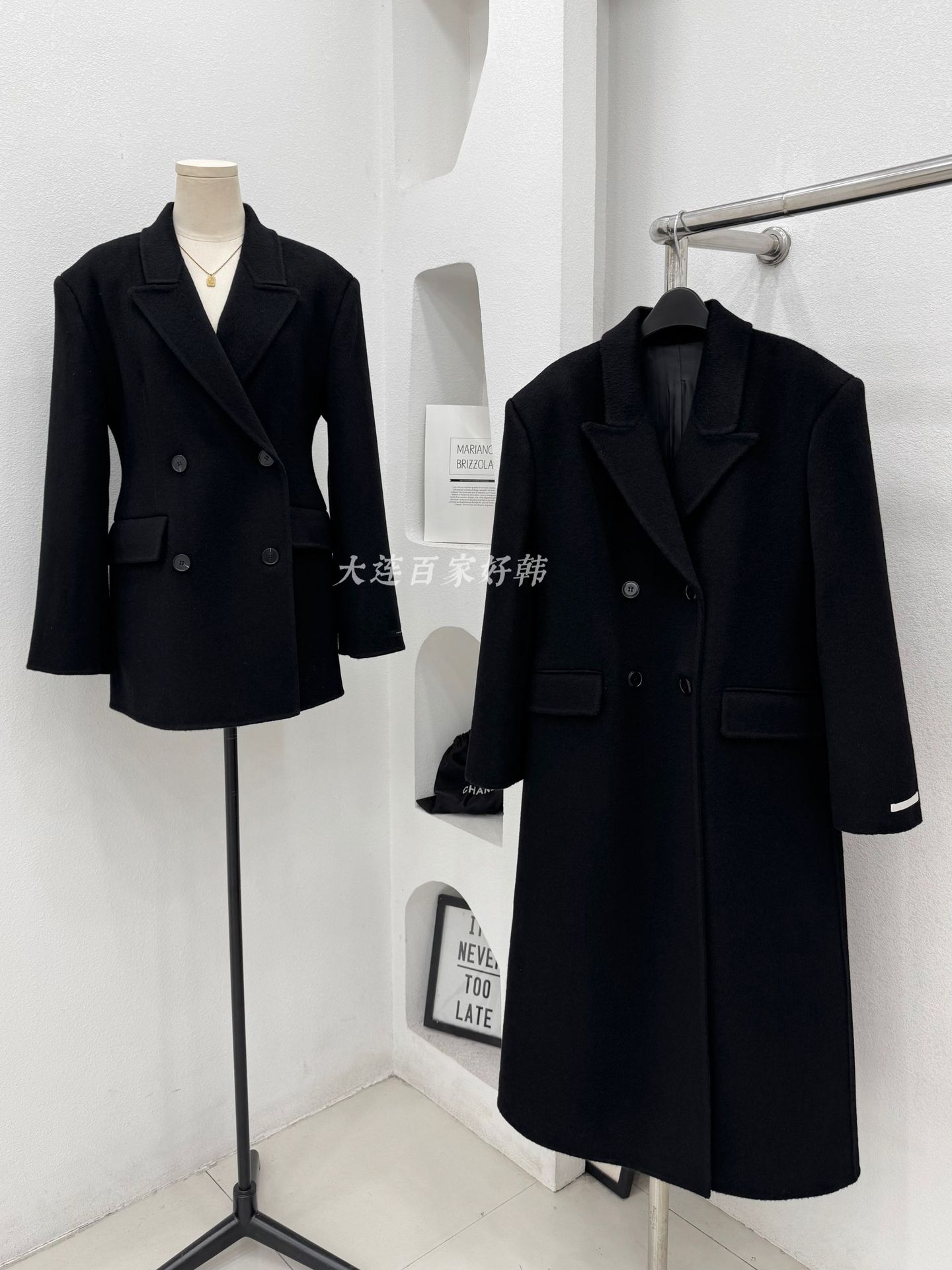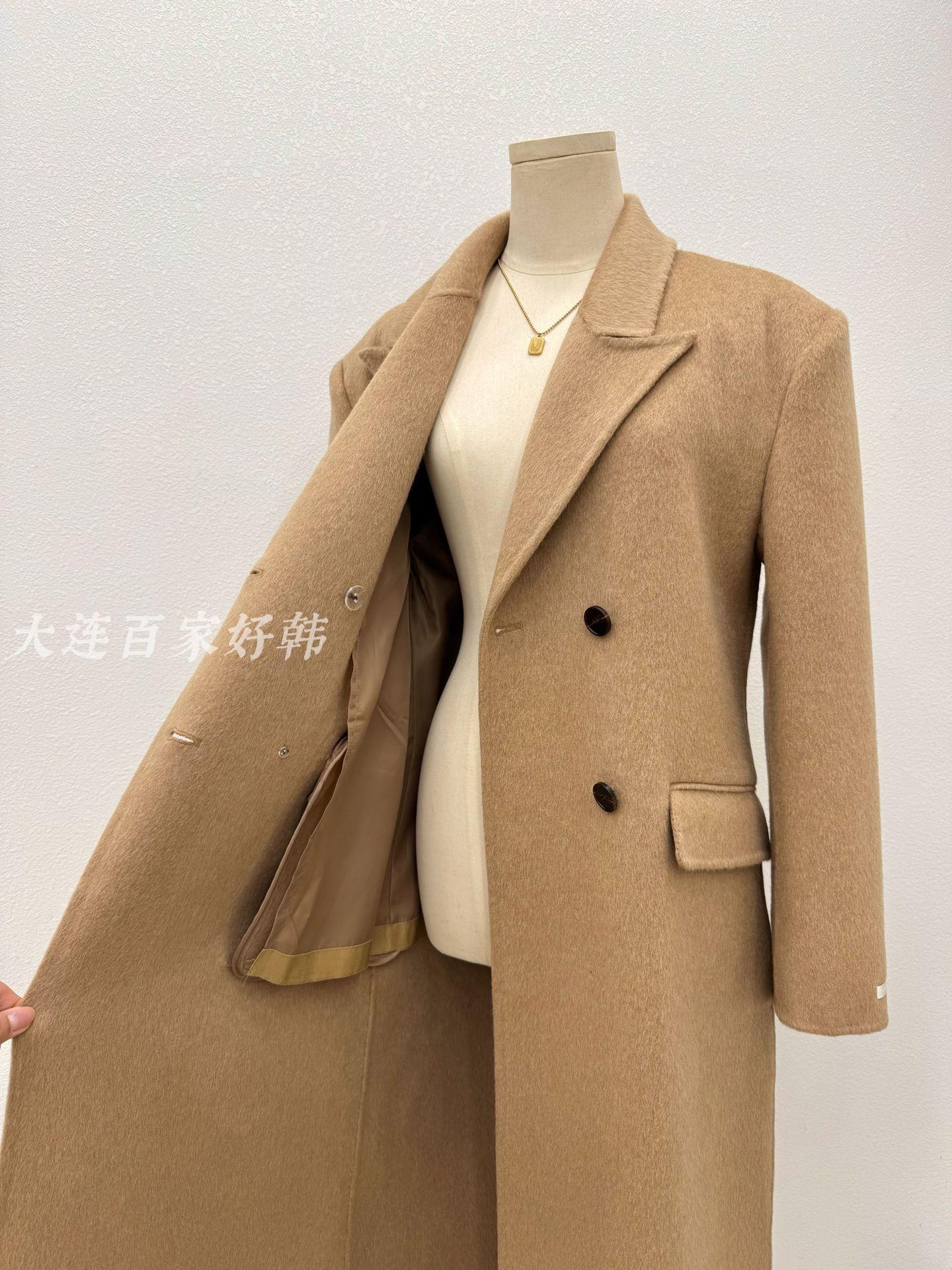 모래시계 허리 슈트 양면 울 코트 카멜 블랙 오른쪽 어깨 패딩 슈트 재킷 가을 겨울 신스타일